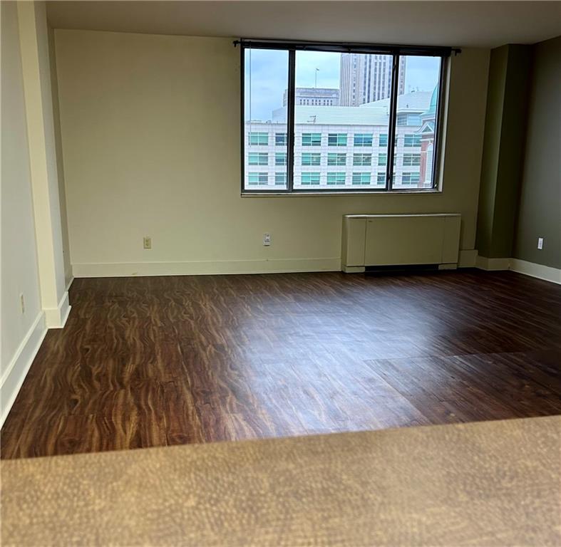 Updated studio located in the heart of downtown. This unit offers a functional layout, updated LVT flooring with super kitchen featuring easy maintenance countertops, gas range, GE dishwasher & fridge. The open living area overlooks beautiful city and park view. This unit is deal for an investor or future owner occupant. Unit also features stackable washer/dryer which stay. Special Assessments paid in full! 50% Tax Abatement through 2028! The Metropolitan offers low HOA dues and a range of amenities including a heated indoor rooftop pool with city views, sauna, fitness center, business center, concierge service, grill area, and modern common spaces. The new parking garage will be completed in Jan/Feb '26. The entire pool, sauna and community space on top floor will be completely renovated beginning early 2026. Conveniently located near River Market, Power & Light, and Crossroads, with easy highway access, this unit provides comfortable downtown living with great value. This prime location offers a unique investment opportunity with upcoming development planned in this section of KC.