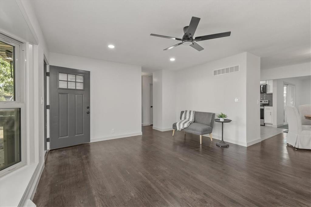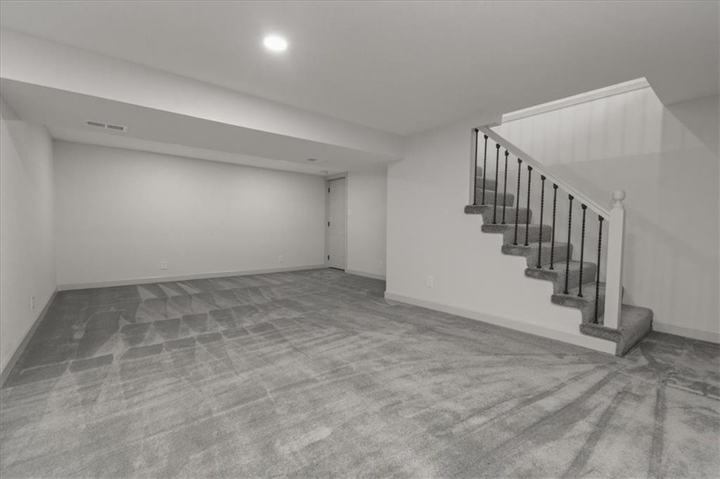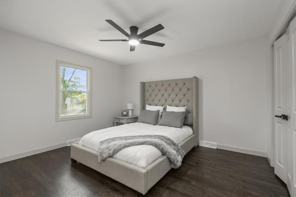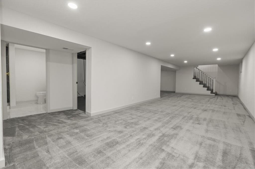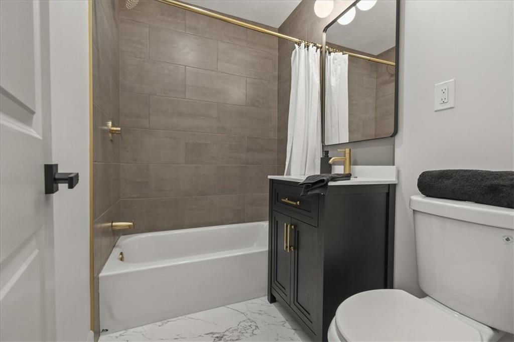 Discover a truly turn-key opportunity in this masterfully renovated ranch-style home, transformed from top to bottom with an expert designer's touch. This is your chance to own a property where all the hard work has been done, allowing you to simply move in and immediately enjoy a lifestyle of modern luxury and comfort. The open-concept living space is bathed in natural light, featuring rich, dark wood flooring that flows seamlessly throughout. At the heart of the home, the gourmet kitchen is a showpiece, boasting new white cabinetry, sleek quartz countertops, and a sophisticated gray subway tile backsplash, all perfectly accented by a suite of stainless steel appliances. Retreat to the serene bedrooms, which offer a peaceful escape with soft new carpeting and a contemporary color palette. The bathroom has been completely redesigned into a spa-like oasis, showcasing exquisite tile work, modern fixtures, and a stylish new vanity. The excitement continues downstairs in the spacious, fully finished basement, a highly versatile area ready to be anything you need—a media room, a home gym, or an additional family lounge. Outside, the home impresses with stunning curb appeal, thanks to fresh exterior paint and tasteful new landscaping. Enjoy the charm of a front deck and the utility of a generous backyard, complete with a newly painted storage shed. This property represents the perfect blend of quality craftsmanship and contemporary design.
