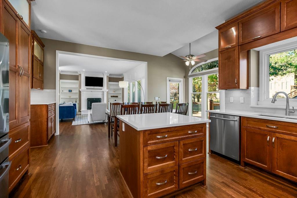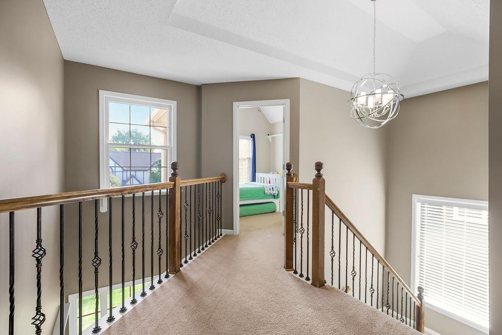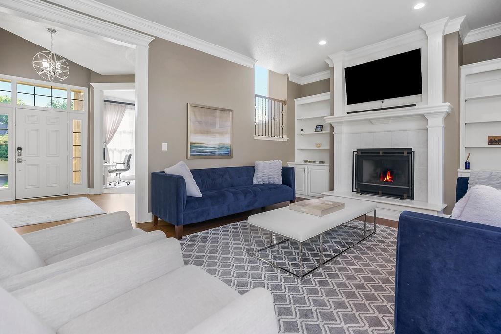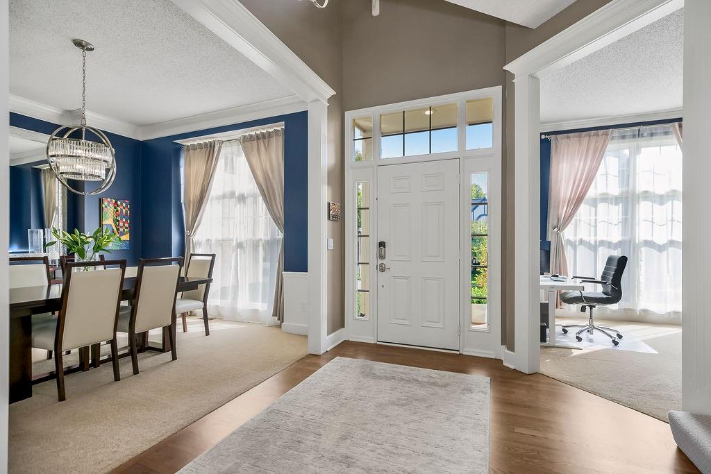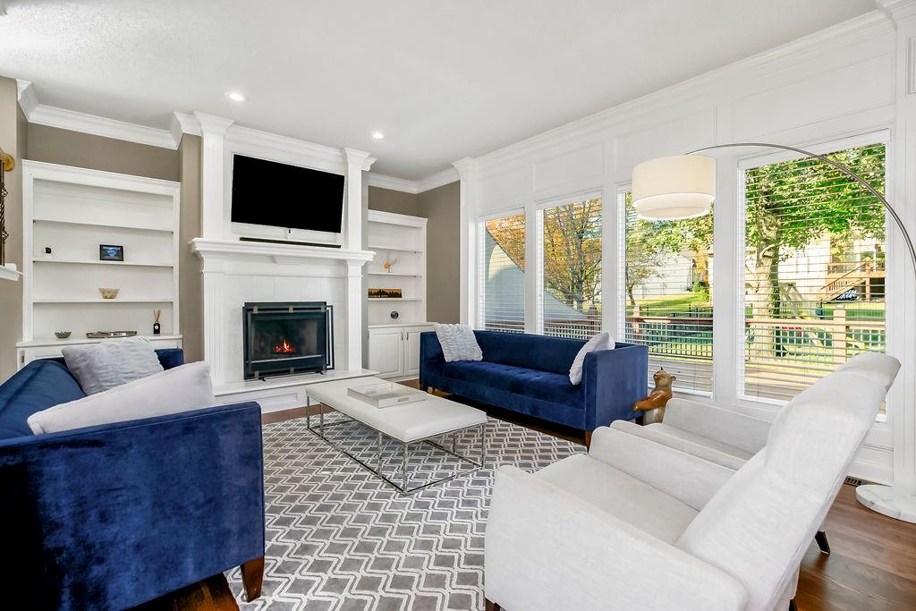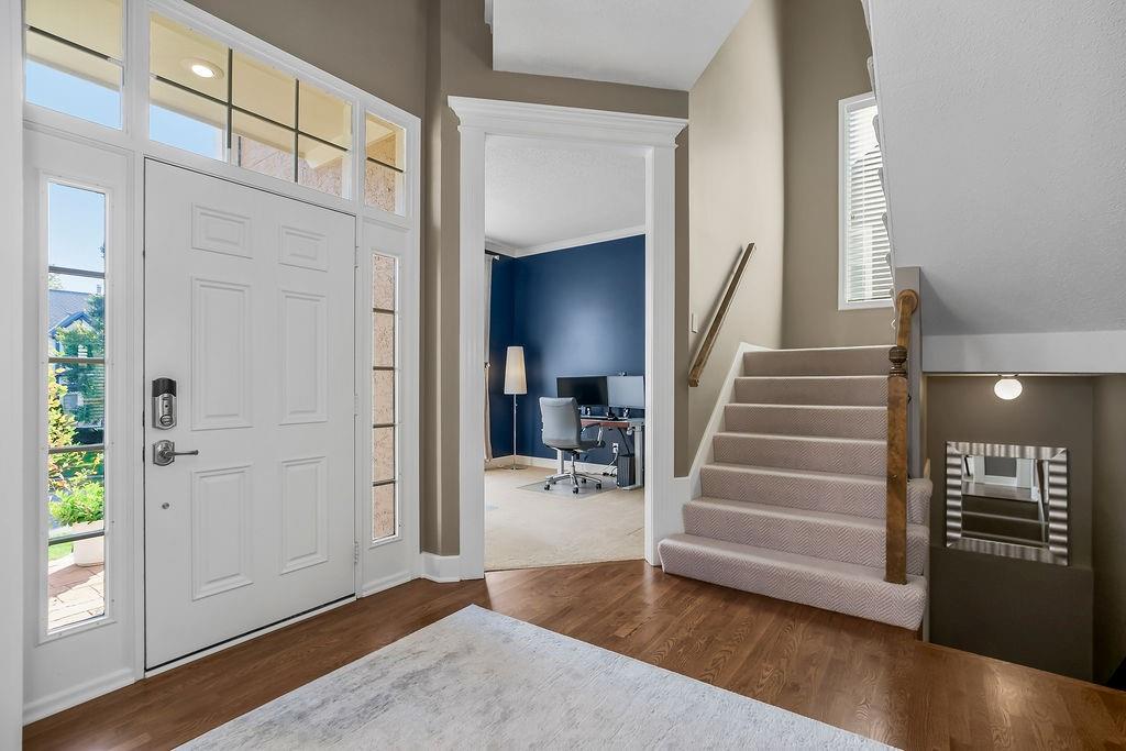 This spectacular 2 story, 4 bedroom 3 bath home is located in one of Blue Valley’s most sought-after neighborhoods. The main level welcomes you with an open floor plan and a versatile office or flex room just off the entry. Sunlight fills the spacious living area making this home perfect for entertaining or everyday living. The living room features a cozy fireplace a wall of windows and freshly finished hardwood floors. The chef’s kitchen is a true delight offering an abundance of custom cabinetry, quartz countertops, a gas range, stainless appliances and a functional layout that opens to the living area and beautiful backyard views. Upstairs you’ll find 4 generously sized bedrooms including a spacious primary suite with a sitting area. The luxurious in suite bath features a jetted tub, walk-in shower, double vanity and a large walk-in closet. The finished lower level offers the perfect space for a game room, home theater, or additional entertainment area plus plenty of storage. Prime location and just a short walk to award winning Blue Valley schools. Close to highways, shopping, restaurants and local sports fields. This move in home truly has it all.