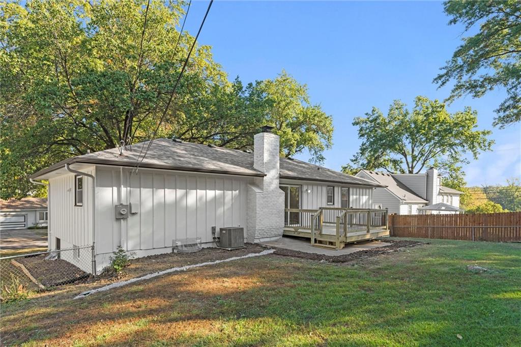 Completely renovated inside and out with everything fresh and new! This beautiful, open ranch is furnished with high-end finishes, a neutral color palette, and so much space to enjoy inside and out. Gorgeous curb appeal invites you in with freshly painted brick, wood shutters and a brand new front landing. Inside, refinished hardwoods run throughout the main level including all of the bedrooms. The open but cozy living room will have you wanting to curl up by the brick fireplace and enjoy views of the new back deck and fenced yard through the sliding glass doors. The kitchen is complete with fresh white cabinets, granite countertops and new appliances. Formal dining offers plenty of space for hosting gatherings, or expanding your living space. Three nicely sized bedrooms including a primary suite with a private full bath complete the main level, as well as a large guest bath that is all brand new. Downstairs, the full finished basement has a second large living space with a beautiful wet bar, a well-appointed laundry room, a fourth non-conforming bedroom with egress (just add a closet!), and a third brand new full bath. Located in lovely Red Bridge with easy access to highways, parks, hospitals, schools, popular kids activities and more. Welcome home!