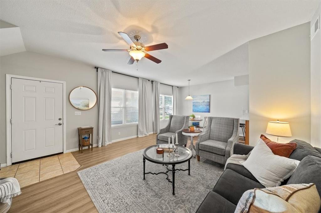 Welcome to this beautifully updated condominium offering the perfect blend of comfort, style, and convenience. Step into the heart of the home—a stunning kitchen featuring sleek quartz countertops, generous counter space, and eye-catching zellige tile backsplash, open floor plan ideal for both everyday living and entertaining. Luxury vinyl plank flooring flows throughout the living areas, adding durability and contemporary charm. Enjoy the inviting front patio—perfect for your morning coffee or evening unwind. Inside, you’ll find two generously sized bedrooms and two spacious full bathrooms, including a primary suite with a walk-in closet for ample storage. This well-maintained community offers resort-style amenities including a clubhouse, fitness center, and sparkling pool. All of this in a fantastic location close to shopping, dining, and major commuter routes. Don’t miss this opportunity to own a move-in ready home with great amenities and in a wonderful location!!