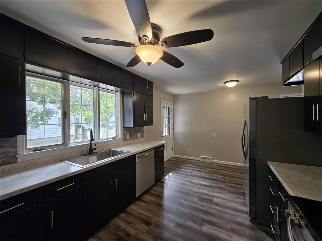 Sprawling, newly remodeled ranch on a spacious, tree-lined corner lot! This charming home features a fully appliance kitchen with pantry, two cozy fireplaces, and a generous covered patio—perfect for outdoor entertaining. The layout offers comfort and functionality with a full basement and attached 2-car garage. Ideally located near schools and just minutes from the historic Clinton Square, blending convenience with classic character.
