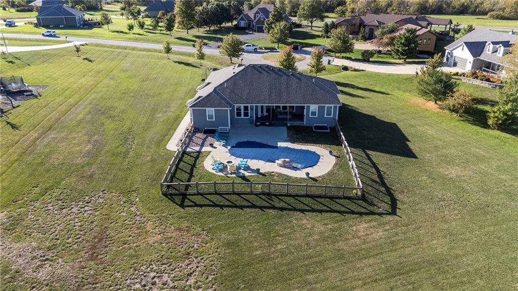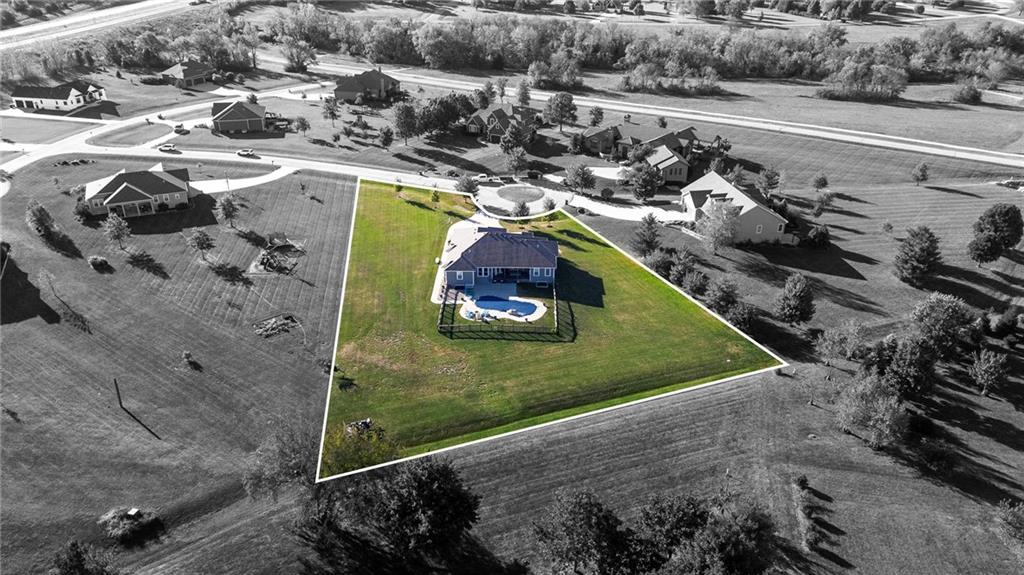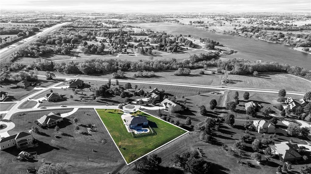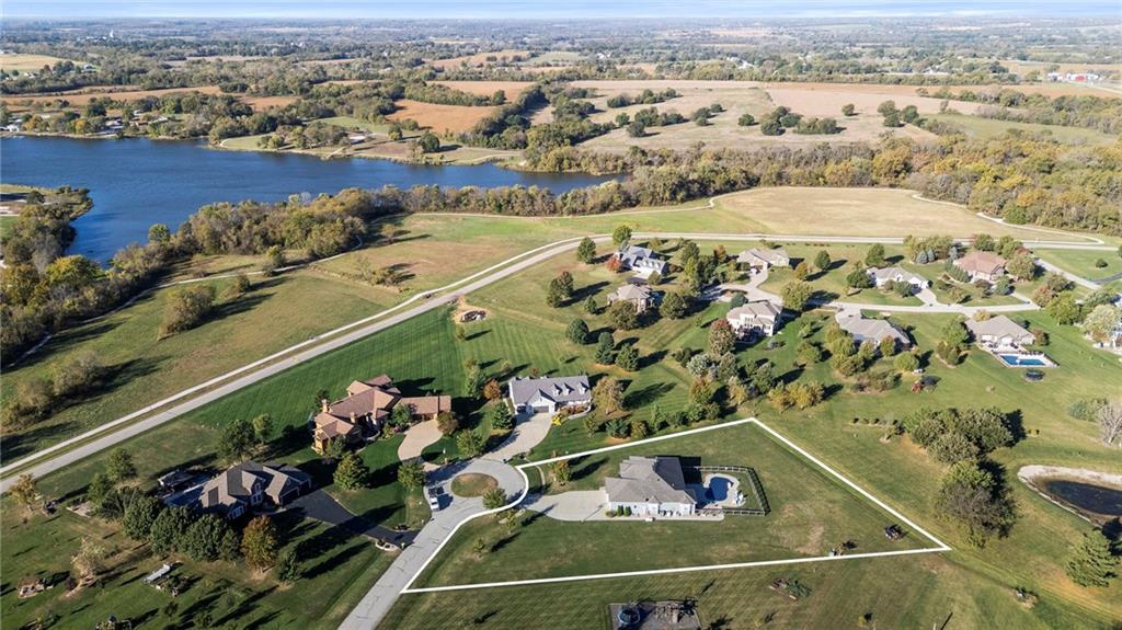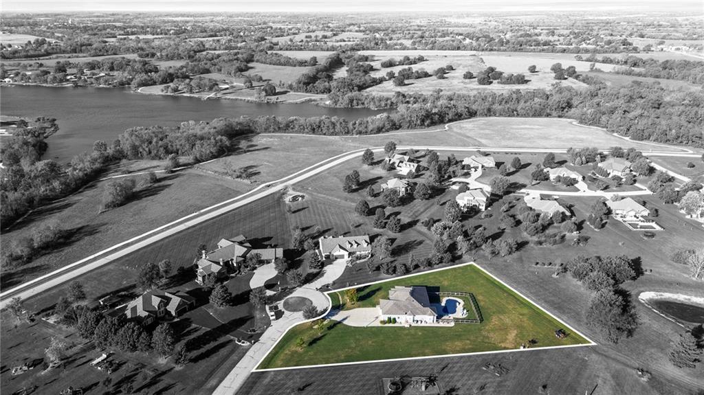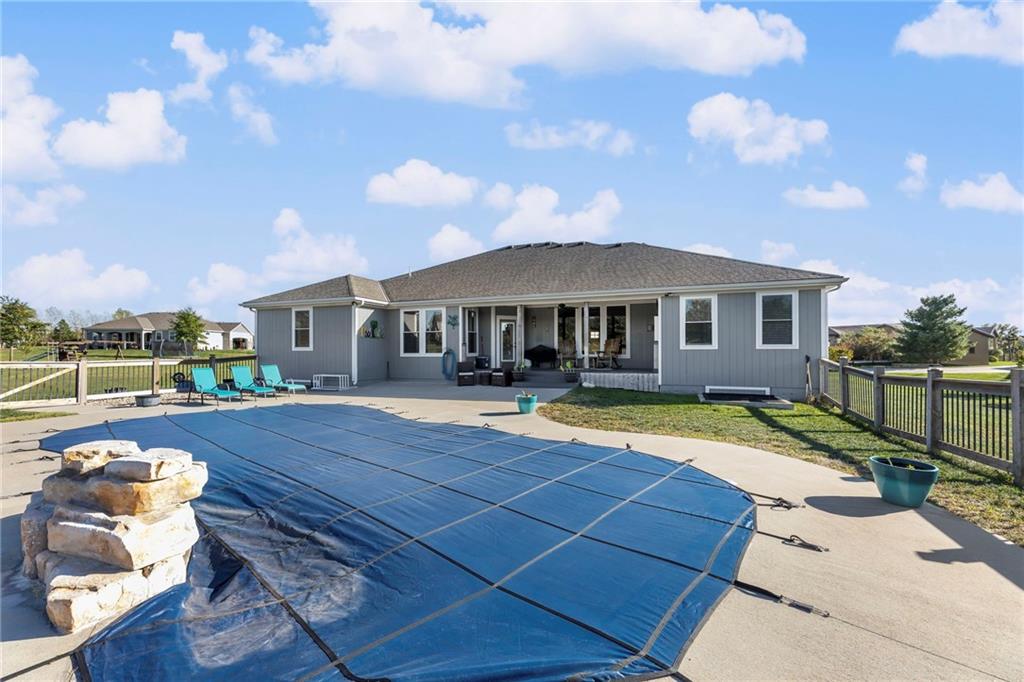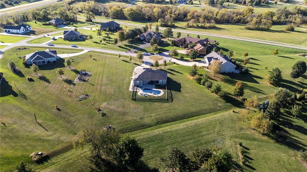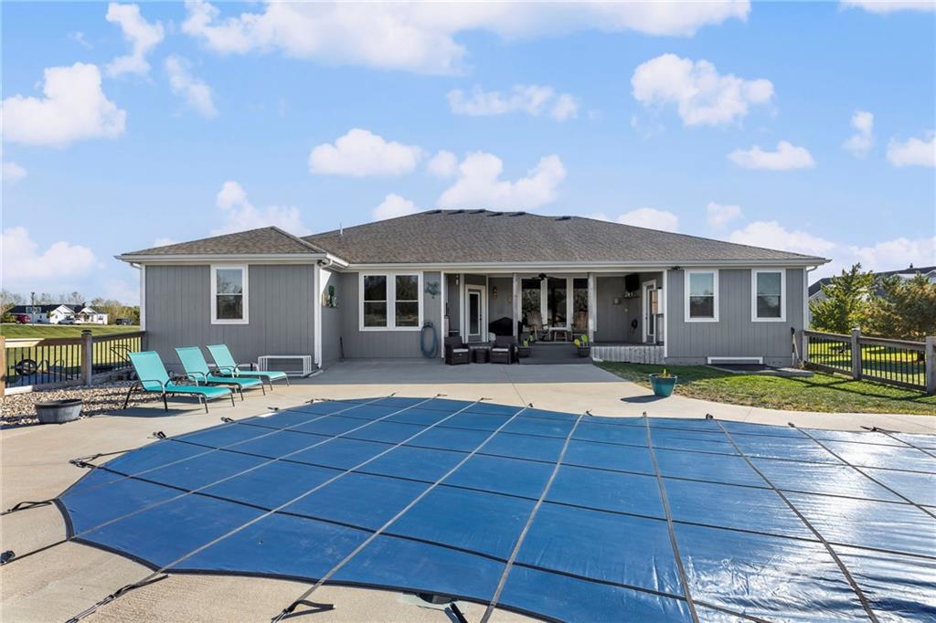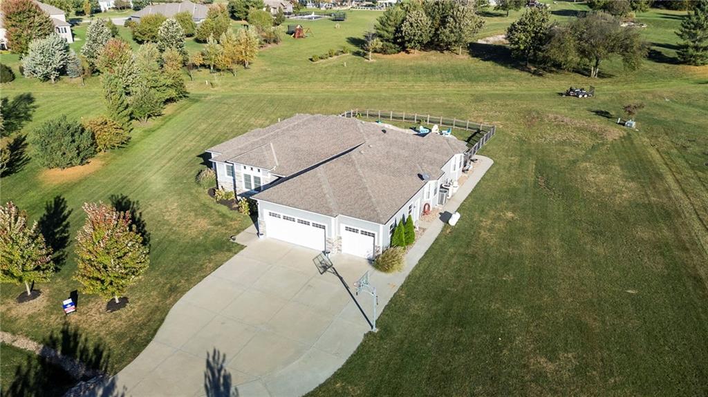 You'll be thoroughly impressed by this stunning custom-built ranch home in the sought-after Bur Oak Estates, perfectly situated on 1.21 acres with picturesque views overlooking Lake Miola. This 4-5 bedroom, 3.5-bath residence is a flawless fusion of high-end upgrades and modern elegance, offering a spacious, open floor plan that ensures an ideal flow for both daily life and hosting. The heart of the home is the showstopper gourmet kitchen, featuring custom cabinetry, a generous island, granite countertops, and a massive walk-in pantry, all flowing into the inviting great room. The great room is a masterpiece of design, showcasing expansive windows, vaulted beamed ceilings, and a beautiful rock gas fireplace, setting the stage for ultimate relaxation. Retreat to the luxurious primary en-suite, which boasts a tray ceiling, a huge tiled shower, an elegant freestanding tub, double vanities, a walk-in closet, and private access to the deck for a seamless indoor/outdoor escape. The main level also provides two additional spacious bedrooms, a full bathroom, and a dedicated office. Downstairs, the finished lower level is an entertainer's paradise with a large family room anchored by an impressive Wet Bar with granite countertops, plus a comfortable fourth bedroom and a fifth nonconforming one, while the converted fourth-car garage now serves as a dedicated workout gym. Outside, the estate is an entertainer's dream-the fenced 1.21-acre lot features a fiberglass saltwater heated pool surrounded by a huge patio with a firepit, a composite deck, and lush landscaping, offering the complete luxury package. Also enjoy all the amenities Lake Miola offers, including boating, swimming, trails, and camping.