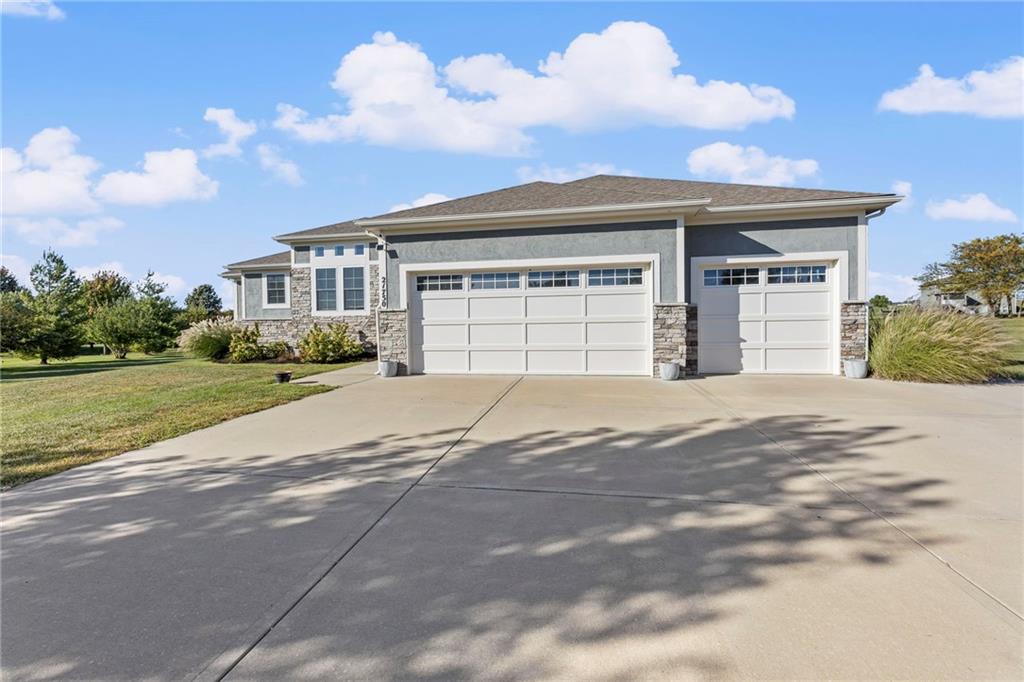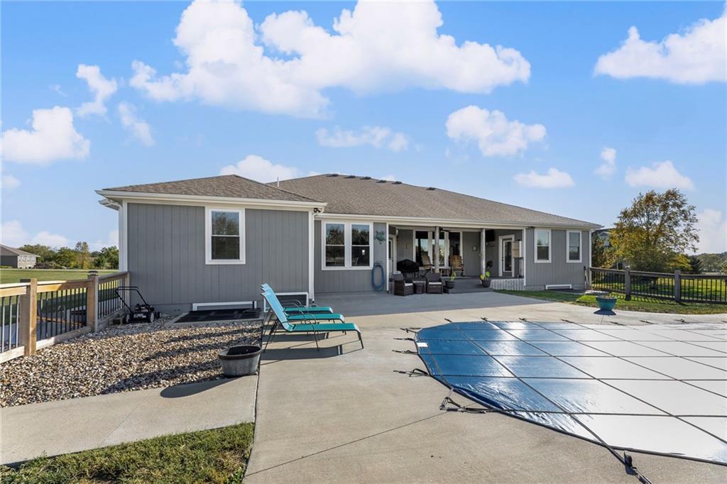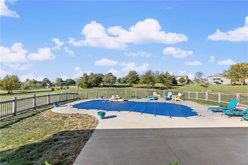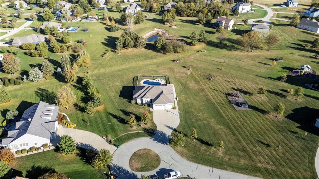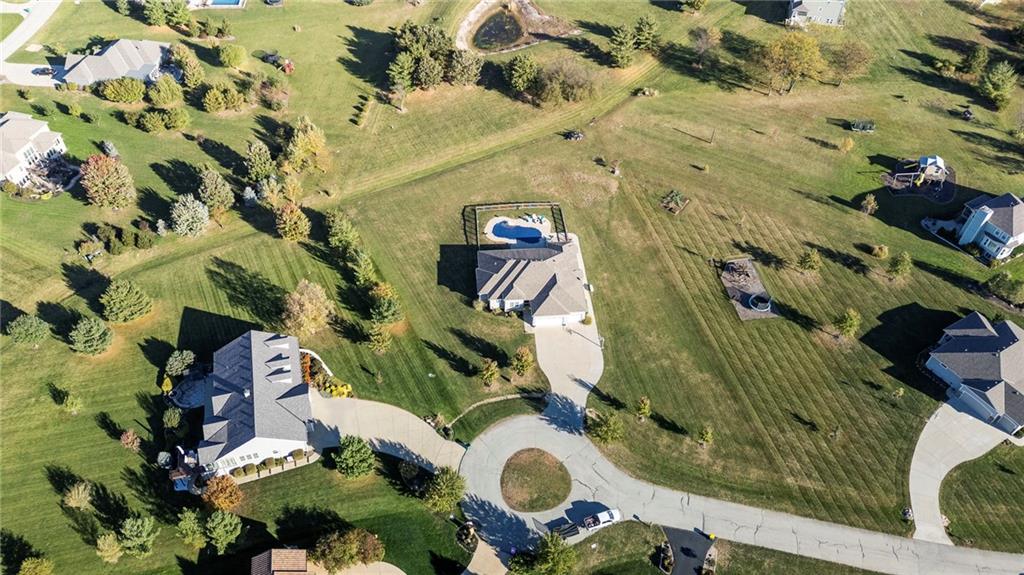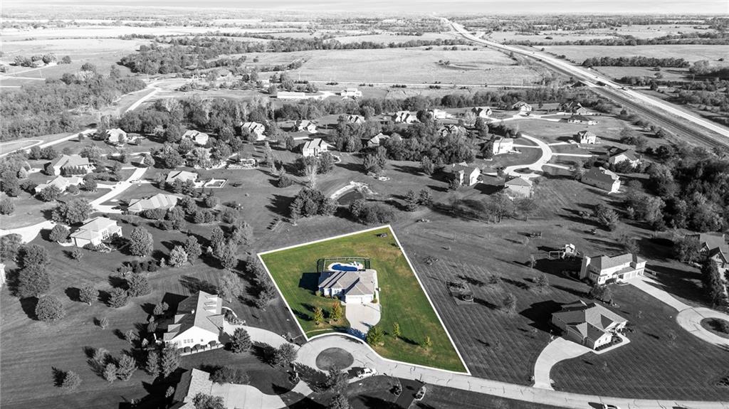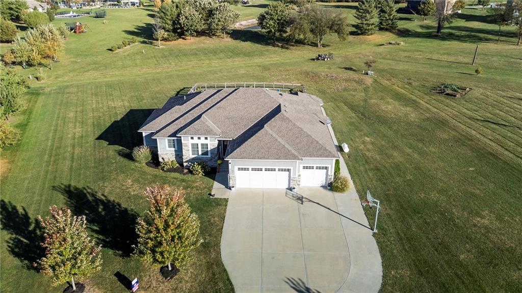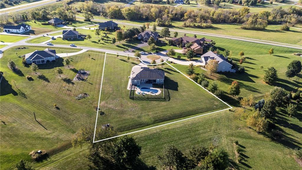 You'll be thoroughly impressed by this stunning custom-built ranch home in the sought-after Bur Oak Estates, perfectly situated on 1.21 acres with picturesque views overlooking Lake Miola. This 4-5 bedroom, 3.5-bath residence is a flawless fusion of high-end upgrades and modern elegance, offering a spacious, open floor plan that ensures an ideal flow for both daily life and hosting. The heart of the home is the showstopper gourmet kitchen, featuring custom cabinetry, a generous island, granite countertops, and a massive walk-in pantry, all flowing into the inviting great room. The great room is a masterpiece of design, showcasing expansive windows, vaulted beamed ceilings, and a beautiful rock gas fireplace, setting the stage for ultimate relaxation. Retreat to the luxurious primary en-suite, which boasts a tray ceiling, a huge tiled shower, an elegant freestanding tub, double vanities, a walk-in closet, and private access to the deck for a seamless indoor/outdoor escape. The main level also provides two additional spacious bedrooms, a full bathroom, and a dedicated office. Downstairs, the finished lower level is an entertainer's paradise with a large family room anchored by an impressive Wet Bar with granite countertops, plus a comfortable fourth bedroom and a fifth nonconforming one, while the converted fourth-car garage now serves as a dedicated workout gym. Outside, the estate is an entertainer's dream-the fenced 1.21-acre lot features a fiberglass saltwater heated pool surrounded by a huge patio with a firepit, a composite deck, and lush landscaping, offering the complete luxury package. Also enjoy all the amenities Lake Miola offers, including boating, swimming, trails, and camping.