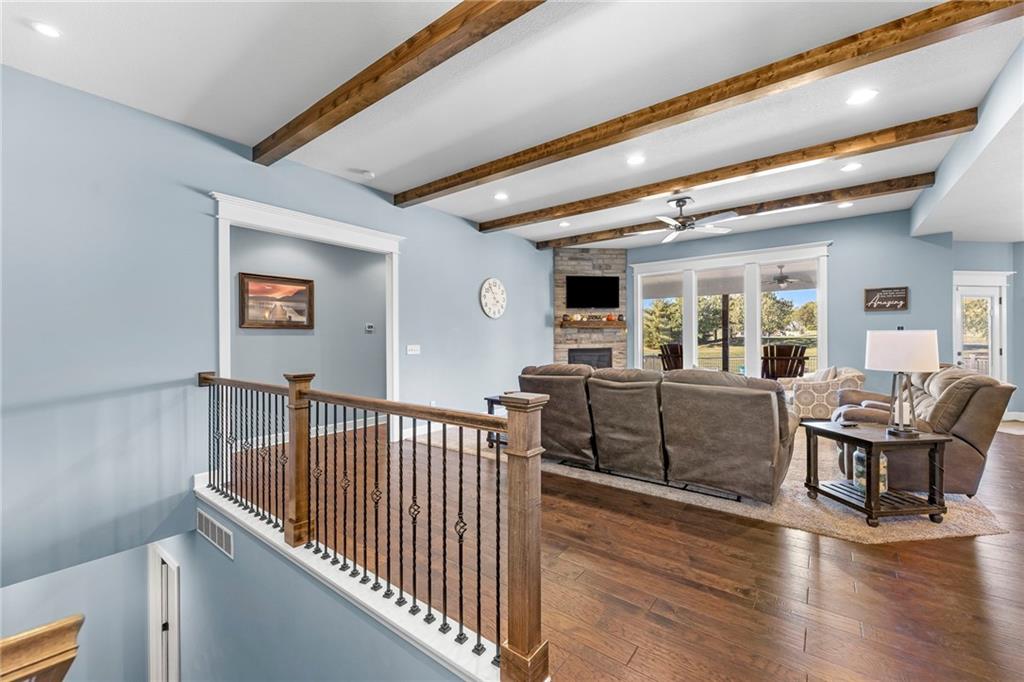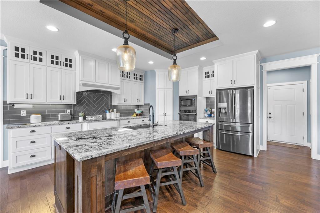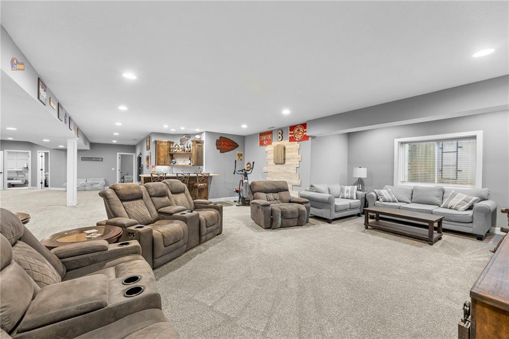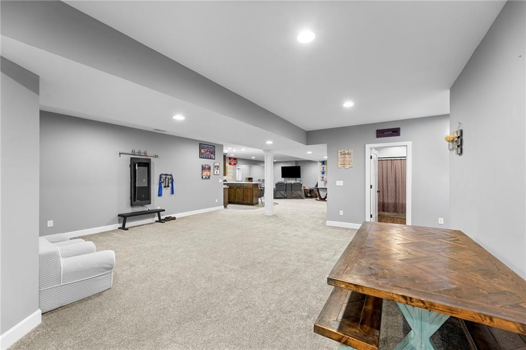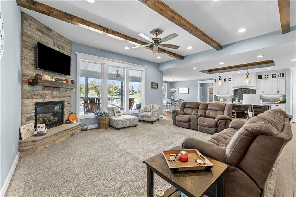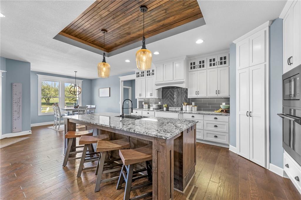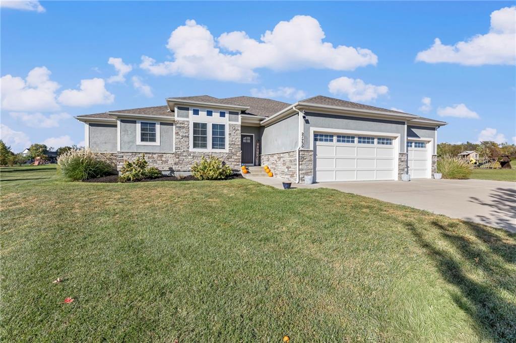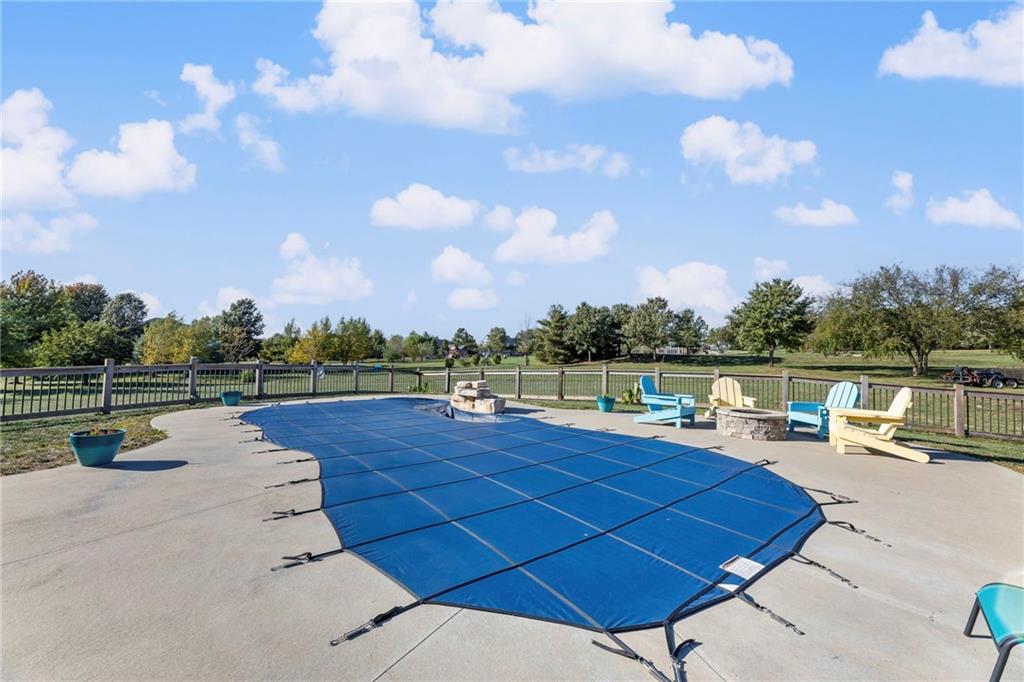 You'll be thoroughly impressed by this stunning custom-built ranch home in the sought-after Bur Oak Estates, perfectly situated on 1.21 acres with picturesque views overlooking Lake Miola. This 4-5 bedroom, 3.5-bath residence is a flawless fusion of high-end upgrades and modern elegance, offering a spacious, open floor plan that ensures an ideal flow for both daily life and hosting. The heart of the home is the showstopper gourmet kitchen, featuring custom cabinetry, a generous island, granite countertops, and a massive walk-in pantry, all flowing into the inviting great room. The great room is a masterpiece of design, showcasing expansive windows, vaulted beamed ceilings, and a beautiful rock gas fireplace, setting the stage for ultimate relaxation. Retreat to the luxurious primary en-suite, which boasts a tray ceiling, a huge tiled shower, an elegant freestanding tub, double vanities, a walk-in closet, and private access to the deck for a seamless indoor/outdoor escape. The main level also provides two additional spacious bedrooms, a full bathroom, and a dedicated office. Downstairs, the finished lower level is an entertainer's paradise with a large family room anchored by an impressive Wet Bar with granite countertops, plus a comfortable fourth bedroom and a fifth nonconforming one, while the converted fourth-car garage now serves as a dedicated workout gym. Outside, the estate is an entertainer's dream-the fenced 1.21-acre lot features a fiberglass saltwater heated pool surrounded by a huge patio with a firepit, a composite deck, and lush landscaping, offering the complete luxury package. Also enjoy all the amenities Lake Miola offers, including boating, swimming, trails, and camping.
