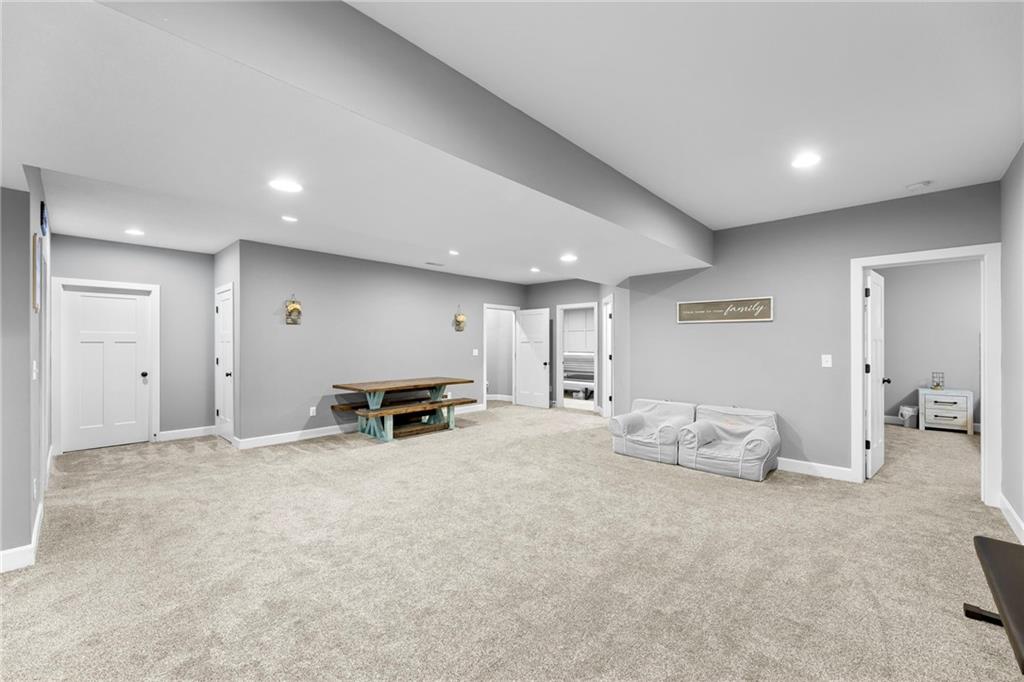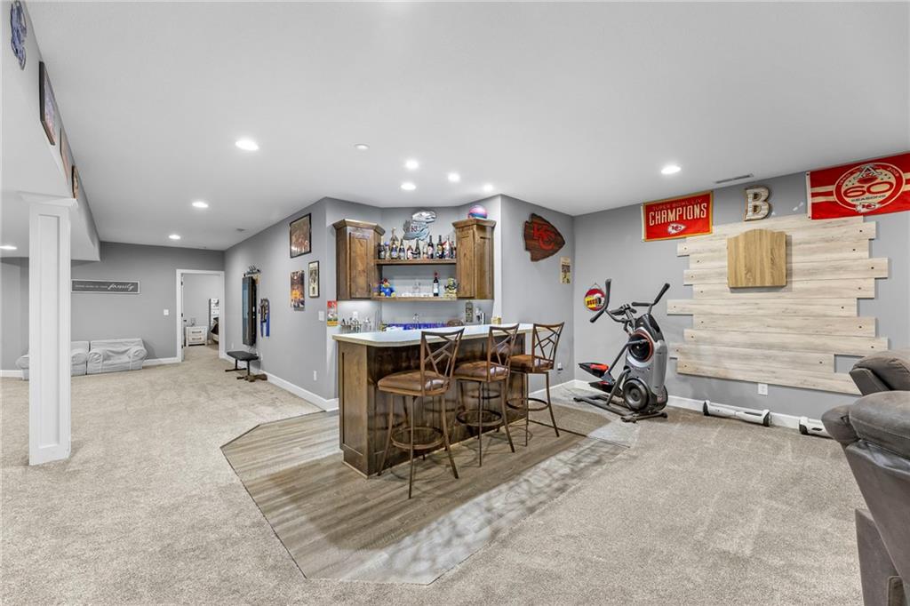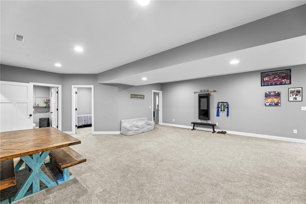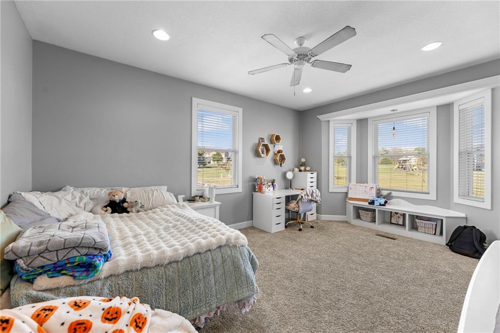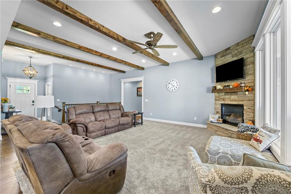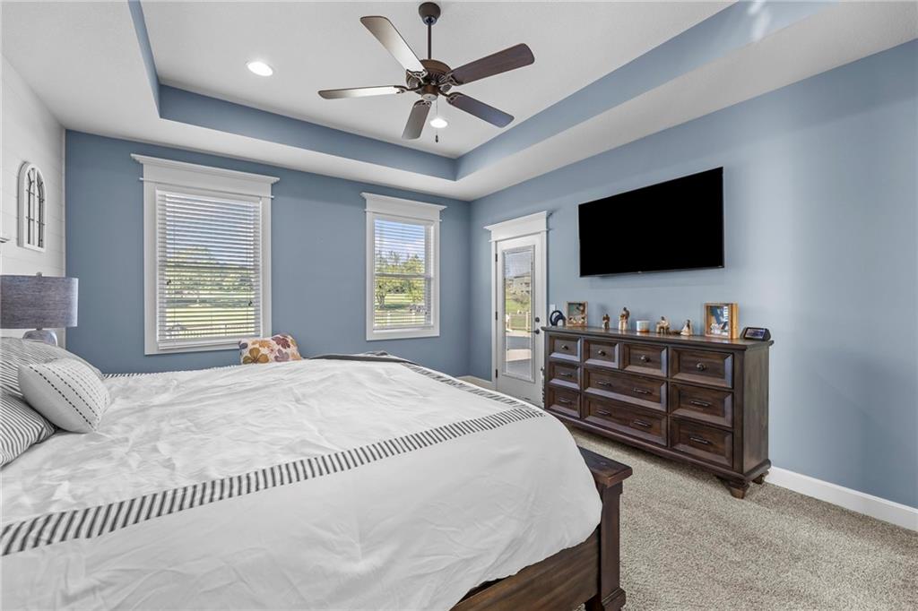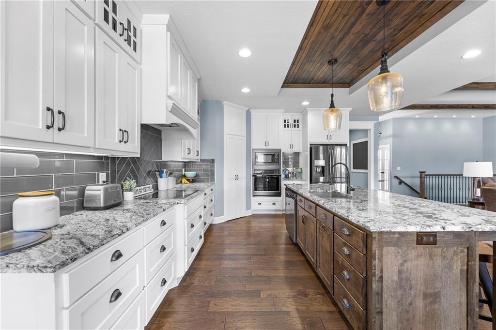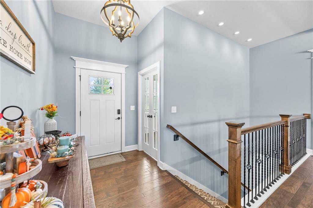 You'll be thoroughly impressed by this stunning custom-built ranch home in the sought-after Bur Oak Estates, perfectly situated on 1.21 acres with picturesque views overlooking Lake Miola. This 4-5 bedroom, 3.5-bath residence is a flawless fusion of high-end upgrades and modern elegance, offering a spacious, open floor plan that ensures an ideal flow for both daily life and hosting. The heart of the home is the showstopper gourmet kitchen, featuring custom cabinetry, a generous island, granite countertops, and a massive walk-in pantry, all flowing into the inviting great room. The great room is a masterpiece of design, showcasing expansive windows, vaulted beamed ceilings, and a beautiful rock gas fireplace, setting the stage for ultimate relaxation. Retreat to the luxurious primary en-suite, which boasts a tray ceiling, a huge tiled shower, an elegant freestanding tub, double vanities, a walk-in closet, and private access to the deck for a seamless indoor/outdoor escape. The main level also provides two additional spacious bedrooms, a full bathroom, and a dedicated office. Downstairs, the finished lower level is an entertainer's paradise with a large family room anchored by an impressive Wet Bar with granite countertops, plus a comfortable fourth bedroom and a fifth nonconforming one, while the converted fourth-car garage now serves as a dedicated workout gym. Outside, the estate is an entertainer's dream-the fenced 1.21-acre lot features a fiberglass saltwater heated pool surrounded by a huge patio with a firepit, a composite deck, and lush landscaping, offering the complete luxury package. Also enjoy all the amenities Lake Miola offers, including boating, swimming, trails, and camping.