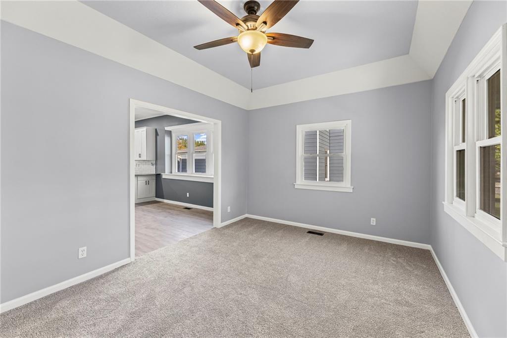Experience the charm and modern convenience of this beautifully remodeled three-bedroom home, starting with the inviting large front porch finished with durable composite decking. Inside, the vaulted ceiling elevates the family room, which flows openly into the dining room highlighted by triple windows and a decorative shelf. The fabulous kitchen is a chef's delight, showcasing new custom-painted cabinets, granite countertops, and a fresh new backsplash. A convenient pocket door leads to the large laundry/mud room, complete with a stylish Farmhouse Hall Tree. Luxury vinyl plank flooring unifies the main living areas, complementing the extensive recent upgrades, including a new Class 3 High Impact roof, new windows, a remodeled bathroom, updated interior and exterior paint, a new hot water heater, fresh knockdown ceiling texture, and new lighting throughout. The main level offers two comfortable bedrooms plus a dedicated office, while the third bedroom with its own mini-split unit is situated upstairs, offering flexible use as a rec room. Outside, you'll find a carport and a utility shed in the nice yard. Expect to be impressed by this completely refreshed home!