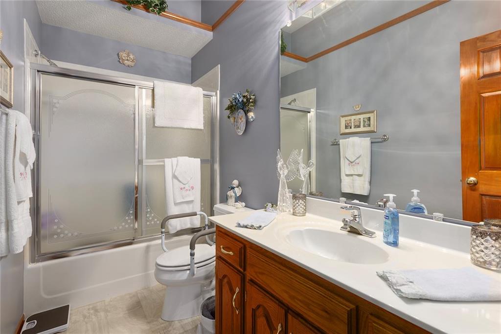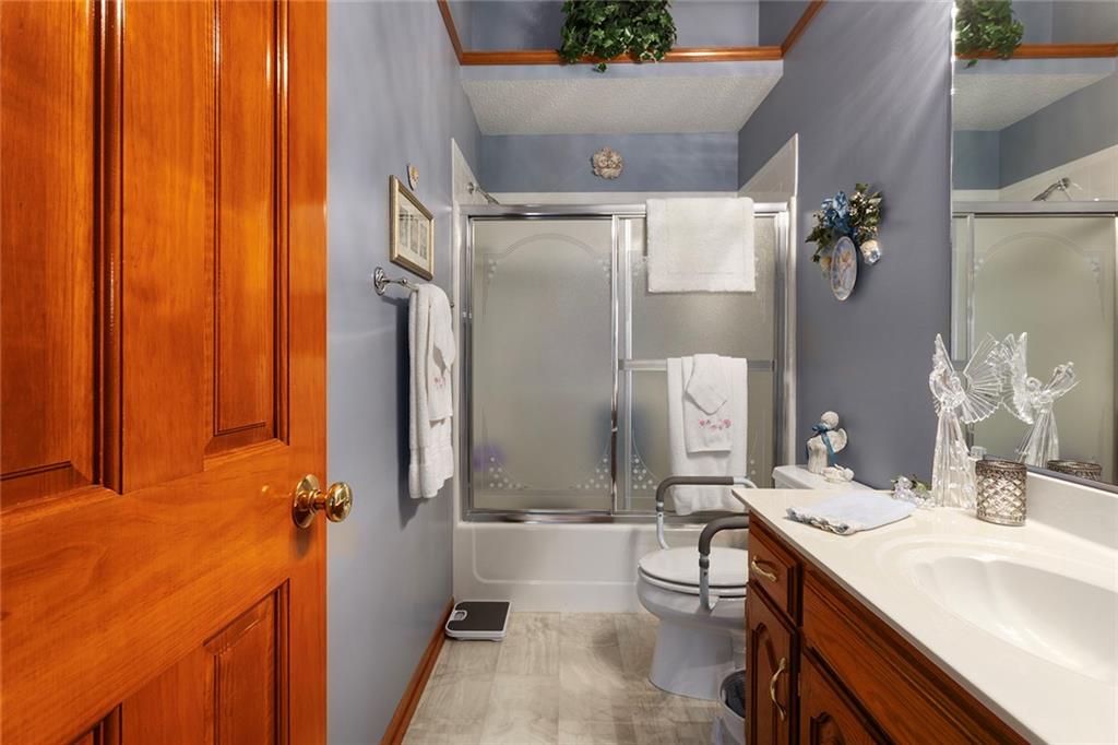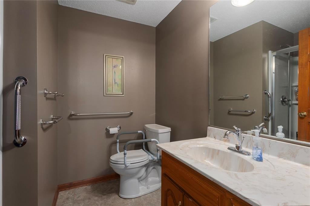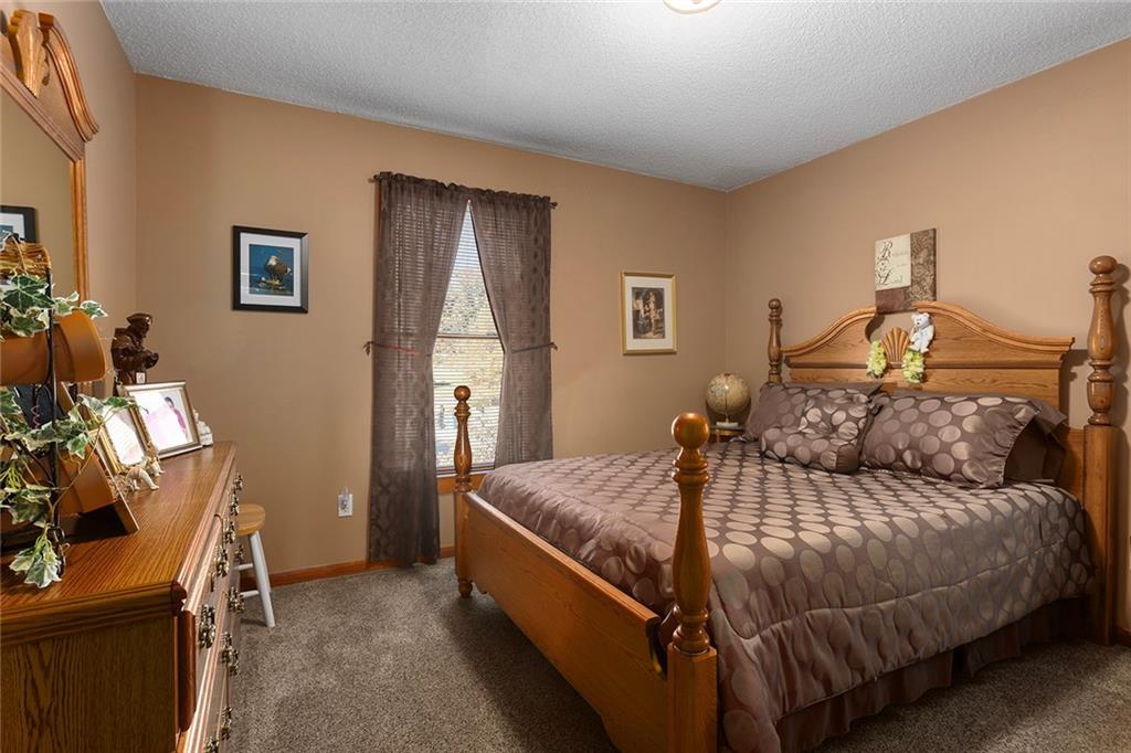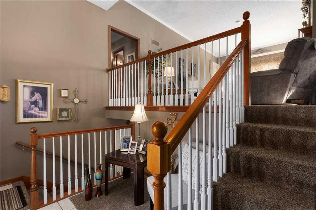 This is NOT your typical split entry and WOW does pride of ownership show throughout the VERY well cared for one owner ALL BRICK custom built home perfectly situated on a nice cul-de-sac fenced lot in a wonderful subdivision close to highway access and so many conveniences. This home offers the perfect blend of comfort, style and functionality! Step inside to a large tiled entryway then up to the spacious living room and updated kitchen that offers TONS of cabinets and counter space, a breakfast bar, beautiful granite countertops, a gorgeous stone/tiled backsplash gleaming hardwood floors and a huge dining/hearth area with a see through fireplace from the dining into the living room. The perfect space for everyday living and entertaining. The very generous sized master suite has a nice vaulted ceiling, ceiling fan and a large walk-in closet, jetted tub and separate shower in the bath. Bedrooms 2 and 4 also have walk-in closets. Newer carpet throughout. Nicely finished handicap accessible, walk-out basement with a 4th bedroom, large full bath and an additional family/entertainment room. Roof is approximately 5 years new and HWH 4 years. A must see!