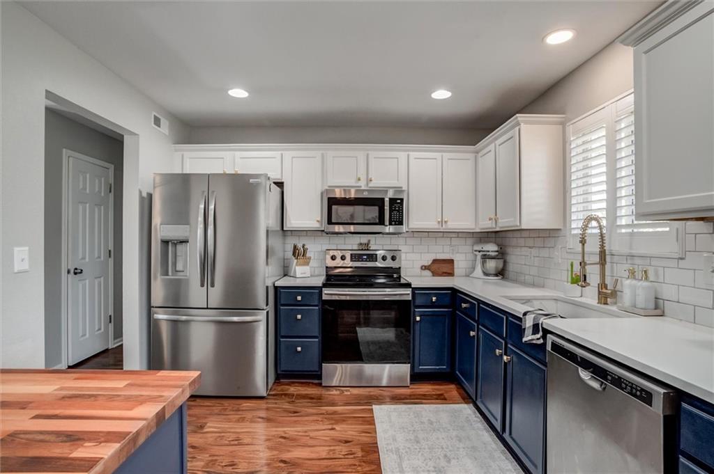 JUST LISTED IN HUNTERS GLEN - Step into style and comfort with this beautifully refreshed 3-bedroom, 2-bath home. Thoughtful, fashion-forward updates and a soothing neutral palette create a space that feels both current and inviting. The open-concept floor plan flows effortlessly from the living room to the dining area, deck, and kitchen—perfect for entertaining or everyday living. The remodeled kitchen shines with two-tone cabinetry, sleek quartz counters, and on-trend tile backsplash, while the butcher block island expands both function and charm. Each darling bedroom is freshly styled with modern touches, and the primary suite offers a peaceful retreat with a private en-suite bath. The recently finished lower level adds valuable flex space—ideal as a media room, home office, or nonconforming bedroom—with a walk-in closet for extra storage. Even the garage impresses with finished flooring and organized storage. Located near a neighborhood park, Liberty Schools, and convenient Kansas City amenities, this home blends modern updates with everyday ease. Move-in ready and blooming with style—this one won’t last long! All stainless appliances stay, Washer/Dryer negotiable.