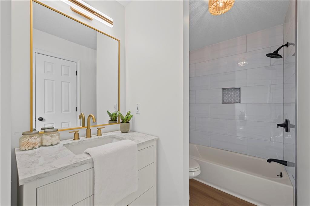 This beautifully updated 3-bedroom, 2-bath home offers 1,686 square feet of modern comfort in the desirable Line Creek Meadows subdivision. The bright and open floor plan features a fully updated kitchen with freshly painted cabinetry, quartz countertops, stainless steel appliances, and a brand-new center island designed for everyday living and entertaining. The adjoining dining area opens through sliding glass doors to a spacious deck, creating an ideal indoor–outdoor flow. The inviting family room includes a gas fireplace that serves as a warm focal point for the main living space. The primary bedroom offers a private, updated bath with a new vanity, new flooring, a beautifully tiled shower, and modern lighting. The main bathroom has also been refreshed with new flooring, updated lighting, and contemporary finishes. New flooring is found throughout the home, and the exterior has been freshly painted to enhance curb appeal. The walkout basement features new luxury vinyl plank flooring, an updated laundry area with the washer and dryer included, and direct access to a second deck that overlooks the backyard. A small storage shed is located at the rear of the property, offering additional convenience for tools and outdoor equipment. This home is located in the Platte County R-III School District and is served by Barry Elementary School, Platte Purchase Middle School, and Platte County High School. Buyers are encouraged to verify school boundaries with the district. Convenient access to major highways including 152, I-29, and MO-9 makes commuting easy, and nearby attractions include Line Creek Park and Ice Arena, Line Creek Trail, the Barry Road retail corridor, and the Zona Rosa shopping and entertainment district. With modern updates, multiple outdoor living spaces, and a prime Northland location, this move-in-ready home is ready to impress. Schedule your showing today.