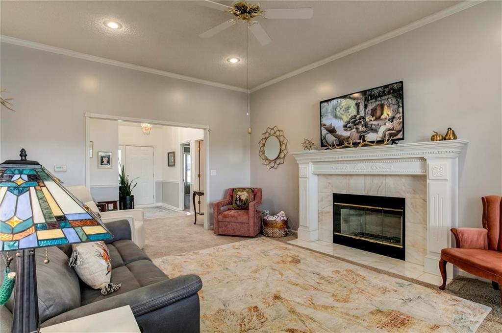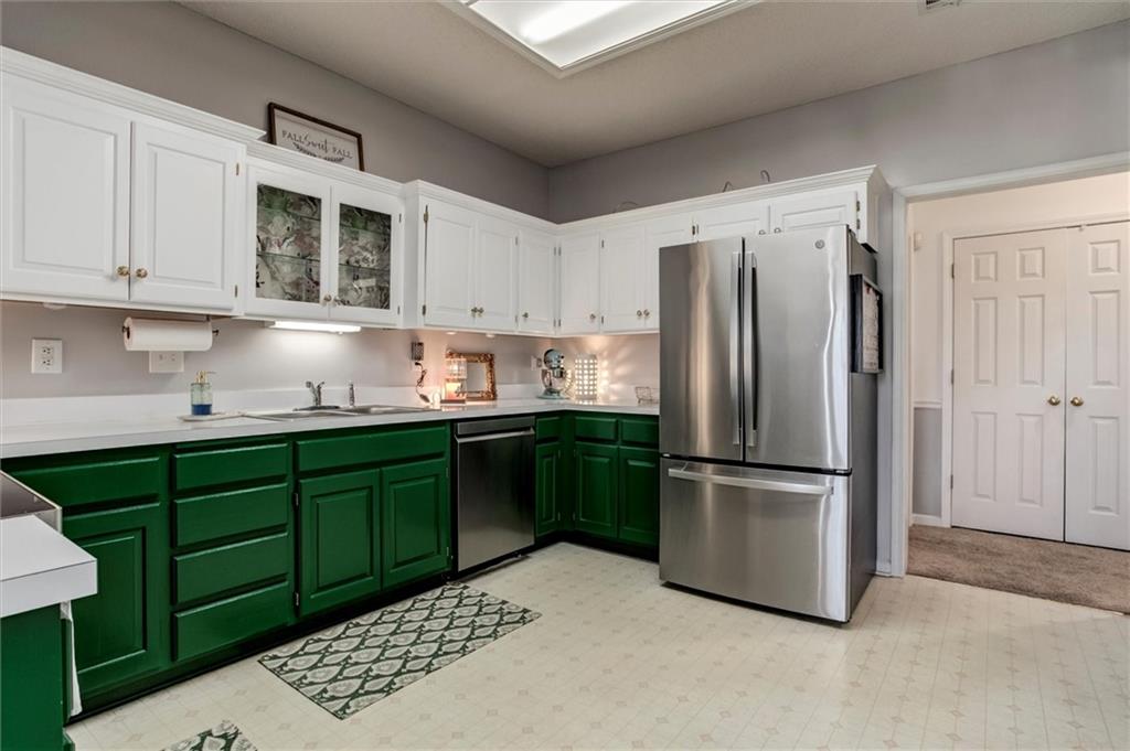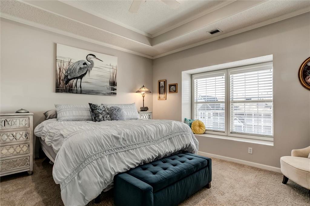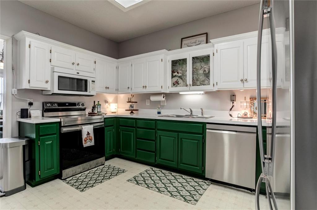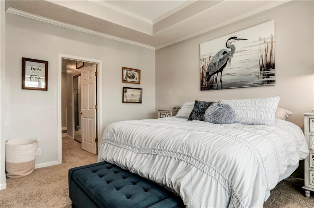 Reduced Again! Maintenance-Free Living at Its Best! Enjoy effortless living in this beautifully maintained ranch home perfectly located with an attached garage, covered deck, and a partial lake view. The open floor plan features spacious rooms, neutral décor, and abundant natural light throughout. A welcoming vaulted, tiled entry opens into a bright living room with a cozy gas fireplace, ideal for relaxing or entertaining. The fully applianced kitchen offers extensive cabinetry, generous counter space, and room for casual dining—or host guests in the formal dining room. The primary suite is a true retreat, showcasing a coffered ceiling with fan, an en-suite bath with dual vanities, separate tub and shower, and a walk-in closet with custom shelving and split rods. The second bedroom overlooks the front yard and features a vaulted ceiling and large closet. Additional highlights include a large pantry, laundry room with washer and dryer, and convenient access to the basement featuring a finished flex room—perfect for a den, hobby space, or workshop—plus ample storage. Set within a well-managed community, residents enjoy outstanding amenities including a clubhouse with party room, in-ground pool, walking paths, and a scenic lake with catch-and-release fishing. The HOA covers all exterior maintenance—roof, lawn care, landscaping, snow removal, water, and exterior insurance—for true, maintenance-free living.