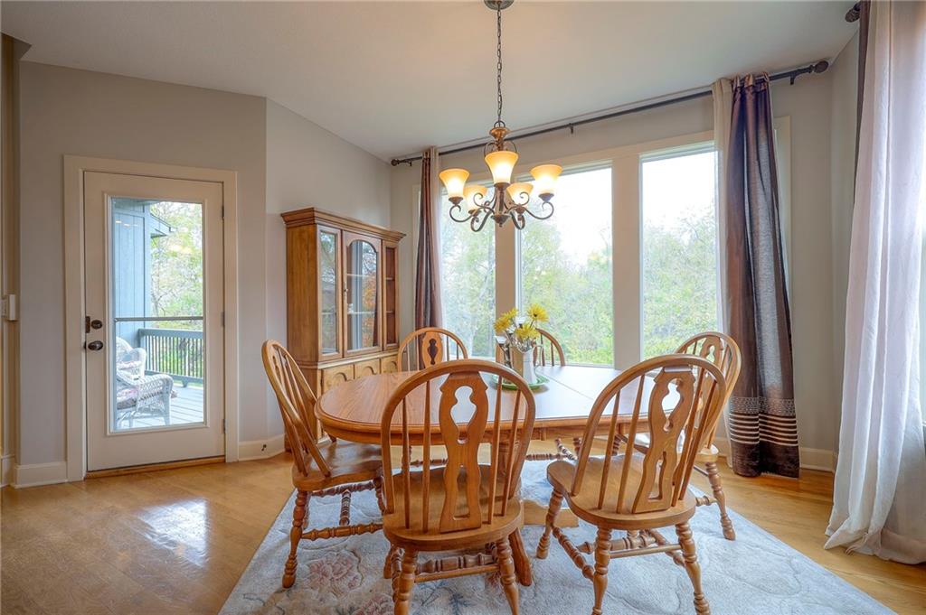 If you’ve been searching for a reverse 1.5-story home that seamlessly blends comfort, style, and privacy—look no further. Tucked away on a quiet, treed cul-de-sac, this beautiful home offers a peaceful retreat with scenic views from nearly every window. Step inside to discover an inviting open-concept main level where hardwood floors flow effortlessly through the living room, kitchen, and dining area. The living room impresses with 10-foot ceilings, custom built-ins, and a cozy fireplace, creating the perfect gathering space. The kitchen is both functional and elegant, featuring a generous center island, granite countertops, rich stained cabinetry, and a walk-in pantry, ideal for everyday living or entertaining guests. Just off the dining area, the covered deck invites you to unwind with your morning coffee while enjoying the tranquil, tree-filled backdrop. The spacious primary suite is a true sanctuary, boasting vaulted ceilings and a spa-inspired bathroom complete with a tiled walk-in shower, jetted tub, dual vanity, and expansive walk-in closet. A secondary bedroom on the main level provides flexibility for guests or a home office. The finished walkout lower level is designed for entertaining, with 10-foot ceilings, a large rec room, a wet bar, two additional bedrooms, and a full bath. There’s also ample unfinished storage space with built-in shelving—perfect for keeping everything neatly organized. Thoughtful updates offer peace of mind, including a 2-year-old composition roof, a 3-year-old HVAC system, and newer exterior paint. All the big-ticket items have already been taken care of, so book your showing today!