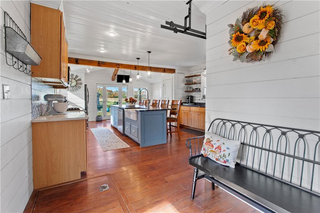 Charming country colonial on 15 acres with a pond and horse facilities. Welcome to this beautifully maintained colonial home nestled on 15 acres of peaceful countryside. This 4-bedroom, 2-bathroom blends country and classic charm, offering a retreat for horse enthusiasts and country living seekers alike. Discover a spacious, fully remodeled country kitchen, ideal for gatherings and everyday living. The island is so big and beautiful, a coffee bar and has a banquet. The formal dining room comfortably seats 10+ perfect for the holidays. Main floor bedroom, full bath and laundry is so convenient. A 4-stall horse barn with a tack room and an outbuilding with concrete flooring and electricity. Two additional storage sheds provide even more space for equipment and tools. There's so much here you really just need to schedule an appointment and come take a look.