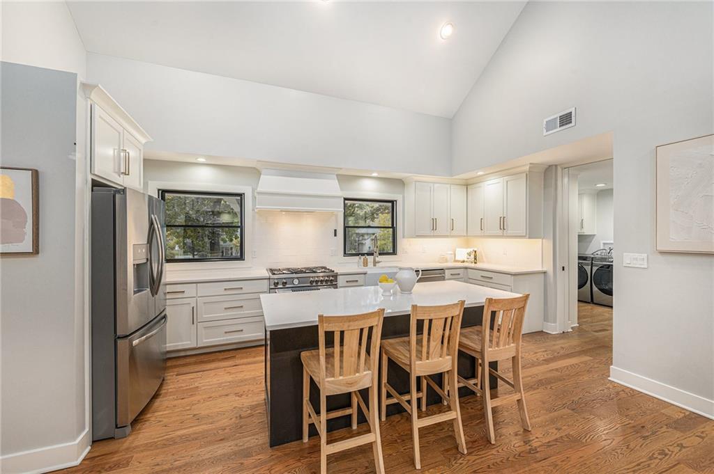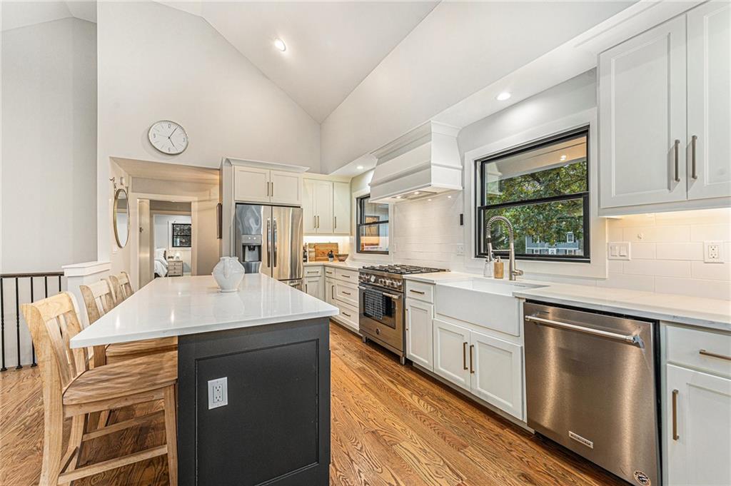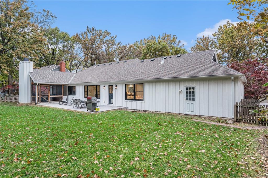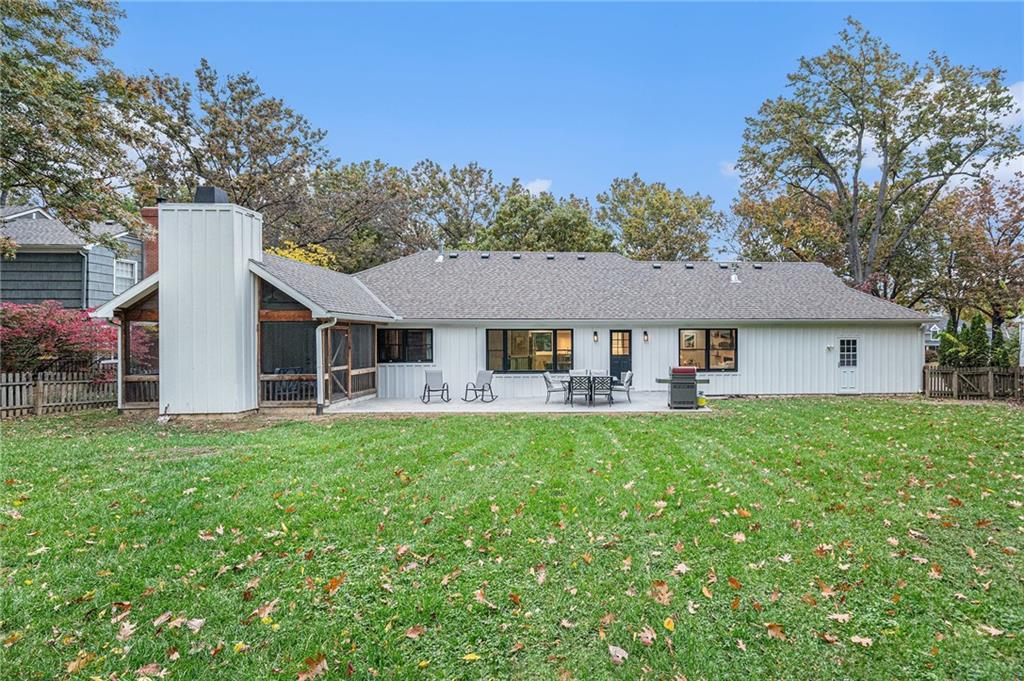Welcome Home! This beautiful ranch sits perfectly on a quiet, tree-lined street and offers everything you’ve been looking for — a fully fenced yard, cozy screened-in back porch with a fireplace, and an attached two-car garage. Inside, you’ll find 4 bedrooms and 3 full baths in a spacious, light-filled layout. A charming front sitting porch greets you as you arrive, setting the tone for the warmth and comfort throughout the home. The open floor plan features soaring ceilings and an abundance of natural light. The kitchen is a true showstopper, with stainless steel appliances, a large island, quartz countertops, custom cabinetry, a farmhouse sink, and a gas range. It opens seamlessly to the dining area and great room — perfect for everyday living or entertaining. Beautiful hardwoods run throughout the main level. The laundry room is conveniently located off the kitchen and offers additional built-in shelving that can double as a pantry or drop zone for daily essentials. The primary suite is located on the main level and includes a spacious closet and an updated bath with a double vanity and walk-in shower. From the primary, step right out onto your private screened-in porch — a perfect retreat to enjoy morning coffee or unwind by the fireplace in the evening. A second bedroom and fully updated bath complete the main floor. The lower level offers the best of both worlds — additional living space with a wet bar (including sink and beverage fridge), electric builtin fire place, plus two generous bedrooms and a third full bath. You’ll love this location — just minutes from Prairie Village shops, local parks, and award-winning schools. This home combines modern comfort, thoughtful design, and a welcoming neighborhood feel. Make this beautiful home your new perfect residence.