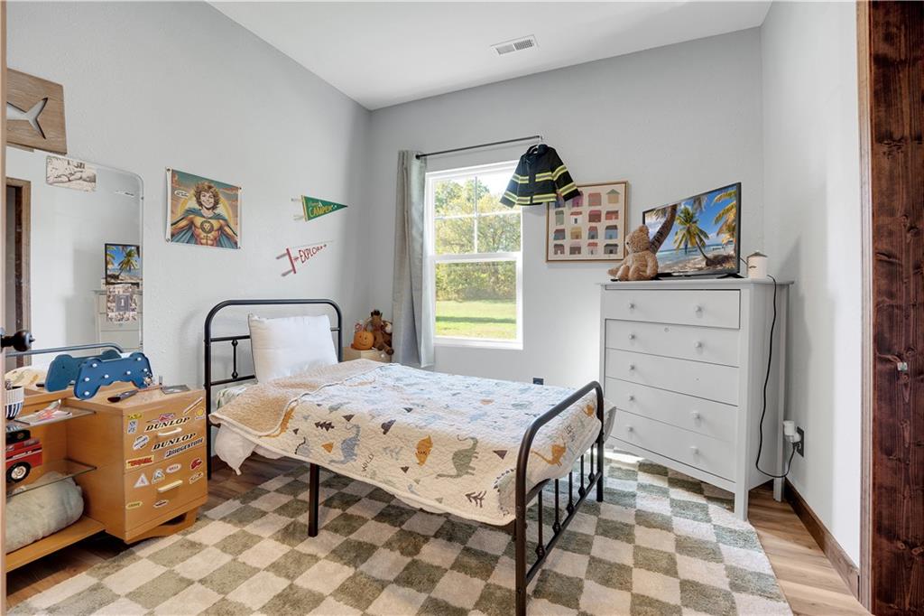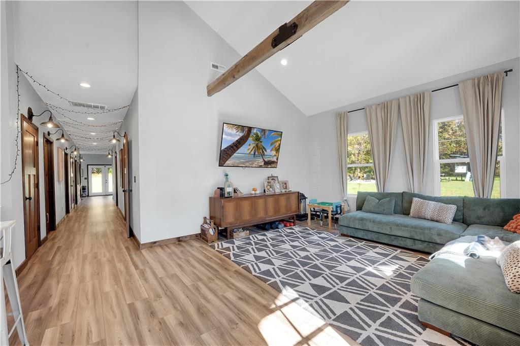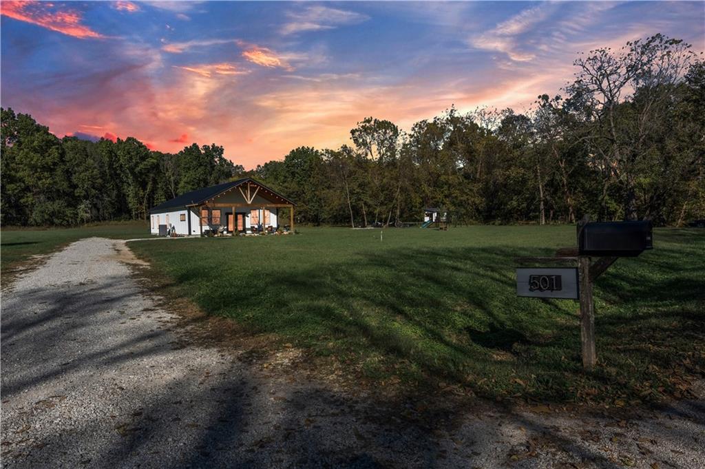Just North of Warrensburg in the most desirable area of Johnson County, you will find a newly constructed (2023) ranch home on 5 acres of rolling green space, wooded hunting ground, and explorable creek! This farmhouse style home has modern finishes, wood beams, and thoughtful details. It was built with intention! Four spacious bedrooms and 2 large bathrooms, lofted space for additional room, and an open + vaulted kitchen and living space, a lovely covered front porch. There is plenty of space to add a garage or numerous outbuildings. The property is in the Hazel Hill area with a recreation lake nearby and close to land conservation efforts. This is truly a gem of a property - you will want to see it!