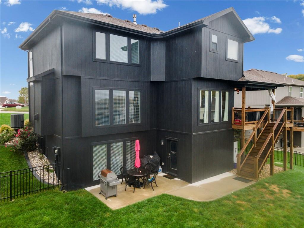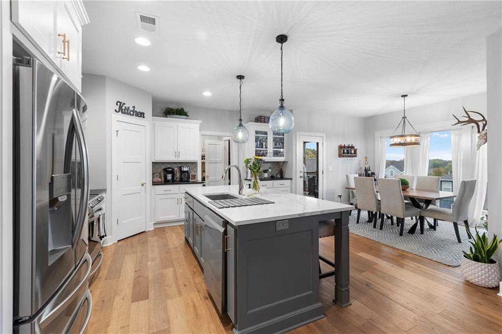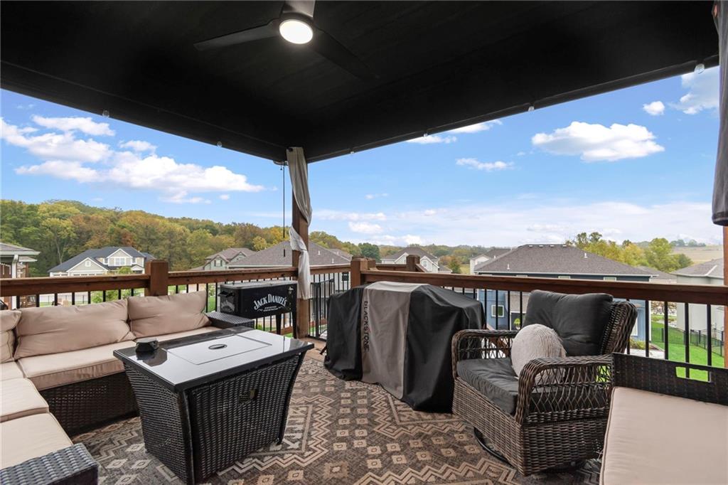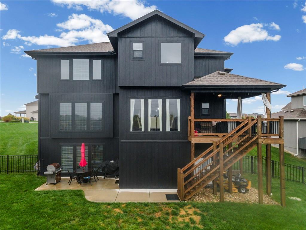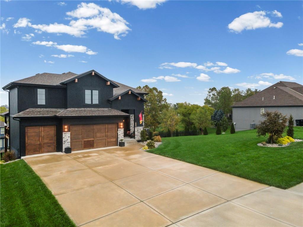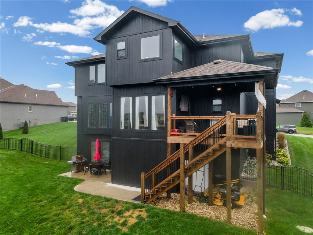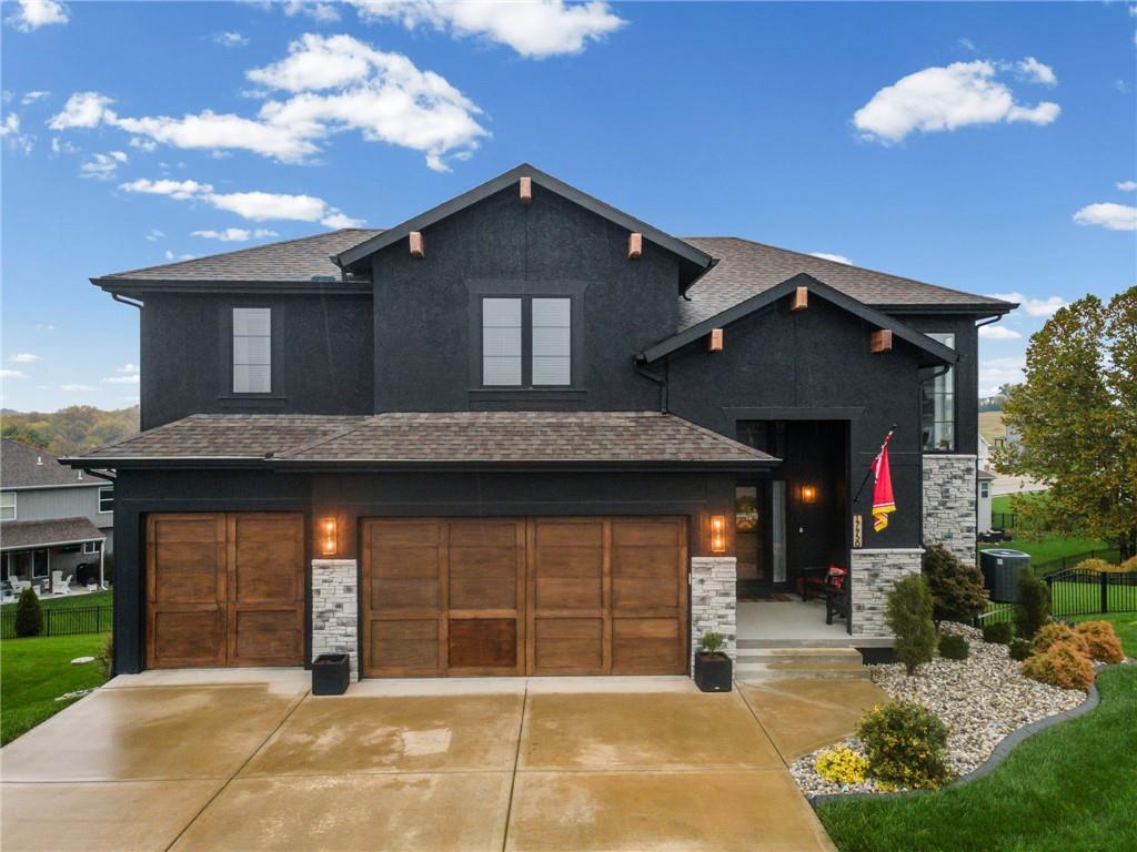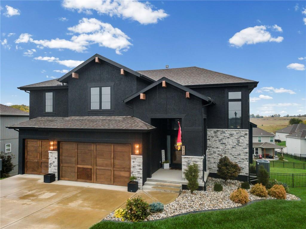 Welcome to this stunning modern home in the coveted community of Seven Bridges. Set on nearly a HALF-ACRE, one of the LARGEST LOTS in the neighborhood, this property seamlessly blends timeless design with everyday comfort. The newly painted exterior showcases dark stucco, warm wood garage doors, and stone accents that create instant curb appeal. Inside, wood floors flow throughout an open-concept layout filled with natural light from oversized windows. The kitchen, with its large quartz island, elegant gray arabesque backsplash, and walk-in pantry, opens to a cozy family room and covered deck. The adjoining patio, connected by the walkout basement, creates a seamless indoor-outdoor flow. Step outside to a giant backyard with fresh landscaping, full fencing, and a sprinkler system. The yard transitions beautifully from the neighborhood’s gentle landscape into wide-open green space beyond, making every sunset view unforgettable. This home includes abundant storage closets, a practical mudroom with a built-in desk, and a deep utility sink in the laundry room. The primary suite feels like a private retreat with an oversized walk-in closet that connects directly to the laundry room. The spa-style bath features double vanities, a freestanding tub, a dual-head tile shower, and an elegant cascading chandelier. The walkout basement has large windows that bring in natural light and endless potential to finish your way. This fall, picture family nights by the fire, weekend games in the yard, and quiet mornings on the porch with coffee and sunrise views. Seven Bridges offers resort-style amenities including pools, tennis and basketball courts, a clubhouse, playground, and scenic walking paths for community living at its best.