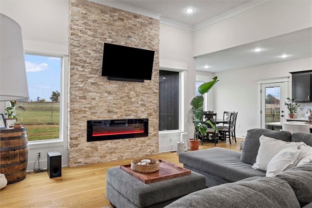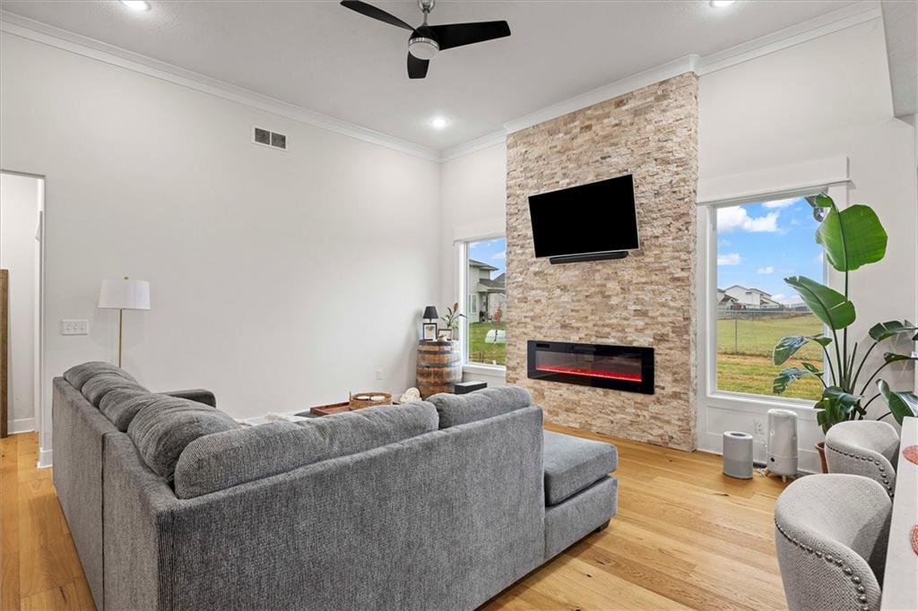 Fantastic flow and functionality offered in this floor plan that blends contemporary design and classic charm. This true ranch offers 3 spacious bedrooms with two beautifully appointed bathrooms. Neutral palette compliments any style. Striking exterior gives way to an interior with 12' entry leading to great room and kitchen & dining that is both modern and timeless. Kitchen features quartz counters, gas range, butlers pantry that leads to main pantry .Great room with floor-ceiling stone electric fireplace. Lovely master suite with walk in closet. Relaxing back patio. Tandem 4 car garage for plenty of room for vehicles, toys and storage. Buyer bought during construction. Upgrades over allowances on fixtures, flooring, appliances.