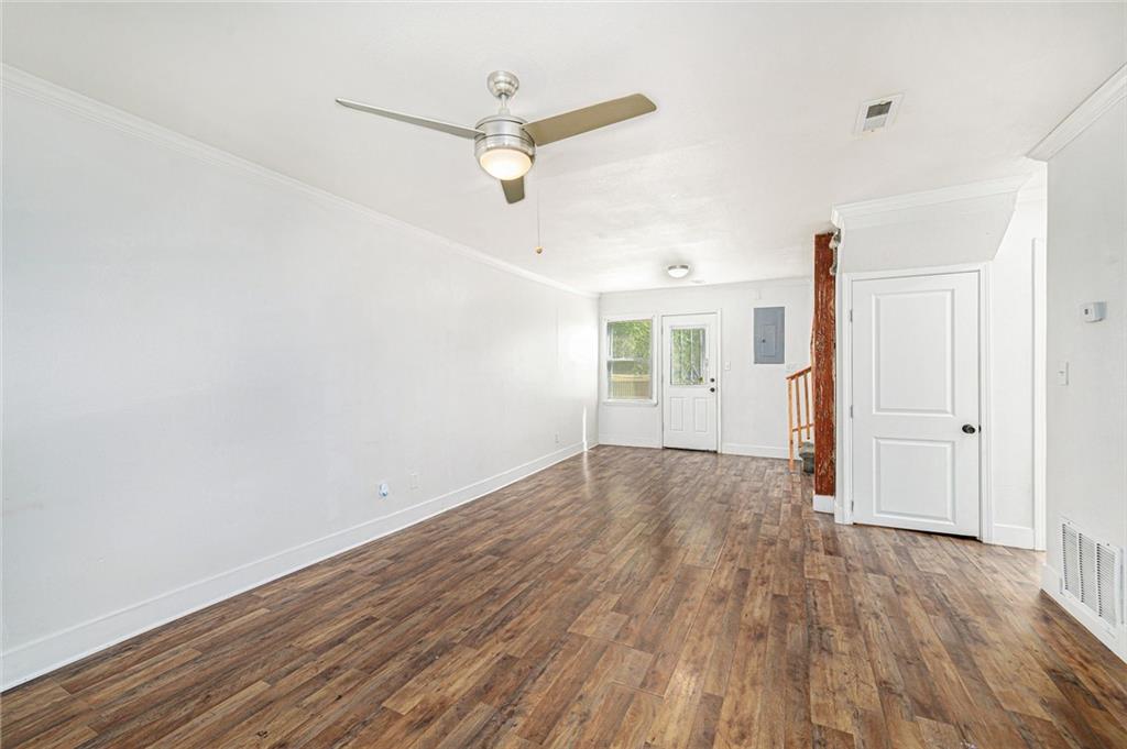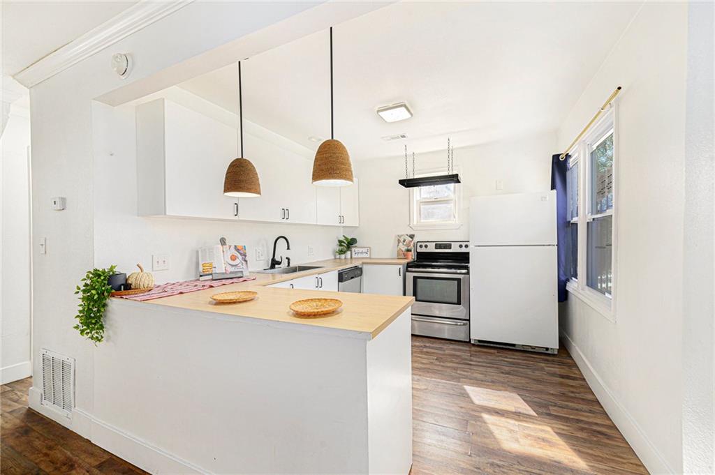 Welcome home to this beautifully semi-renovated 2 bedroom, 1 bath property, ideal for first time homebuyers or savvy investors! Enjoy the open concept living space featuring a modern kitchen with stainless steel appliances, ample cabinetry, and updated flooring throughout. The bright, renovated bathroom showcases clean white finishes and a stylish subway tile shower. Upstairs, the spacious primary bedroom offers comfort and privacy. Step outside to a large backyard with a good sized deck, perfect for relaxing or entertaining. Conveniently located with easy highway access, less than 15 minutes from the Country Club Plaza, Downtown shopping and dining, and close to the VA hospital.