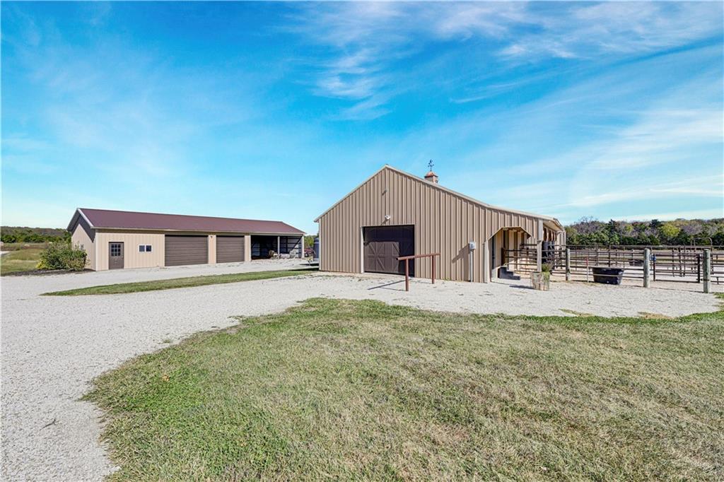 Experience refined country living on this stunning 17-acre 1.5-story estate bordering Hillsdale Lake Corp land on both the east and south sides — creating privacy and uninterrupted views. The land offers a beautiful mix of open and wooded space, including just under 3 acres of timber, approximately 7 acres of hay ground, and an additional 5 acres of lush pasture ideal for grazing. Designed with horses and acreage living in mind, the property features a 5-stall barn with turnouts and a 60x200’ arena for training or riding. A separate shop provides convenient hay/equipment storage and includes two oversized bays with garage doors. The home is framed by gorgeous landscaping, with two outdoor seating areas overlooking the pastures and arena — a peaceful backdrop for everyday living. With a 3-car garage and a layout built for both function and lifestyle, this property offers a rare combination of privacy, usability, and a setting that feels wide open and still private.