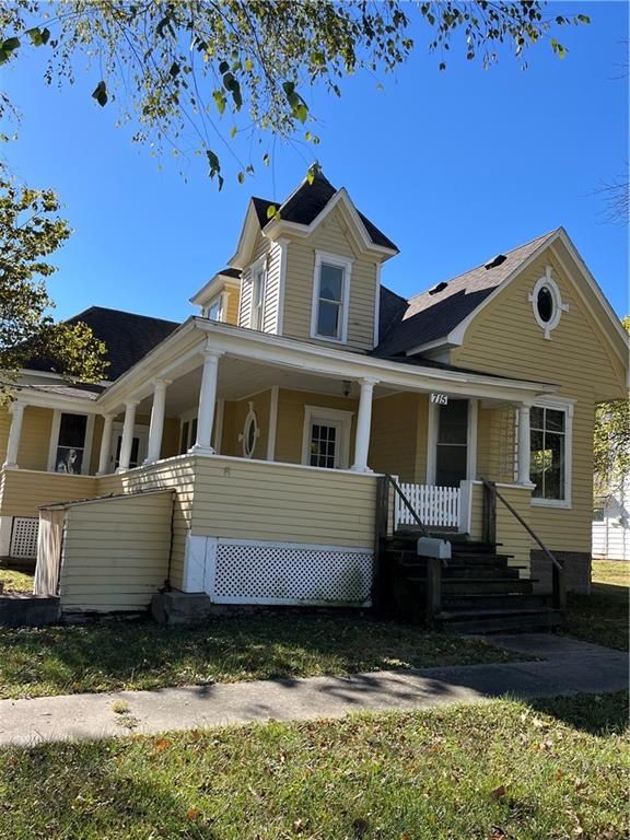 Step back in time with this truly charming Victorian-style home in the heart of Cameron, Missouri! Bursting with character, this historic gem features original woodwork, trim, baseboards, transom windows, tall ceilings, and timeless hardwoods throughout. The main level offers a warm and welcoming eat-in kitchen, complemented by a charming glass-front, see-through cabinet that opens to the formal dining room. You’ll also appreciate the convenience of a main-floor laundry room—a rare feature in a home of this era. Upstairs is fully finished with beautiful rooms and abundant natural light—ideal for bedrooms, studio space, or a cozy retreat. The home includes a full basement with extra-tall ceilings and interior access, offering incredible potential for storage, a workshop, dry goods cellar, hobby space, or whatever your heart desires. Enjoy the quintessential wraparound front porch, perfect for morning coffee or evening relaxation. Situated on a deep city lot with alley access, the property includes an attached oversized garage/workshop, ideal for storage, hobbies, or projects. Major updates include a new boiler and newer hot water heater, providing peace of mind while you restore and reimagine the rest of this amazing home. This is a historic property waiting to be brought back to life—full of charm, potential, and ready for the right vision. The current owners have never occupied the home and invite you to come experience its character and possibilities for yourself.