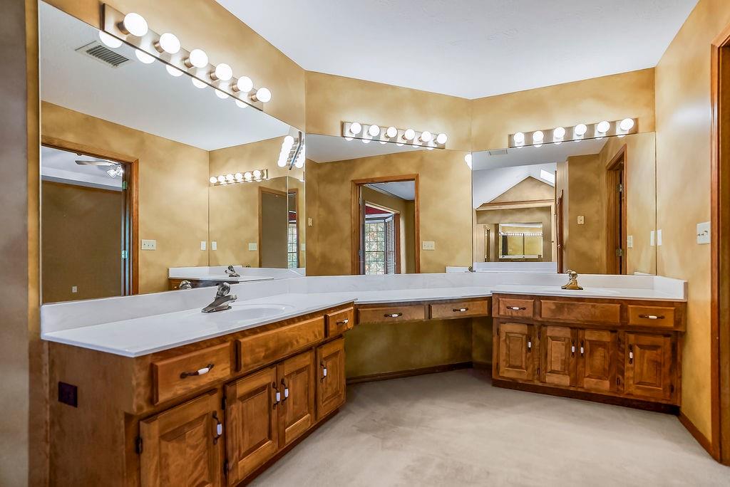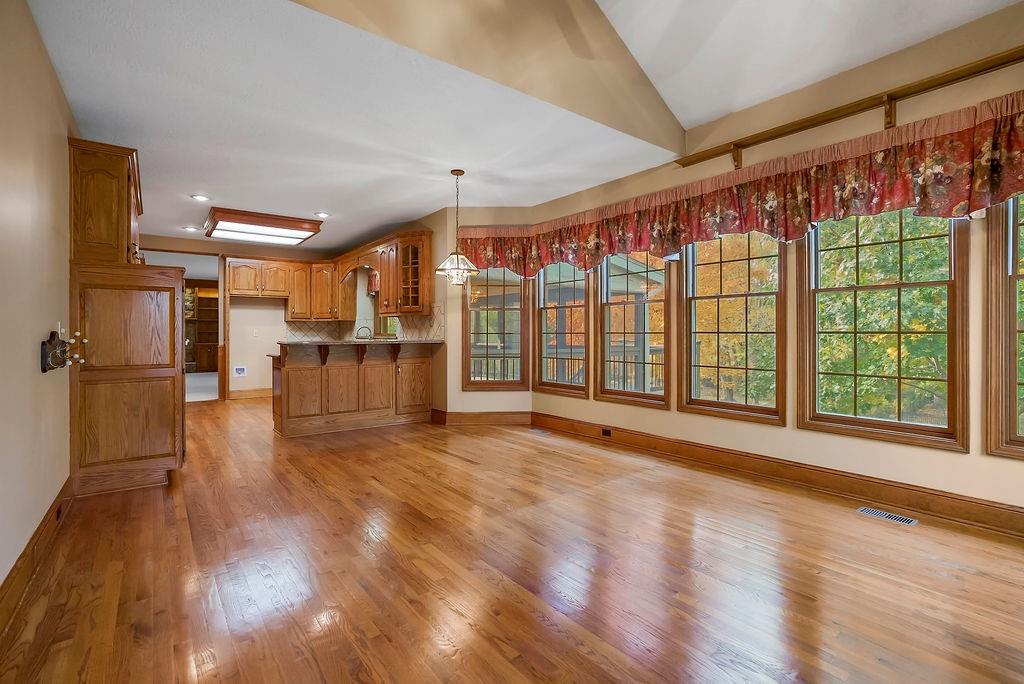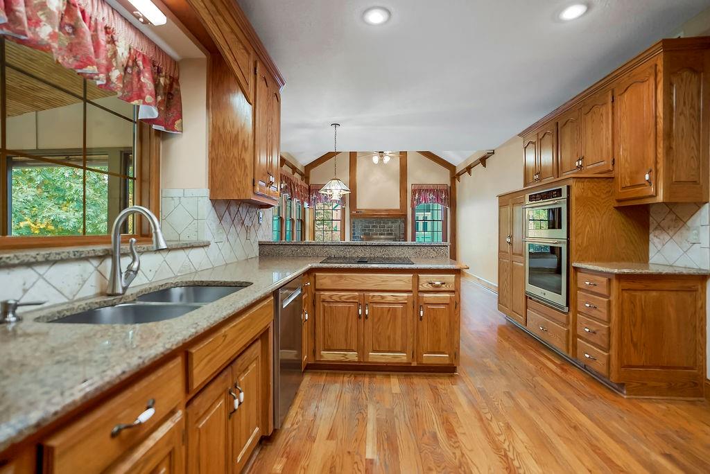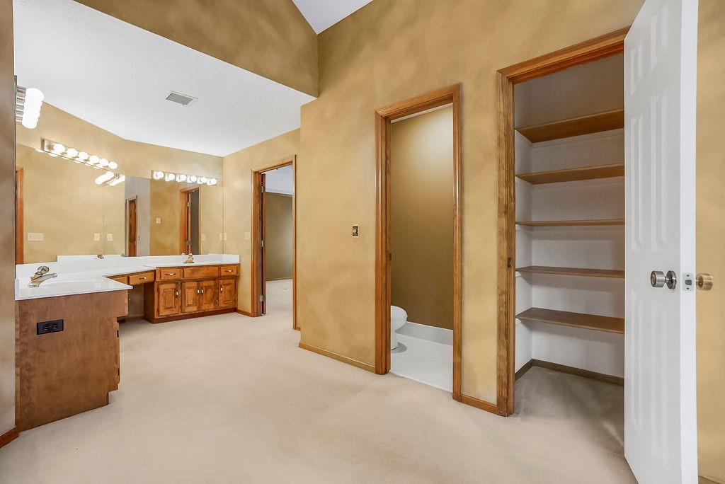Welcome to a super special property in Blue Valley Schools — a lovingly maintained home surrounded by nature and privacy. The main lot is just over 18,000 sq ft, and it comes with two additional parcels, giving you extra space. Step out back and relax on the screened-in deck, the perfect spot for morning coffee, summer dinners, or watching the sunset over your spacious backyard. This home has a number of thoughtful updates: NEW furnace, NEW AC, NEW water heater, and NEW exterior paint — all the big stuff is done, so you can move in and enjoy. Each bedroom has its own bathroom (including a Jack and Jill), and every room feels spacious with large closets and natural light. The primary suite features a large bathroom plus an amazing walk-in closet. The main floor offers an open and comfortable flow — a family room with fireplace and built-ins, kitchen with deck access, and convenient laundry right off the hearth room. The walkout lower level adds even more living space with a finished family area, private office, full bath, and a large workshop/storage area. With a three-car garage, oversized driveway, and room to breathe both inside and out, this home has been carefully cared for by its original owners and it shows in every detail. Come see why this special property feels more like a retreat than just a home!