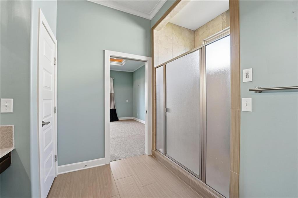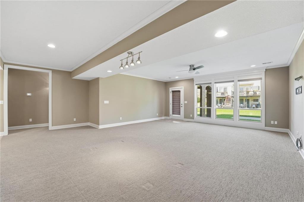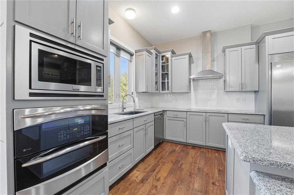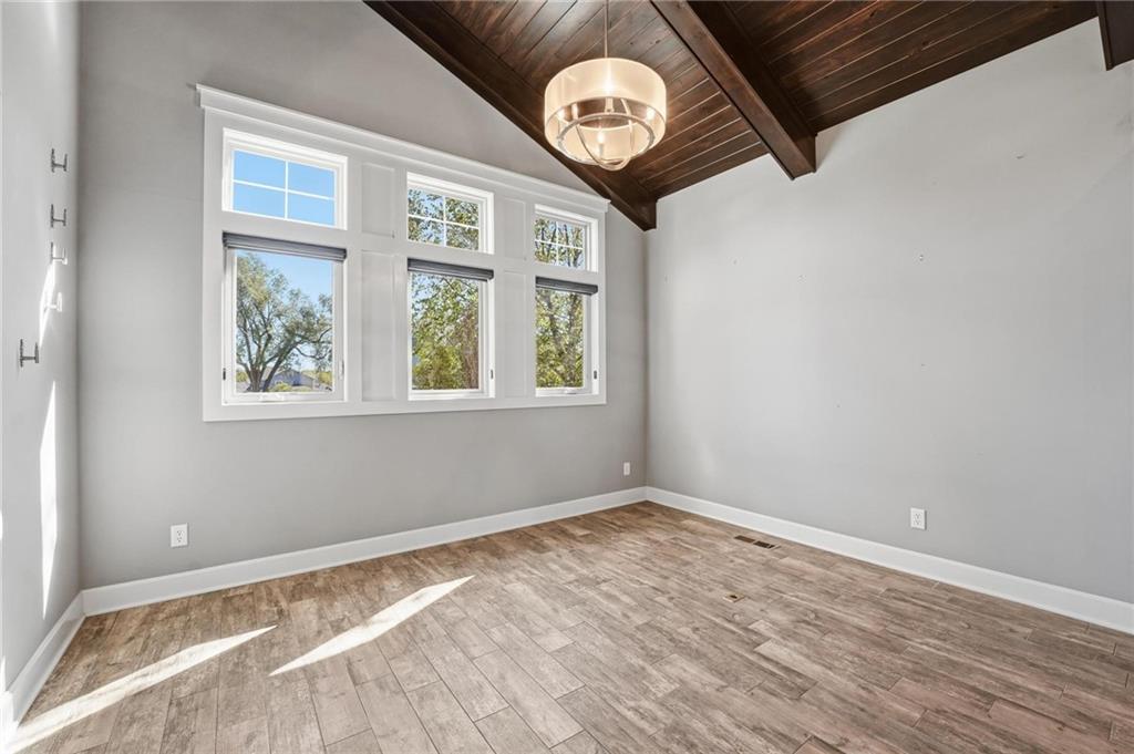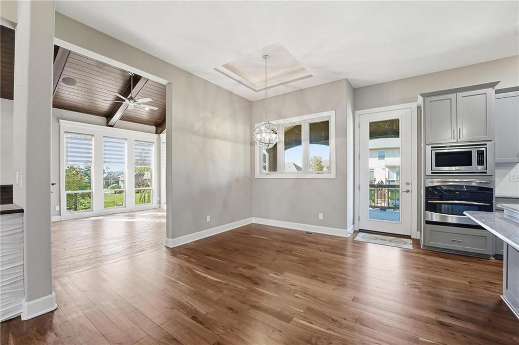 Exceptional custom home designed with entertaining in mind. Stunning walnut floors from the gracious entry, through the great room, kitchen & breakfast room. Great room has vaulted ceiling, gas fireplace in stone accent wall, built-ins & floating shelves. Kitchen has large island, top of the line appliances including built-in Frigidaire Professional refrigerator/freezer, cooktop with vented hood, dbl oven, microwave & dishwasher. Pantry is 5x16 with built in desk under window, tons of shelf space. Breakfast nook is ideal for banquet, full glass door out to Lanai, vaulted ceiling, ceiling fan. Bonus main level family room has 19' bar w/custom cabinets, granite counters, stone walls behind bar, 2nd 15' long serving bar with tons of storage, granite countertop & mid century design. Family room has 15' vaulted ceiling with tongue & groove ceiling & beams. A beautiful den space, or room for baby grand piano, under the beautiful fixture plus additional dining space surrounded by windows & door out to large covered Lanai with tile floor. The primary suite is large with vaulted ceiling & luxury bath with separate vanities, very large tiled shower, dream 10x18 walk-in closet with large dresser island, walks through to laundry. Staircase to lower level with custom glass panel railing, large windows flooding the stairway with natural light. Large family room with wet bar area with tiled floor. 1 guest suite with bath & large walk-in closet, 2 additional bedrooms have walk-in closets, each with private vanity spaces, share shower. 1 bedroom has a secret passageway through built-in bookcase, to 8x9 storm area/storage under front porch! New covered patio off lower level family room is 20x13. Car lovers, a bonus 4th garage, has driveway from main level, is 22'd x 19'w. The main level 3 car garage is oversized, 31'wide, with 11' ceiling, 2 car side is 24'deep, 1 car side 29'deep with 9' wide door. North Shore is Cass County, Lee's Summit Schools.