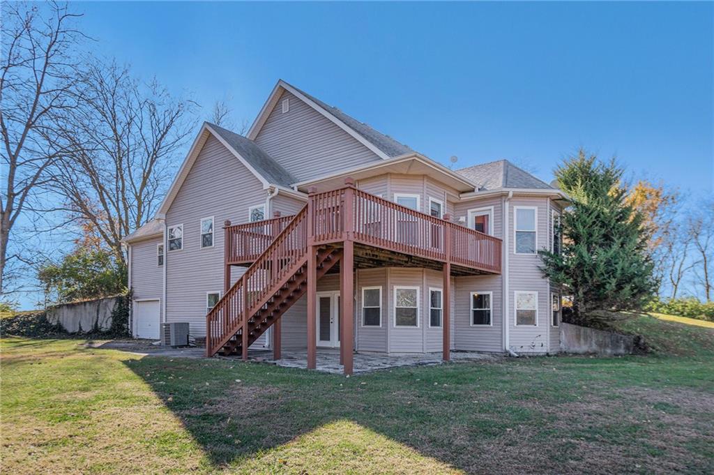 Nestled on a private 5-acre retreat, this beautiful 3-bedroom, 3-bath home offers a perfect blend of space, comfort, and seclusion. The main level offers an open floor plan with soaring ceilings, creating an inviting living area that flows seamlessly into the kitchen and dining space—ideal for entertaining or cozy family gatherings. With convenient access to the large deck overlooking the back yard, where wildlife is abundant, and the privacy is unmatched. Upstairs, a loft area provides extra living space—perfect for a home office, reading nook, or guest lounge. The partially finished basement adds even more potential, with a full bathroom, fireplace, large open area for your rec-room or additional bedroom, all under a 9’ ceiling; this space is extremely versatile. The 2 car garage on the main level is suspended, offering the ultimate space for your hobbies or additional storage with access through 2 full-size garage doors on the back side of the home.