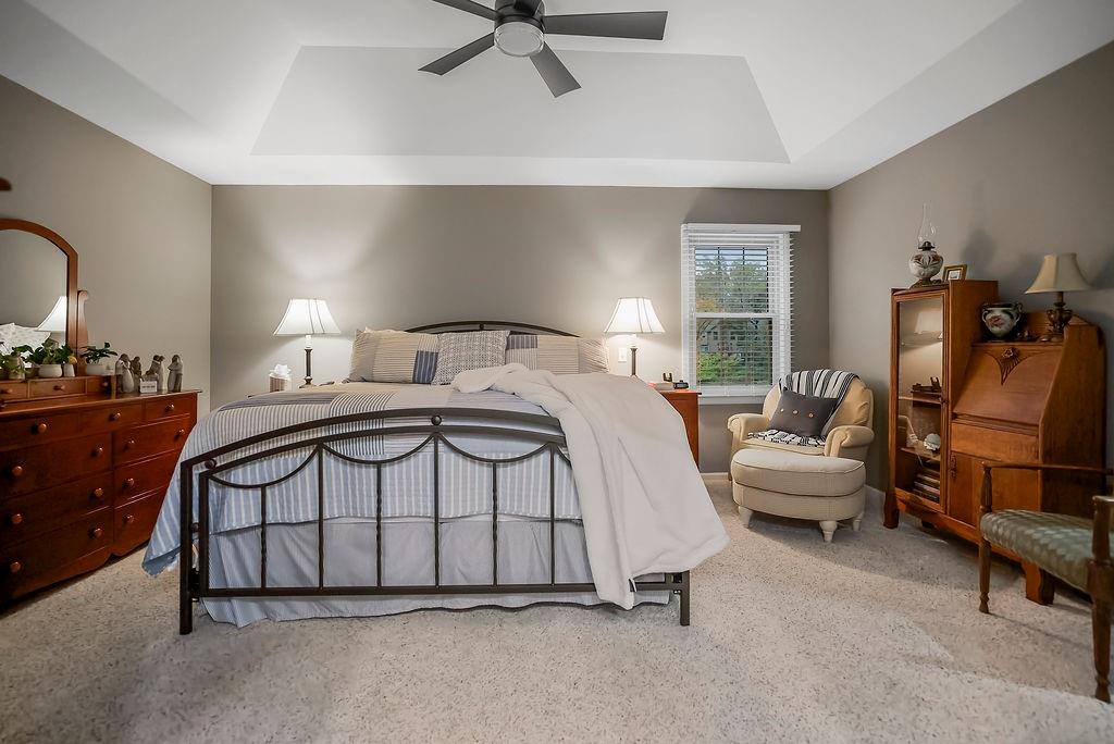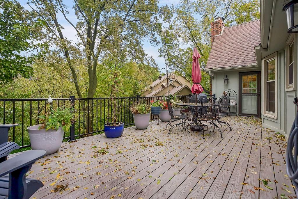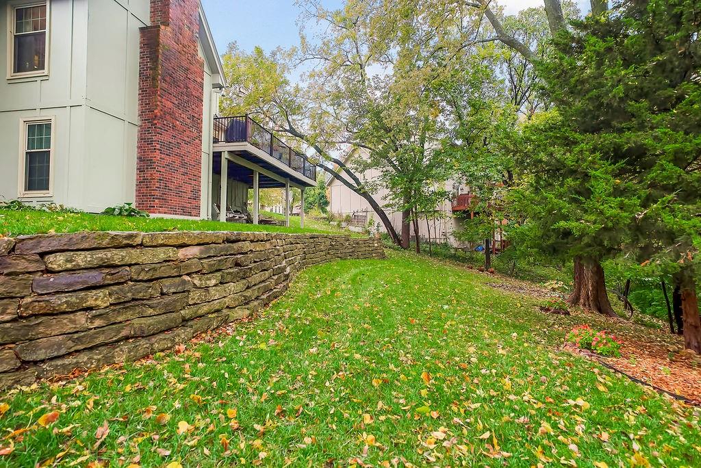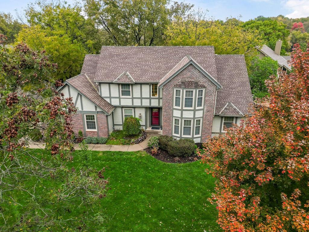 STUNNING! This large Tudor style home is nestled in the trees on a large corner lot in popular Lenexa. Boys with their toys will love the 4 car garages - 2 on the side and 2 in the basement. FIVE bedrooms, Four full baths and two half baths. Large master suite on main floor and also 2nd bedroom, 2nd bath and half bath on main floor. Finished walk-out basement and yet tons of storage!