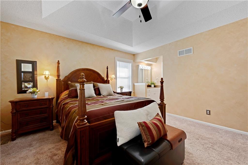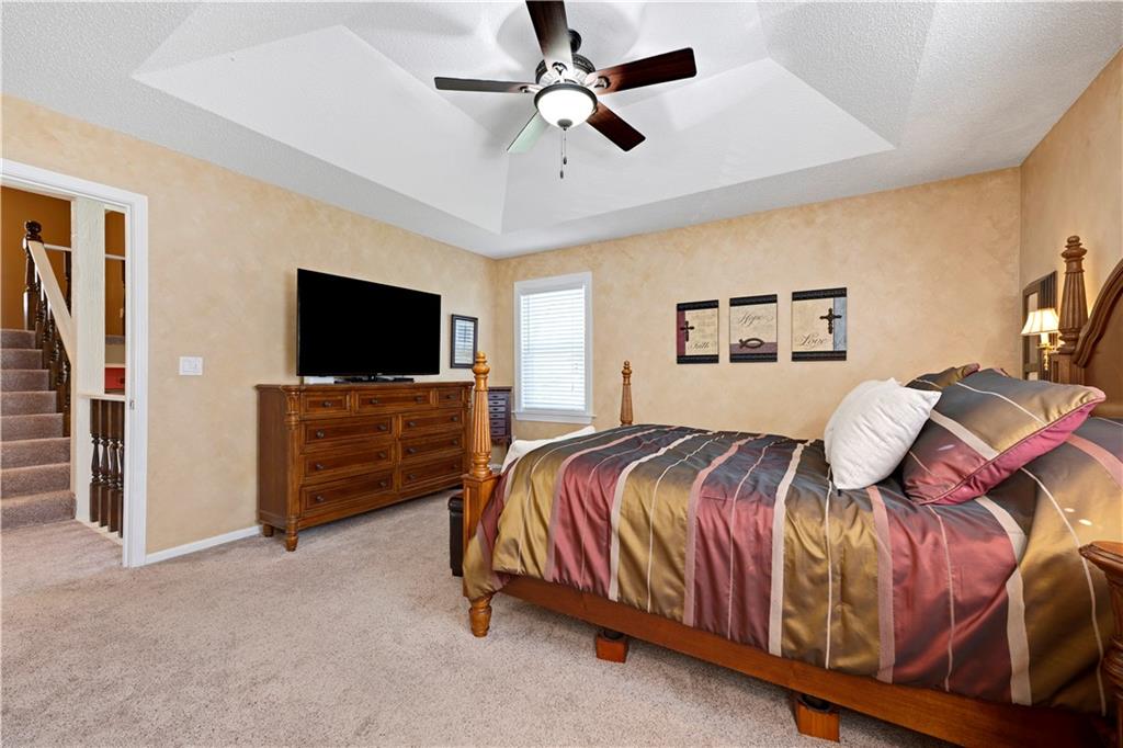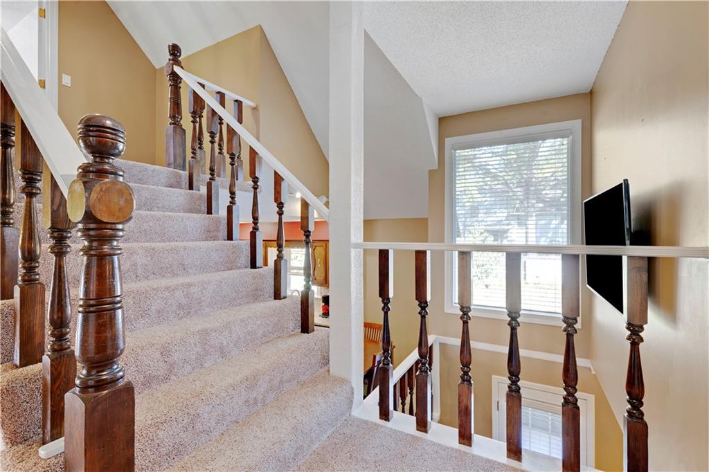 Beautifully maintained 4-bedroom in Sheridan Bridge. Conveniently located in the heart of Olathe with easy access to shopping/dining and nearby schools. This home makes gatherings easy by offering a living room right off the entry, a dedicated dining room connected to an eat-in kitchen with granite counters. A few steps down is a gorgeous family room featuring a beautiful fireplace surrounded with built-in shelving. Use your bedrooms for sleeping because this home also offers a bonus room perfect for an office, playroom or fitness area. Don't wait on this one!!
