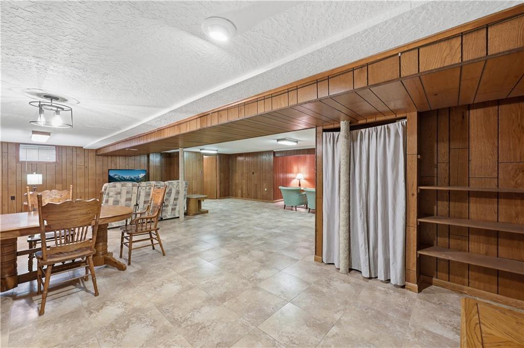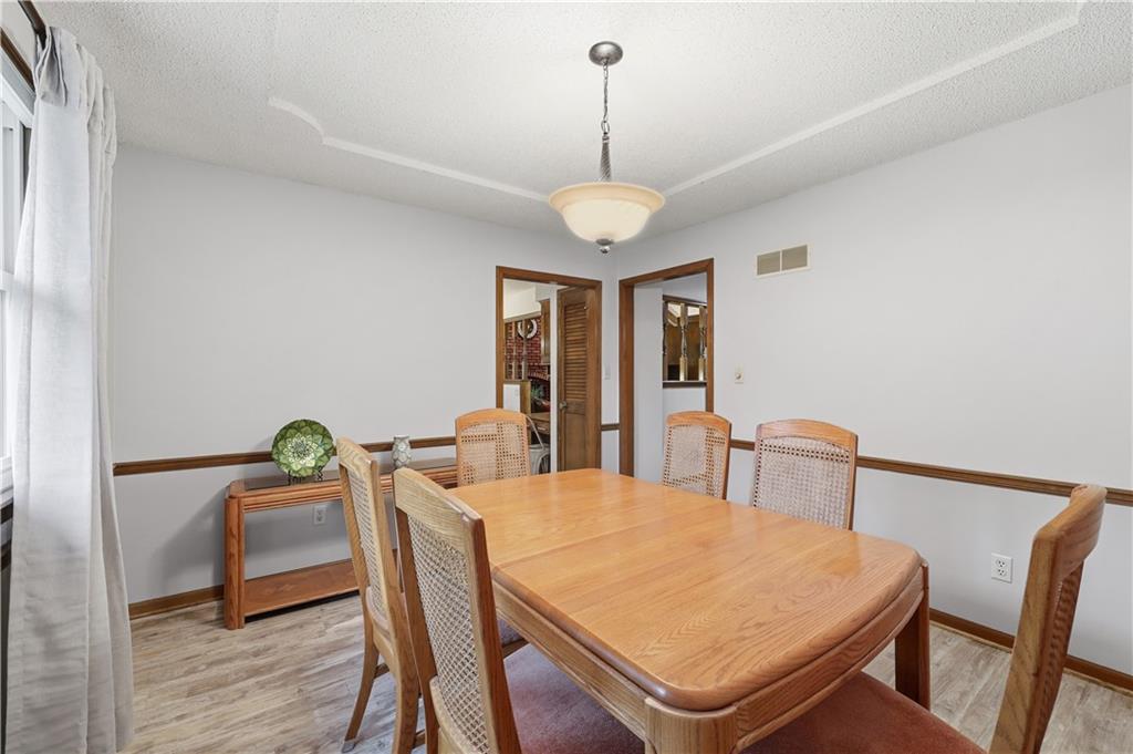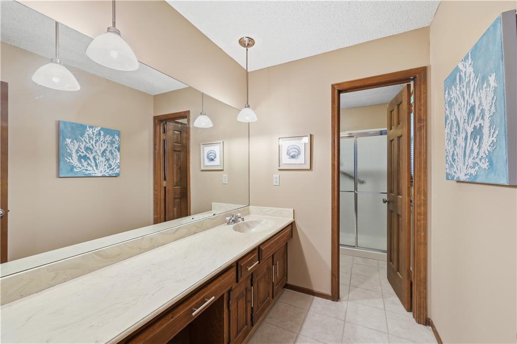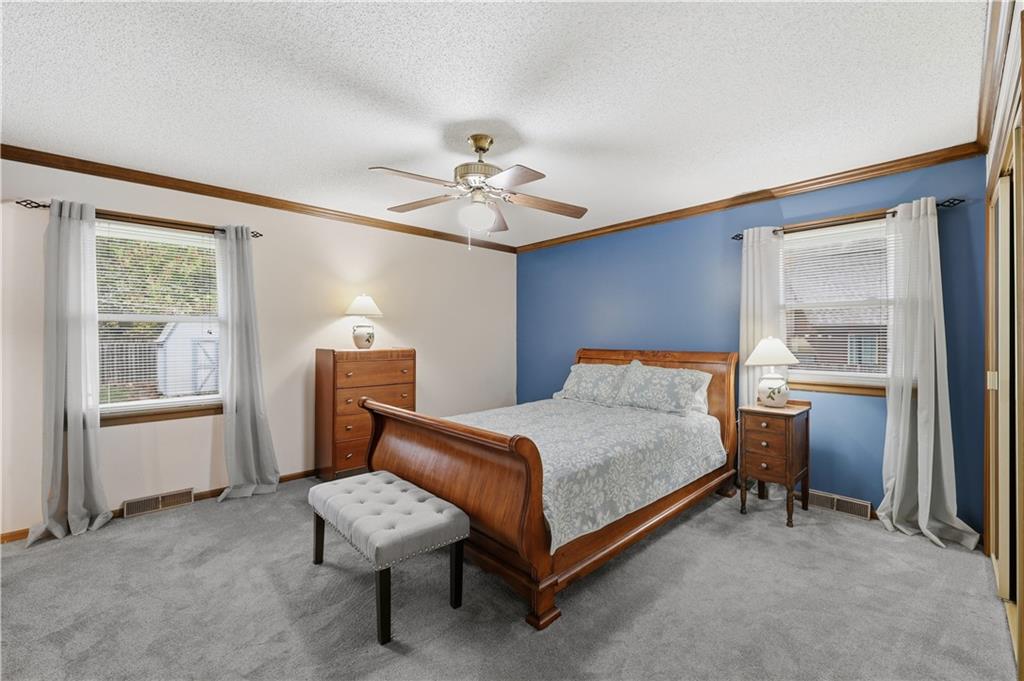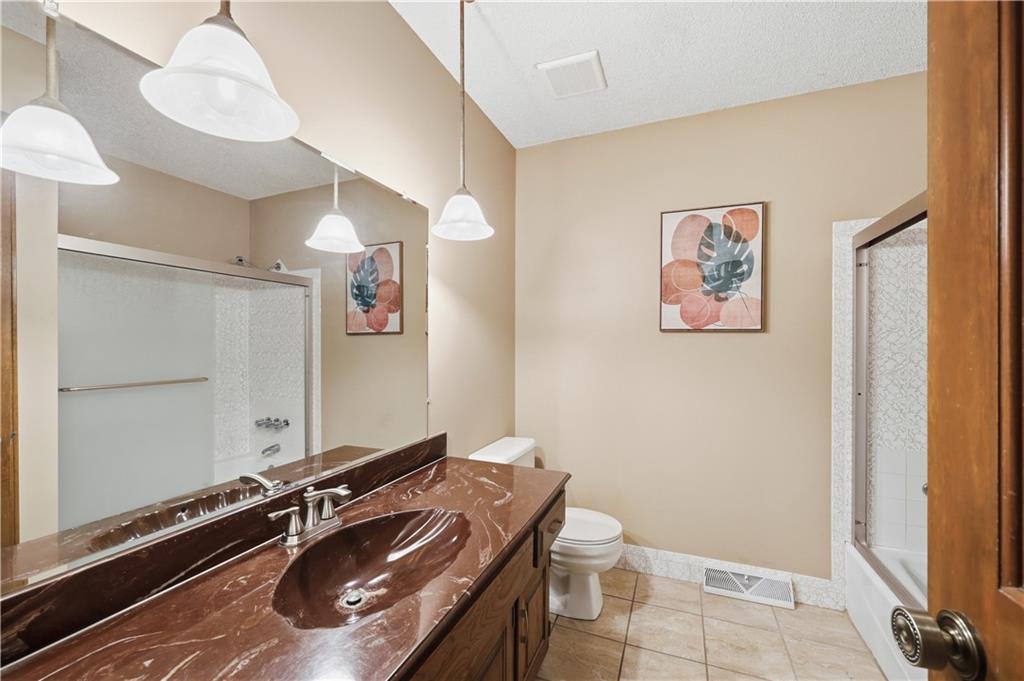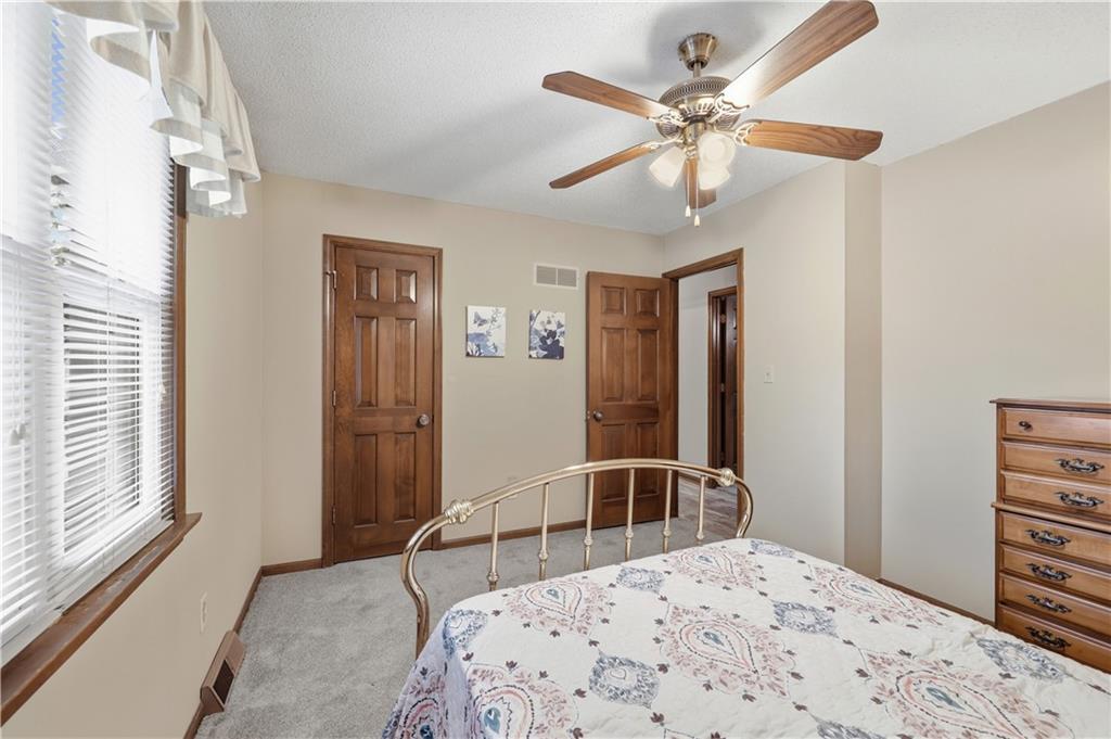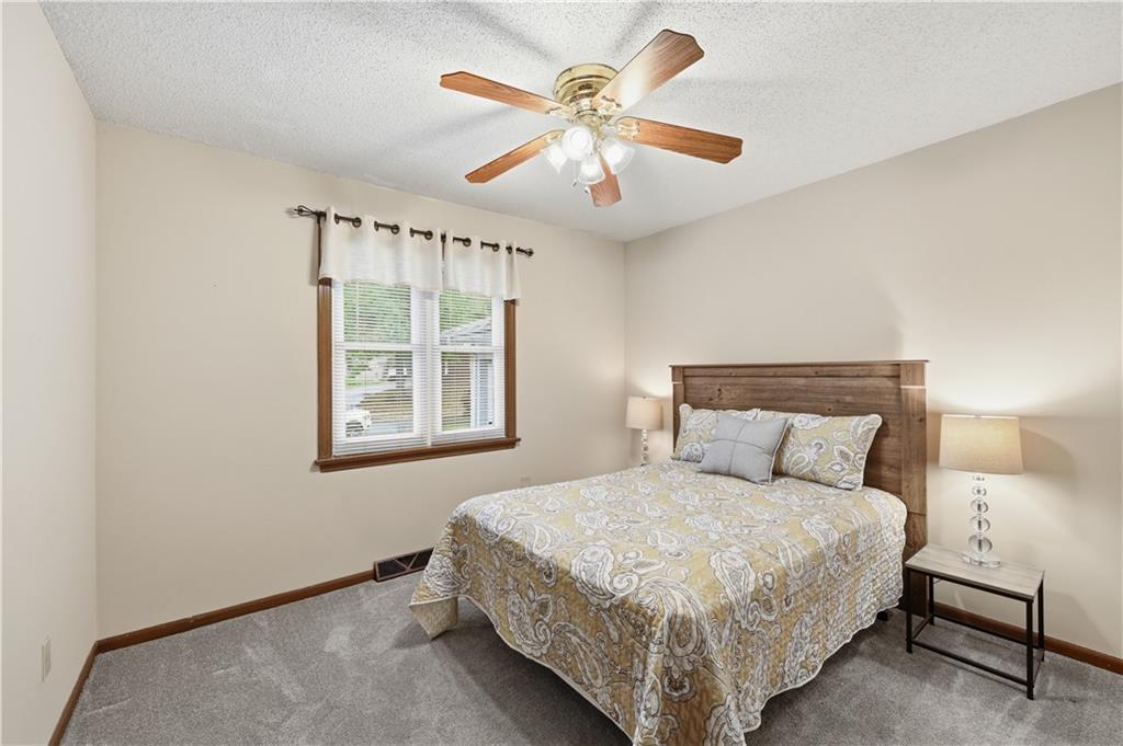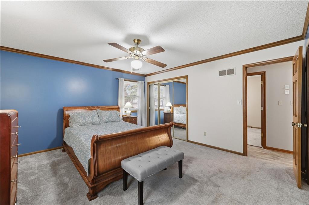 Welcome to this beautifully maintained, move-in ready full ranch in the established Castle Woods neighborhood of Independence. This 3-bedroom, 2.5-bath home offers comfortable main floor living in a quiet community with convenient access to highways, shopping, and dining. Step inside to find a spacious entry that leads to an impressive great room with vaulted ceilings, exposed beams, built-ins, and a dramatic fireplace that creates a warm and inviting gathering space. The eat-in kitchen features granite countertops, updated backsplash, and a formal dining area perfect for entertaining. The main level is one-step entry from garage, and includes a separate laundry room with extra storage. The primary suite offers dual closets with built-in organization and shelving to maximize storage, along with a private en-suite bath. Downstairs, the fully finished lower level provides a wide open recreation room with a fireplace, a non-conforming bedroom, and abundant storage space. Recent updates include new refrigerator, new luxury vinyl plank flooring, newer carpet, a newer furnace (Jan 2024), new hot water heater, and Maytag washer and dryer. Outdoor features include an oversized patio, privacy-fenced backyard, and a large storage shed with ramp access. The backyard is private and peaceful, and with the shed, ideal for pets, hobbies, or outdoor entertaining. Over the years, the sellers have made thoughtful improvements such as updated windows, driveway, kitchen and bath hardware, light fixtures, granite countertops, backsplash, and easy-care landscaping. This home has been meticulously cared for and reflects true pride of ownership throughout.