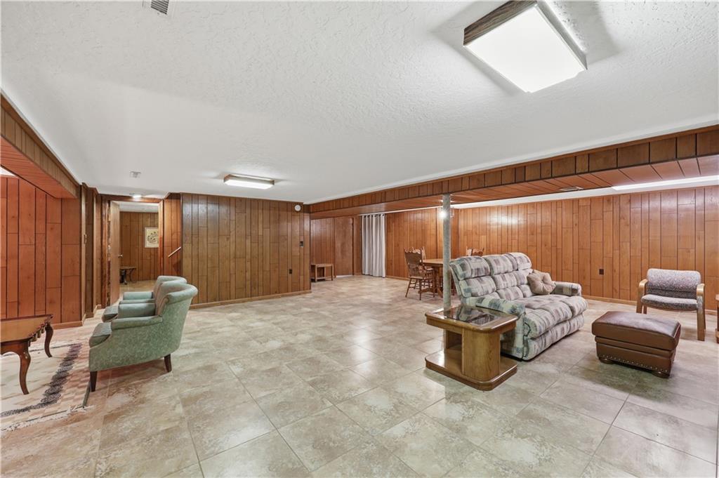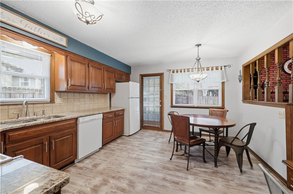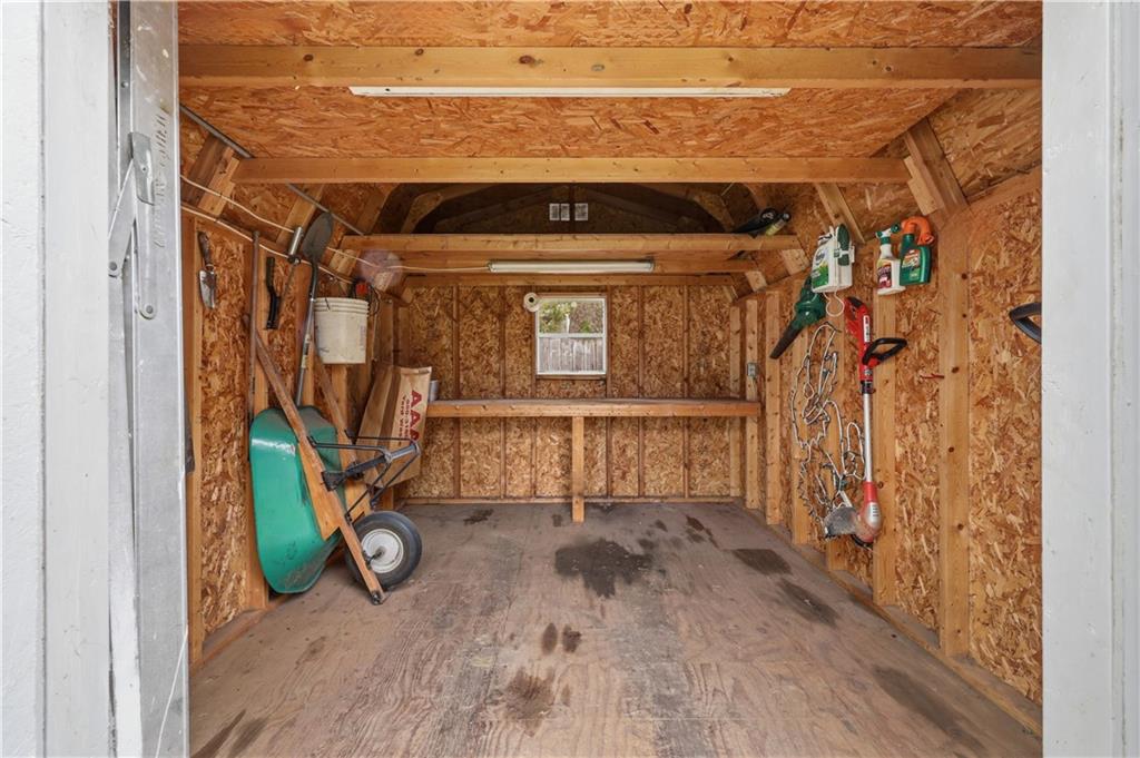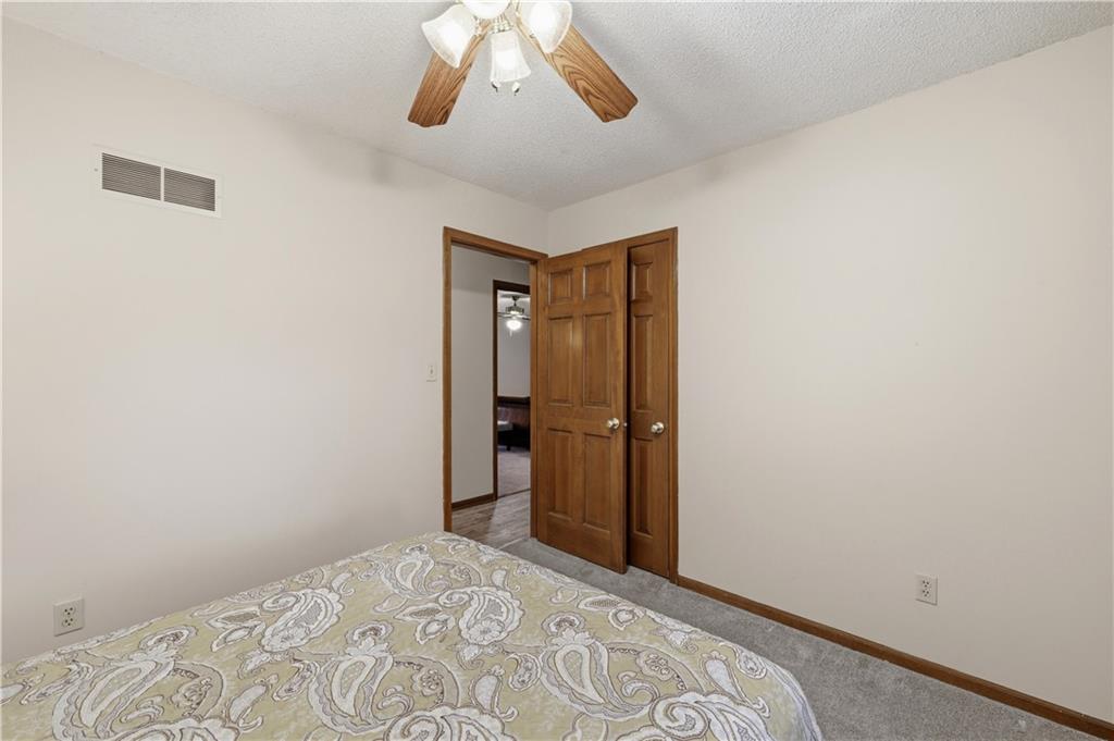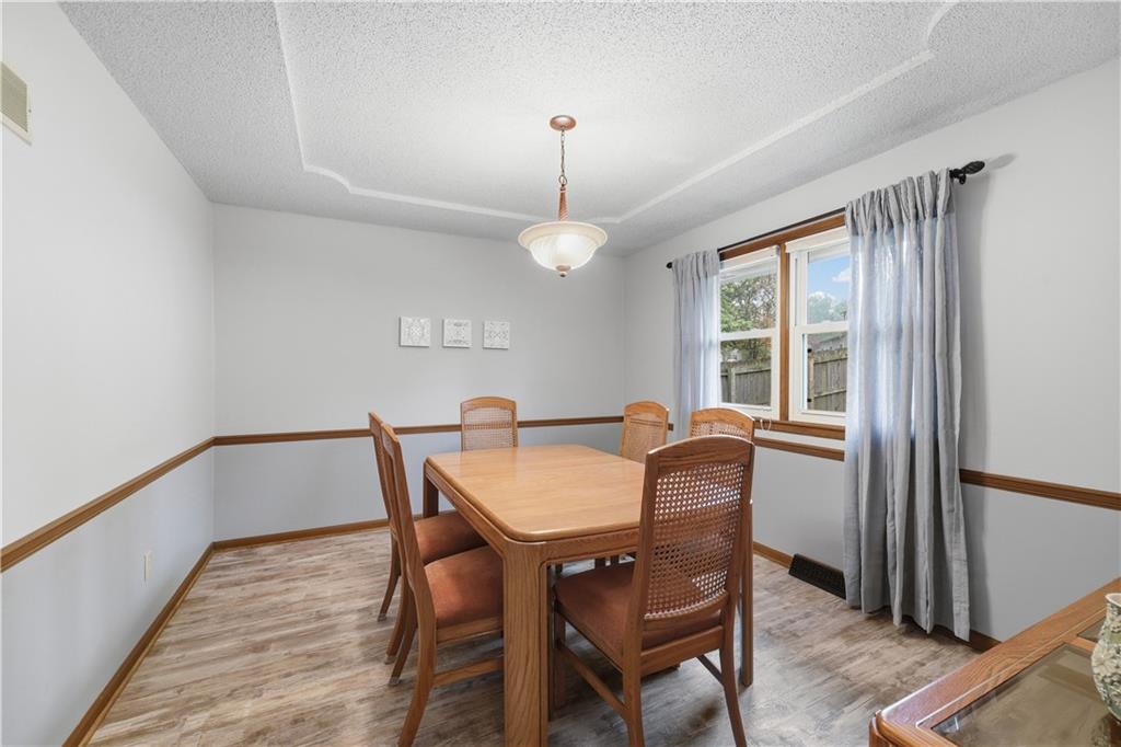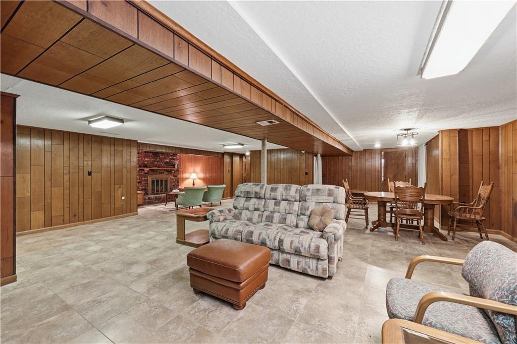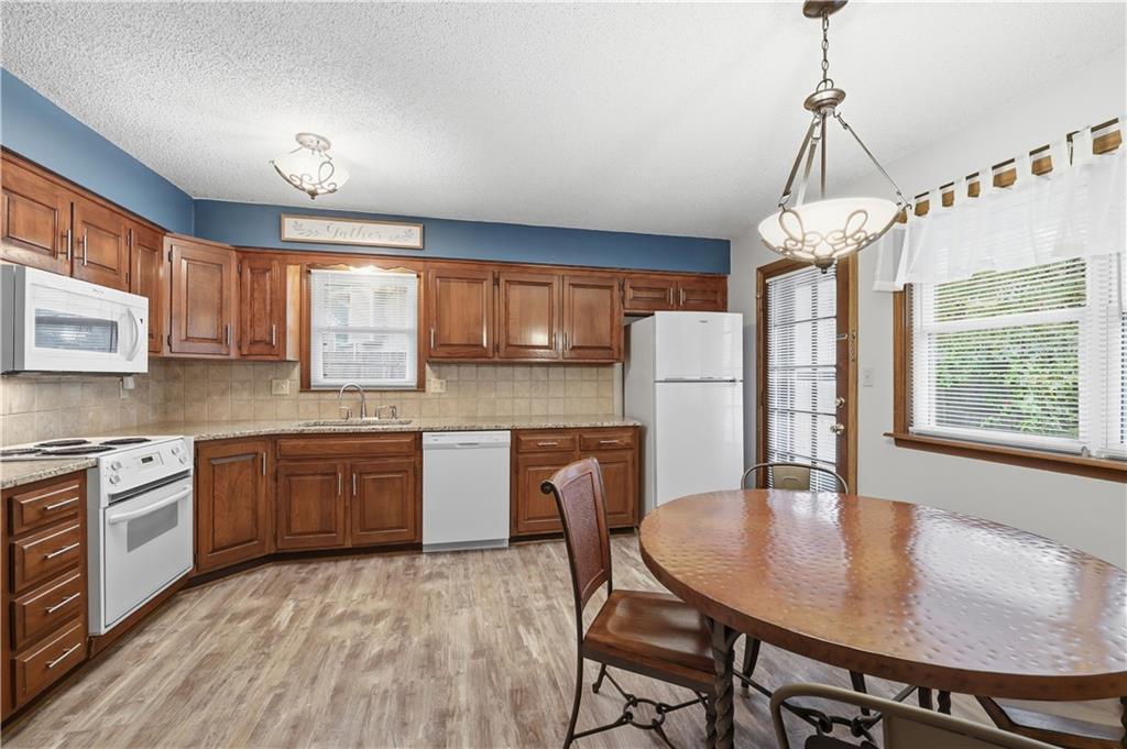 Welcome to this beautifully maintained, move-in ready full ranch in the established Castle Woods neighborhood of Independence. This 3-bedroom, 2.5-bath home offers comfortable main floor living in a quiet community with convenient access to highways, shopping, and dining. Step inside to find a spacious entry that leads to an impressive great room with vaulted ceilings, exposed beams, built-ins, and a dramatic fireplace that creates a warm and inviting gathering space. The eat-in kitchen features granite countertops, updated backsplash, and a formal dining area perfect for entertaining. The main level is one-step entry from garage, and includes a separate laundry room with extra storage. The primary suite offers dual closets with built-in organization and shelving to maximize storage, along with a private en-suite bath. Downstairs, the fully finished lower level provides a wide open recreation room with a fireplace, a non-conforming bedroom, and abundant storage space. Recent updates include new refrigerator, new luxury vinyl plank flooring, newer carpet, a newer furnace (Jan 2024), new hot water heater, and Maytag washer and dryer. Outdoor features include an oversized patio, privacy-fenced backyard, and a large storage shed with ramp access. The backyard is private and peaceful, and with the shed, ideal for pets, hobbies, or outdoor entertaining. Over the years, the sellers have made thoughtful improvements such as updated windows, driveway, kitchen and bath hardware, light fixtures, granite countertops, backsplash, and easy-care landscaping. This home has been meticulously cared for and reflects true pride of ownership throughout.