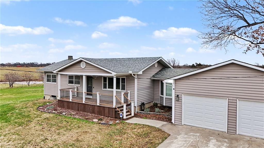 This updated 3-bedroom, 1-bath ranch offers the best of both worlds: peaceful country living and modern style. Sitting on 3 acres, this home has a newly remodeled kitchen and bathroom, hardwood floors, and a full basement…perfect for storage, hobbies, or future expansion. Cozy up to the pellet stove in the winter. As an added bonus, all appliances stay with the property. Step out onto the expansive back deck and soak in the beautiful view of the neighboring pond, the ideal backdrop for morning coffee and the sunrise. With plenty of space to garden, roam, or simply breathe, you’ll love the privacy and tranquility here. All this serenity is just 2 miles south of Baldwin City, keeping you close to town conveniences while giving you that open-country feel. Fresh, peaceful, and move-in ready; this is the kind of place where you exhale and stay awhile.