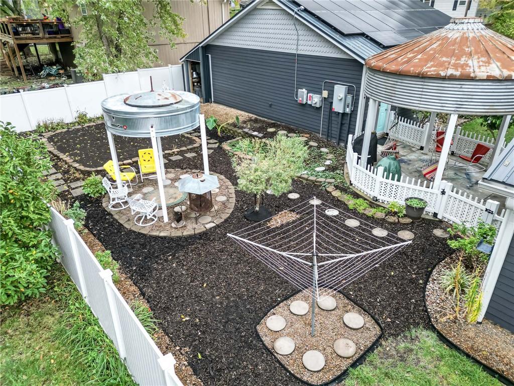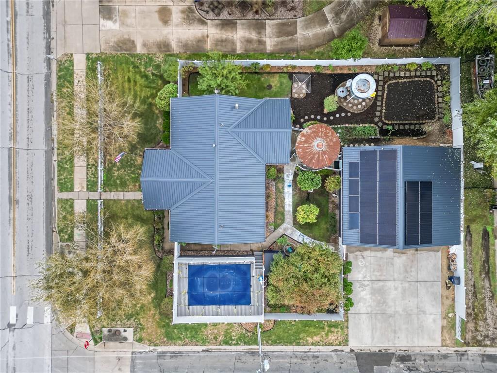 COMPLETELY UPDATED AND MOVE-IN READY, THIS STUNNING 3-BEDROOM RANCH BLENDS MODERN COMFORT WITH SMART, ENERGY-EFFICIENT LIVING! Thoughtfully renovated from the ground up, the home features all-new plumbing, electrical (including a new main line), windows, flooring, kitchen, and baths—plus a new metal roof added last year. With 36 solar panels for low energy costs, this home is as practical as it is beautiful. The bright, open floor plan offers vaulted ceilings, a cozy fireplace in the living room, and a chef’s kitchen with a gas cooktop, built-in appliances, and custom countertops. The primary suite impresses with vaulted ceilings, double vanities, a spacious walk-in shower, and dual walk-in closets. A sunny enclosed porch opens to a private backyard with a gazebo, garden space, and an above-ground pool with a new liner—perfect for summer relaxation. The detached garage provides extra storage with an upstairs loft, all on a well-maintained corner lot with privacy fencing and a convenient location close to everything.