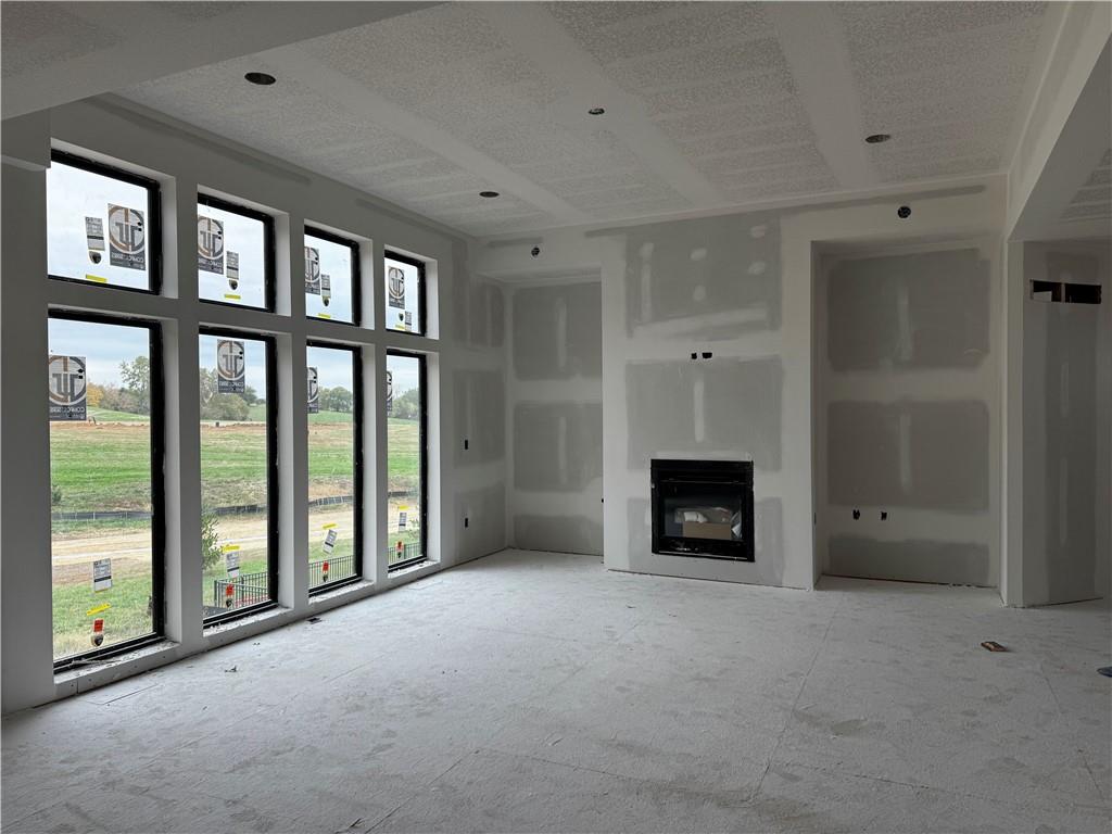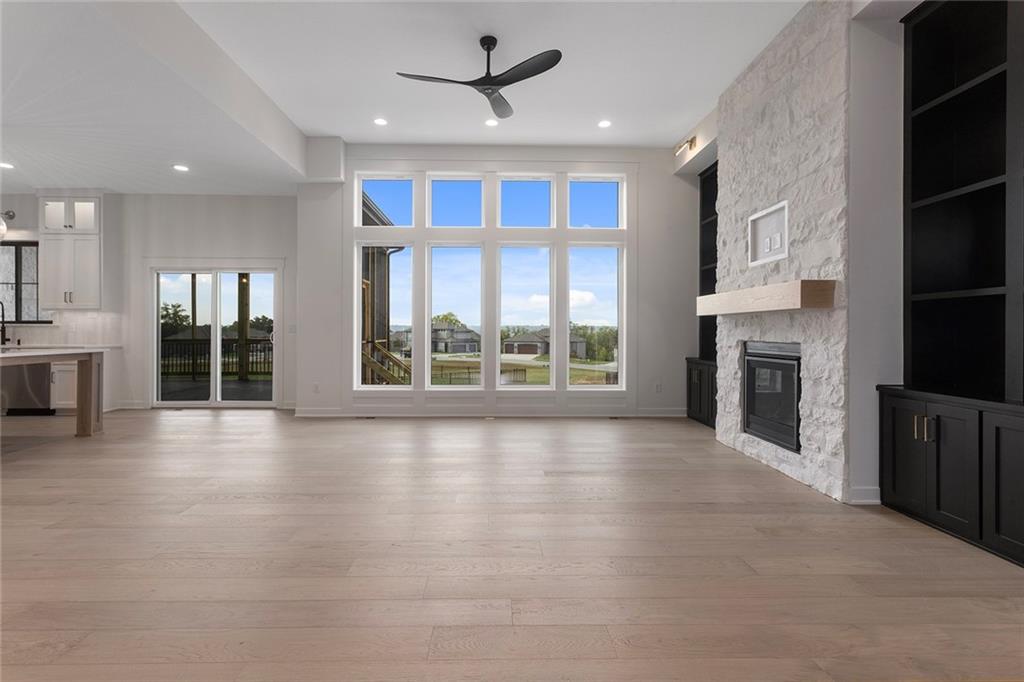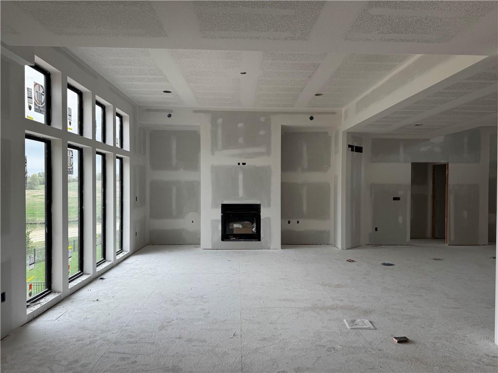 Discover the Audrey — a beautiful blend of modern design and everyday comfort! Step through double entry doors into a vaulted main level filled with natural light. Hardwood floors extend throughout, even into the spacious primary suite. The great room features a grand fireplace with built-ins and a wall of striking black windows that flow seamlessly into the kitchen, showcasing a large quartz table island perfect for meals, homework, or weekend baking. Step out onto a spacious composite deck with vaulted ceiling and enjoy greenspace on this walkout lot or cozy up in the owner’s suite offering a spa-like bath and custom closet built-ins. A flexible dining room (ideal for office or play space), laundry, and half bath complete the main level. Upstairs, the roomy loft provides a comfortable hangout space for games, movie nights, or guests. All three bedrooms have walk-in closets and ensuite bath access. Located in the Liberty School District, with lower property taxes and the serenity of living just outside city limits. Estimated completion end January 2026.