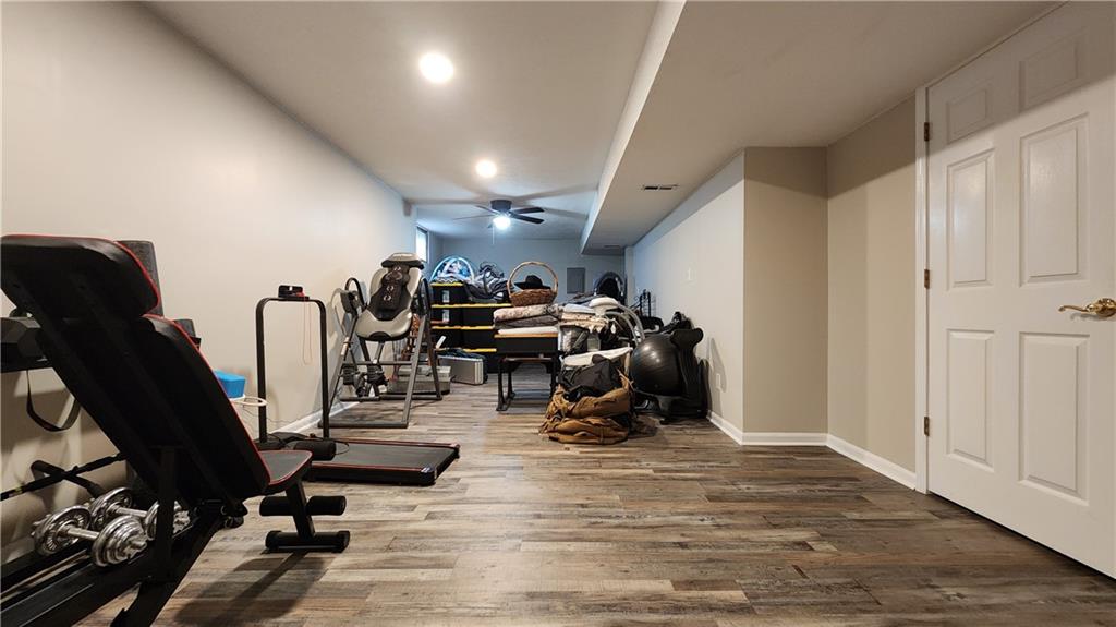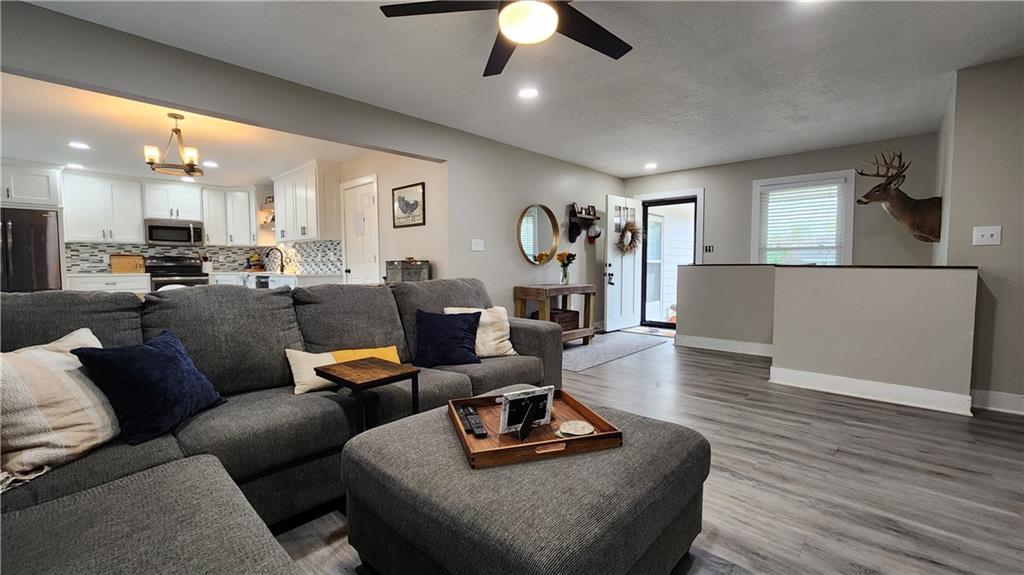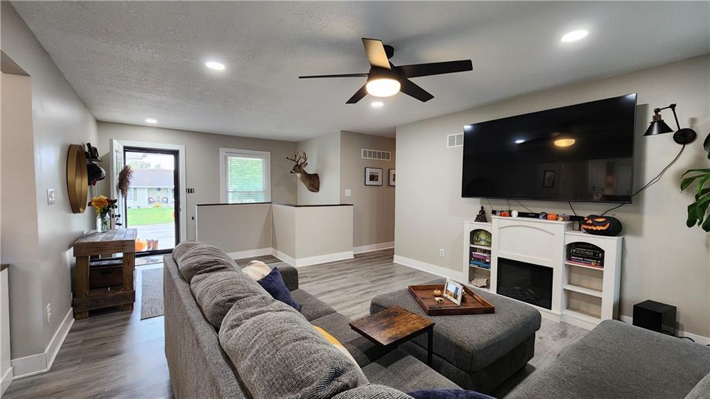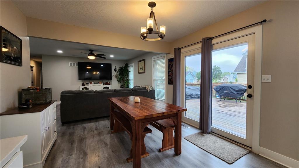 Welcome Home! This charming 3-bedroom, potential 5-bedroom, 3-bath ranch home is nestled in a highly sought-after west side Excelsior Springs neighborhood. Situated on a spacious, fenced corner lot, it offers the perfect blend of privacy and convenience. Step inside to discover an open floor plan featuring brand-new LVP flooring, neutral paint tones, and a beautifully updated kitchen with custom cabinets that provide ample storage for all your culinary needs. The modern finishes create a warm, inviting atmosphere—ideal for family gatherings or entertaining guests. The main level boasts three generously sized bedrooms, including a master suite that serves as a tranquil retreat with an ensuite bathroom for added comfort and privacy. The fully finished basement expands your living space, perfect for a home office, media room, or recreation area. Two nonconforming bedrooms offer flexible options to potentially create a five-bedroom home—endless possibilities to tailor the space to your needs. Outside, the expansive ground-level deck invites outdoor lounging, dining, or entertaining, while the updated rock landscaping enhances the home's curb appeal. Located conveniently close to shopping, restaurants, parks, and major highways, this home offers both comfort and accessibility. Don’t miss your chance—schedule a showing today and see firsthand the wonderful lifestyle that awaits you in this beautiful ranch home!