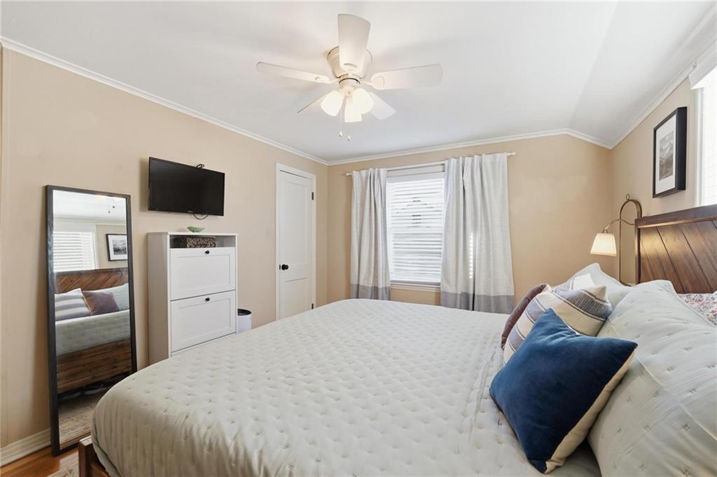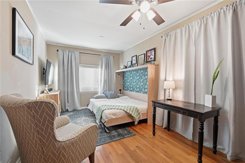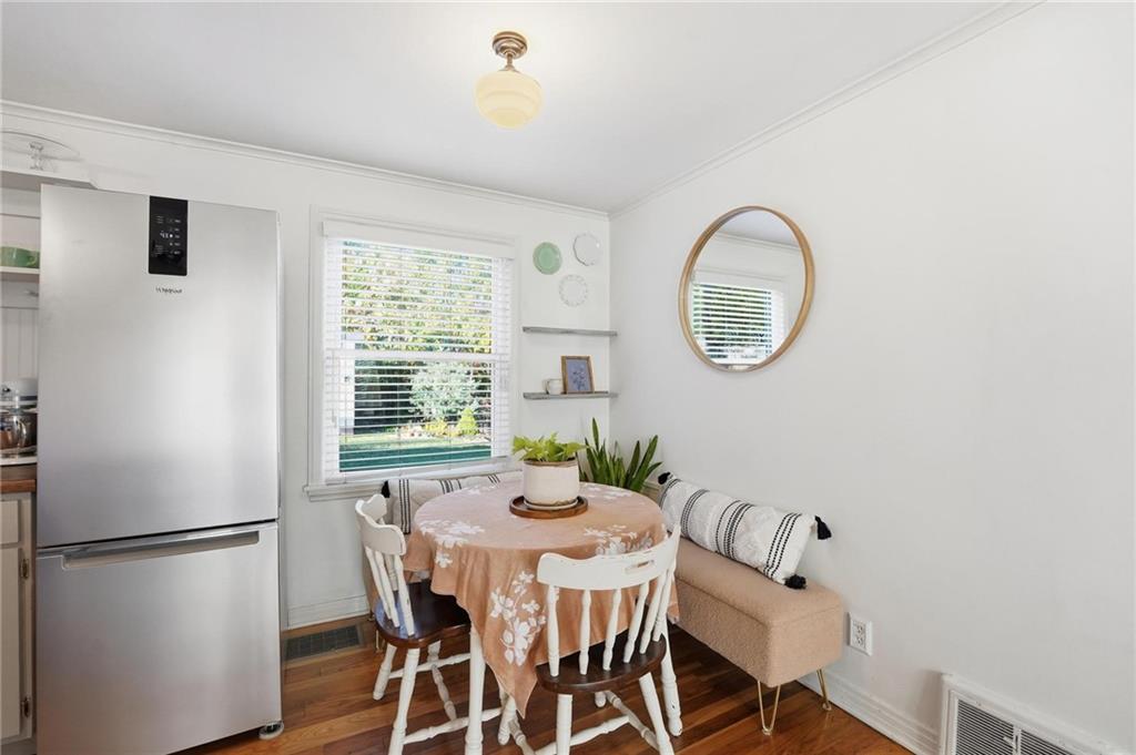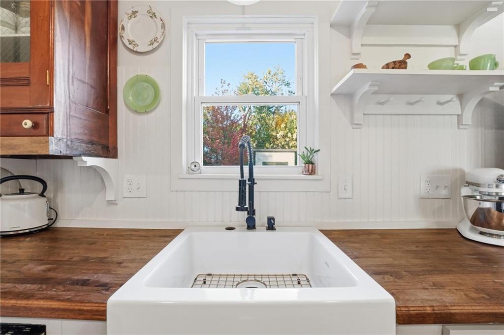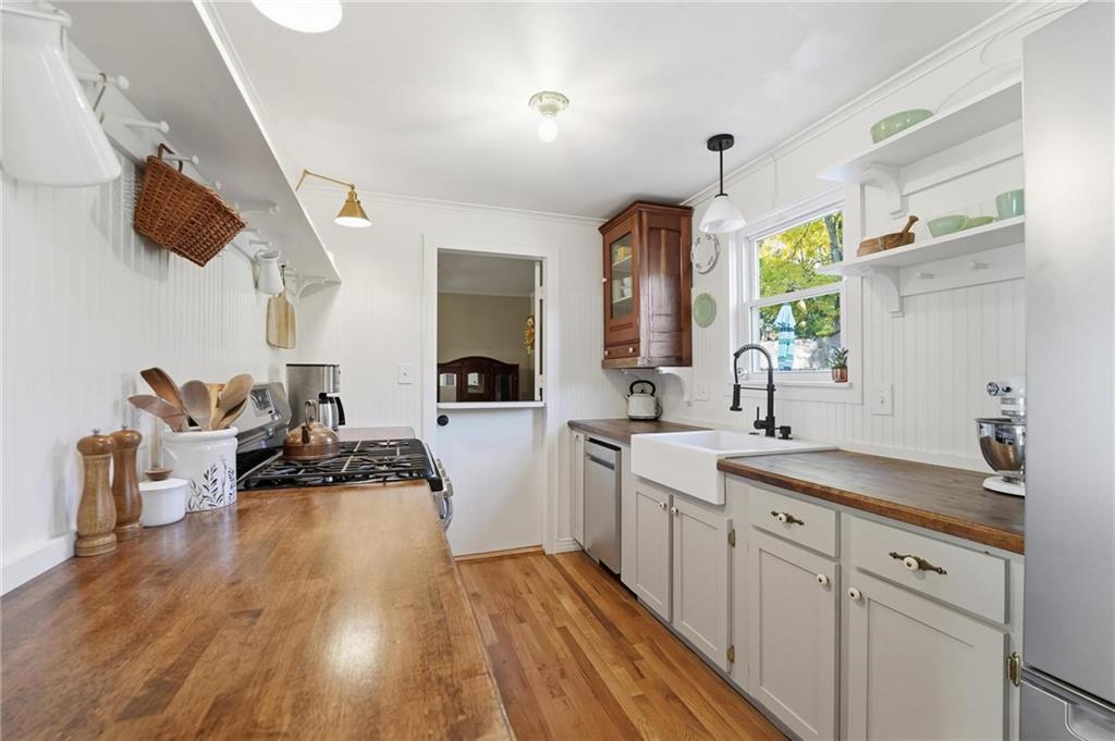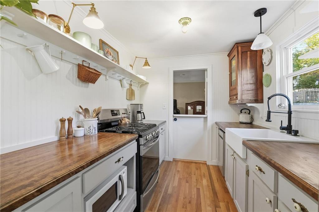 Charming and full of character, this 2-bedroom, 1-bath home combines vintage appeal with thoughtful updates. Step inside to find original hardwood floors, abundant natural light, and a welcoming layout that feels instantly comfortable. The kitchen exudes a modern cottage feel with custom cabinetry, open shelving, butcher block countertops, new appliances, and clever touches like custom toe-kick drawers. A whole-house water filtration system adds everyday convenience and peace of mind. Outside, enjoy a spacious fenced backyard perfect for gardening, entertaining, or relaxing by the fire pit. The large storage shed offers extra space for tools or hobbies, and the patio is ideal for quiet mornings or evenings with friends. Efficient to heat and cool, this home offers the perfect blend of charm, function, and comfort — all just minutes from city conveniences.