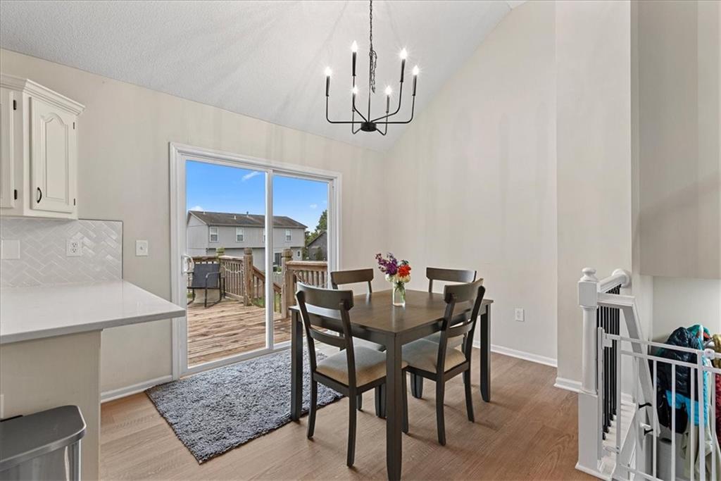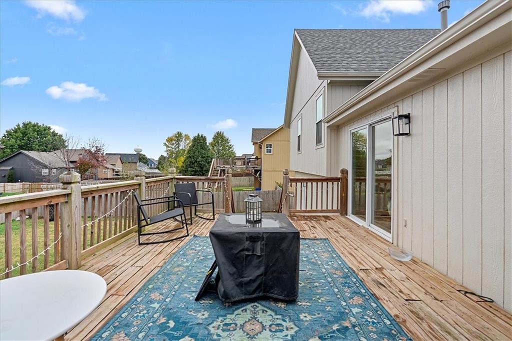 Welcome to 521 E Acorn St in Willow Springs— a beautifully maintained, move-in ready home in the heart of Gardner! This inviting property combines modern updates, energy-efficient features, and a functional open layout designed for today’s lifestyle. Step inside to find luxury vinyl plank flooring, updated lighting and ceiling fans, and a bright, open-concept main level. The kitchen impresses with stainless steel appliances, granite countertops, modern painted cabinetry, and plenty of workspace and storage. Enjoy morning coffee or evening gatherings on the deck off the kitchen, complete with steps leading to a large, level backyard—ideal for pets, play, or future landscaping. The spacious primary suite offers a relaxing retreat with a walk-in closet, double vanity, and a modern, tiled shower with sleek finishes. Two additional bedrooms provide great space for family, guests, or a home office. The unfinished lower level features daylight windows, and is insulated and stubbed for a future bathroom, offering the opportunity to add value and expand living space with a family room, 4th bedroom, or recreation area. Additional highlights include low-maintenance exterior siding, energy-efficient windows, updated mechanicals, and neutral paint throughout. Conveniently located near schools, parks, and shopping, this home delivers the perfect balance of style, comfort, and potential for future equity growth.