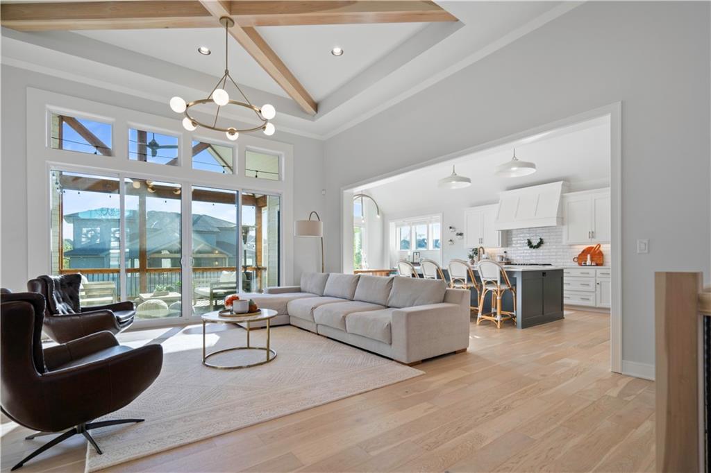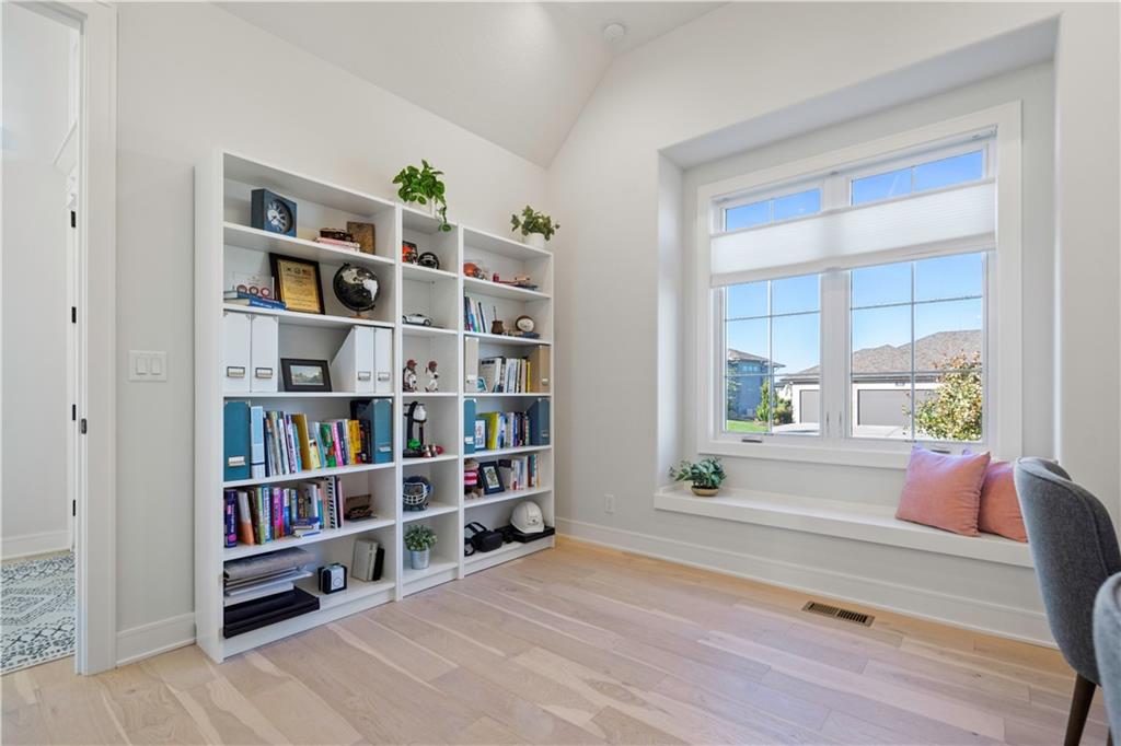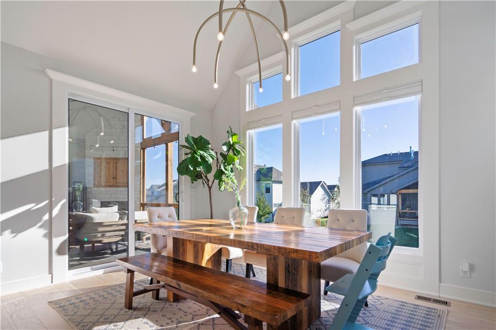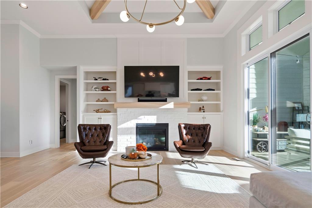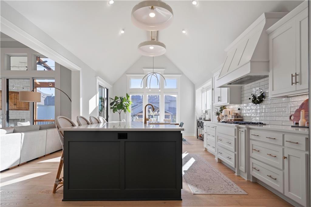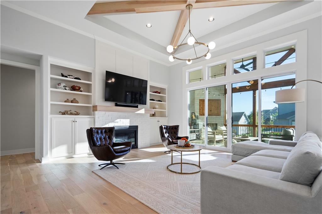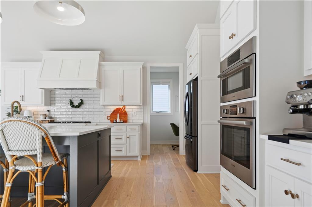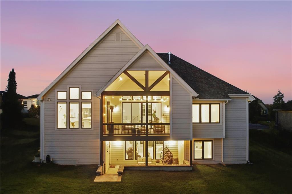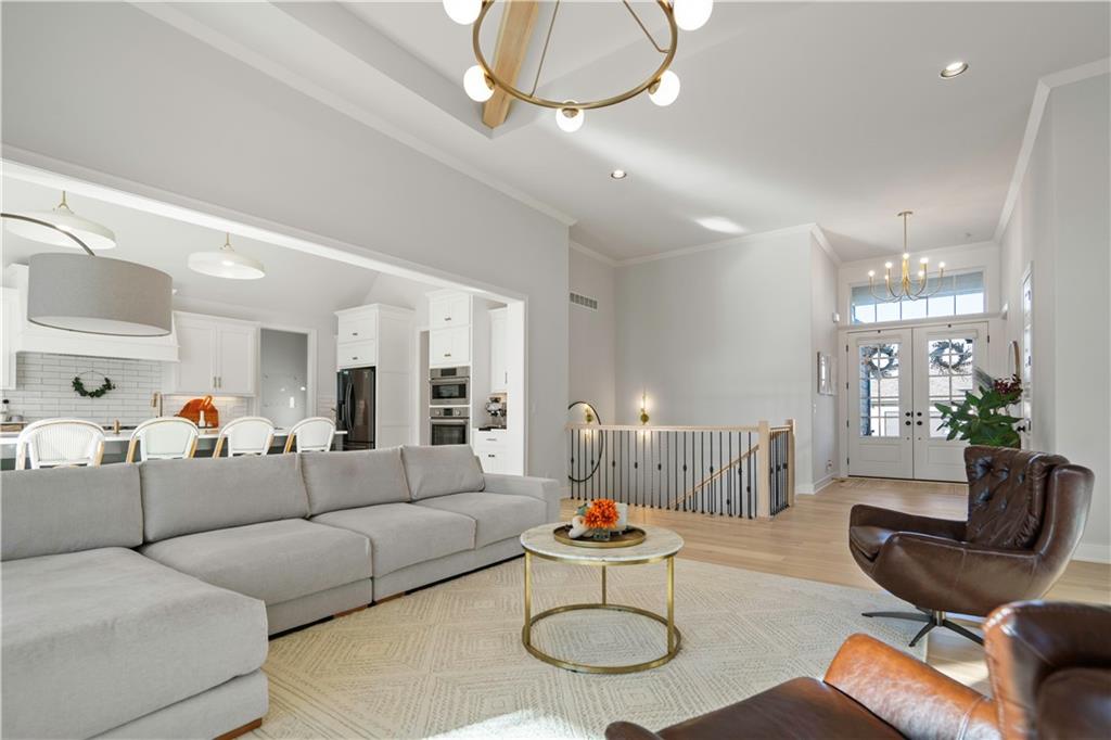 Discover refined living in this nearly 4,000 sq ft Reverse 1.5 Story located in the prestigious Estates of Century Farms. Less than three years old, this home blends elevated design with everyday comfort. Impressive vaulted ceilings and abundant natural light create a dramatic entry into the open kitchen and dining area, featuring quartz countertops, an oversized island, farmhouse sink, gas cooktop, walk-in pantry, and built-in pocket office. Designer touches throughout include designer lighting, remote-controlled blinds, EV charger, Smart garage opener, and more. Spacious screened-in deck with fireplace and TV mount, overlooking a mostly fenced .3 acre lot. The finished walkout lower level showcases LVT flooring, wet bar, pub area, TV accent wall, and access to a sunken stone patio—perfect for entertaining. The 5th bedroom with glass doors doubles as a movie room, fitness studio, or second office, while a kids’ play nook under the stairs adds charm and character. Exterior highlights include four-sided lap siding, real stone accents, wood details, and a 50-year roof. Enjoy resort-style neighborhood amenities just a short stroll away—pool with slide, clubhouse, fitness gym, pickleball and basketball courts, fire pit, playground, and community garden. Ideally located near Bluhawk, Heritage Park, and the Overland Park Arboretum, with easy access to the Johnson County Trail System. Served by award-winning Blue Valley Schools. Don’t miss this opportunity to call Century Farms your new home!