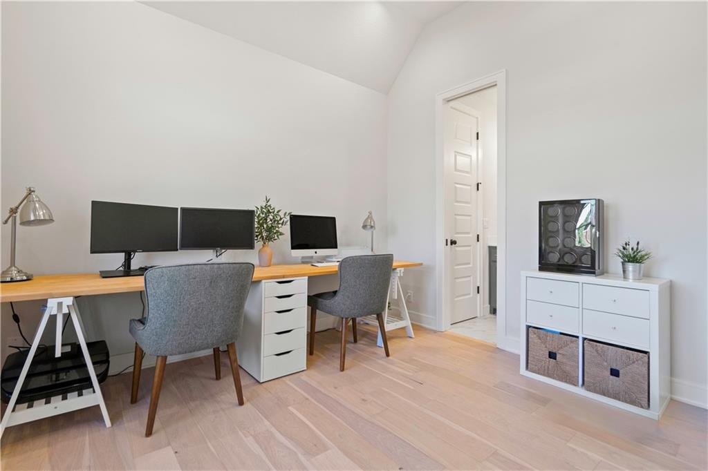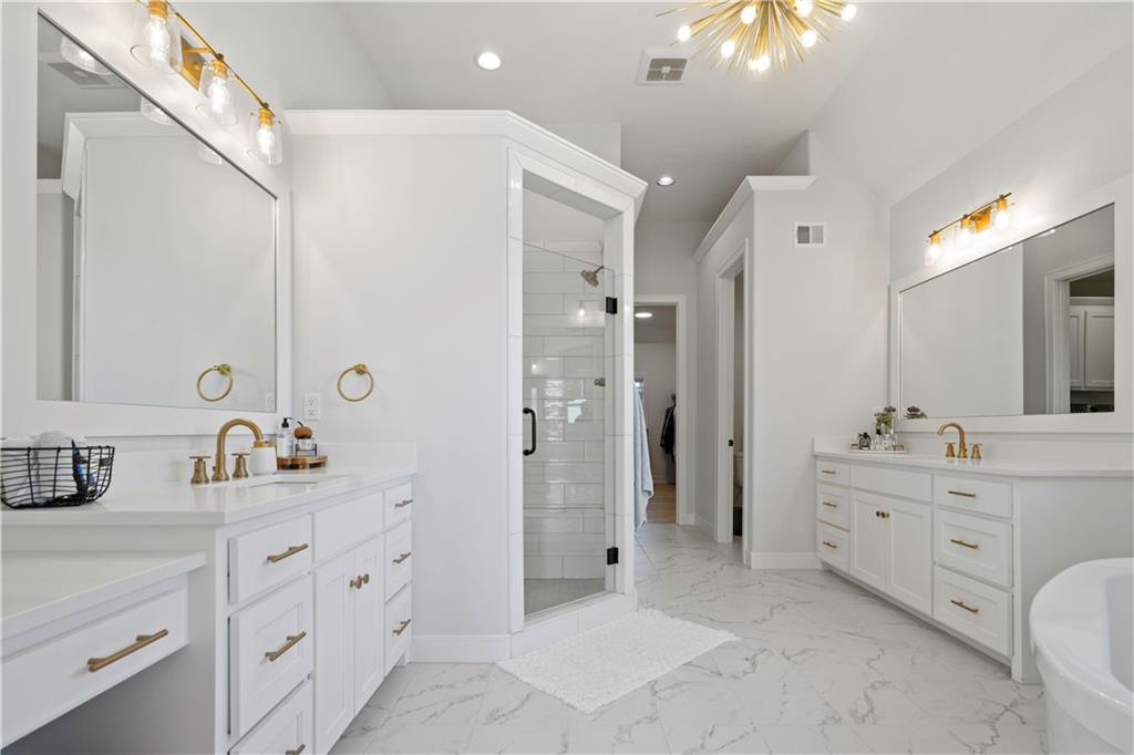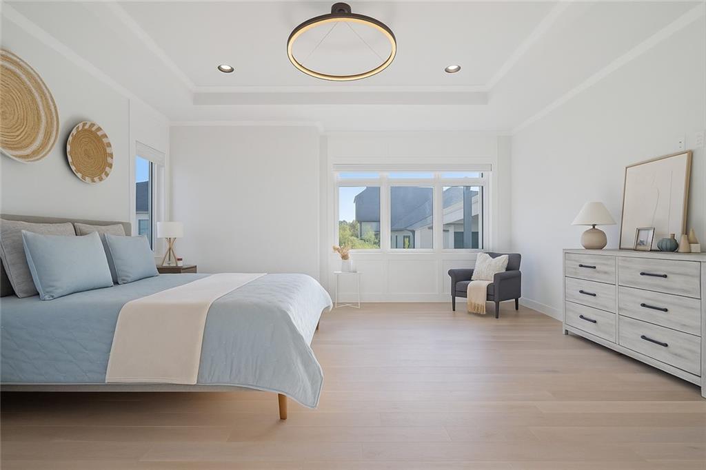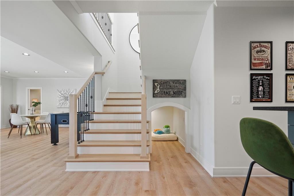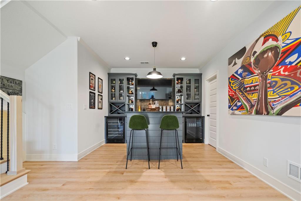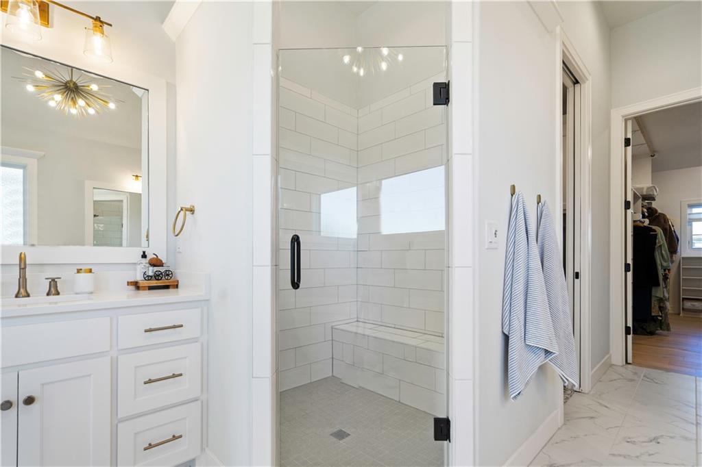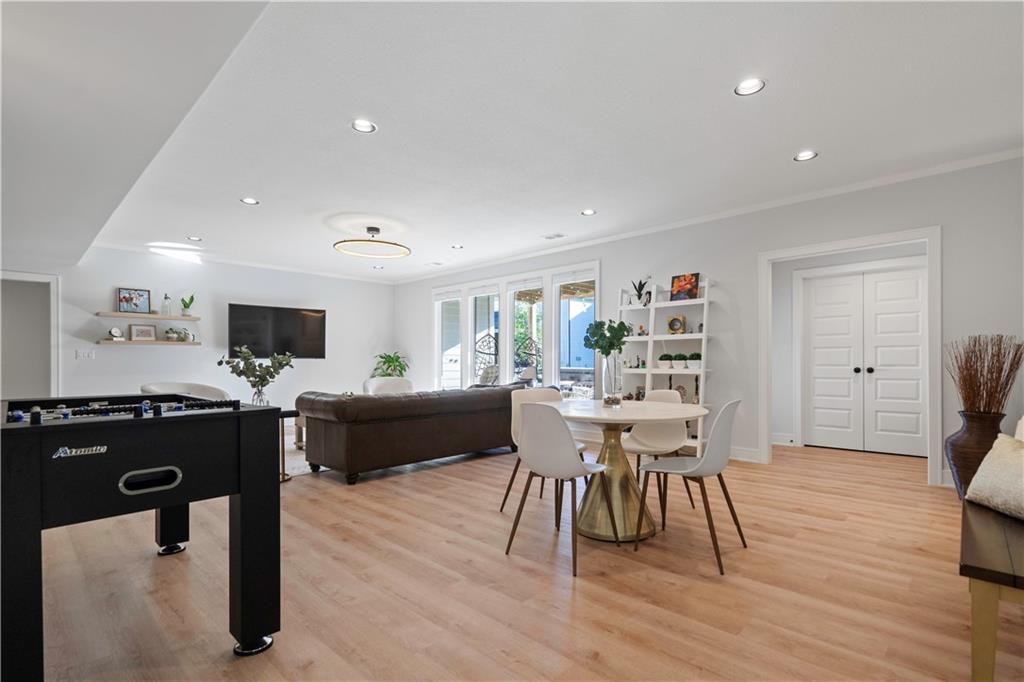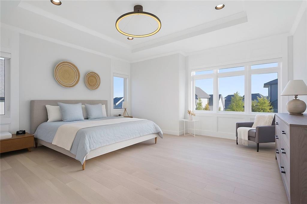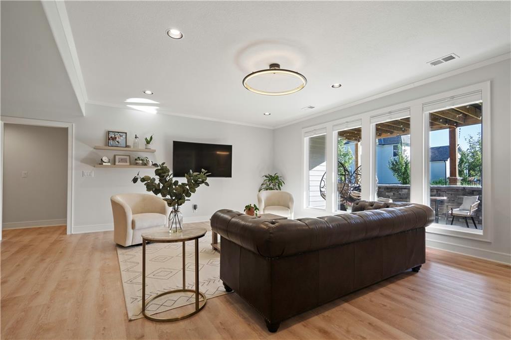 Discover refined living in this nearly 4,000 sq ft Reverse 1.5 Story located in the prestigious Estates of Century Farms. Less than three years old, this home blends elevated design with everyday comfort. Impressive vaulted ceilings and abundant natural light create a dramatic entry into the open kitchen and dining area, featuring quartz countertops, an oversized island, farmhouse sink, gas cooktop, walk-in pantry, and built-in pocket office. Designer touches throughout include designer lighting, remote-controlled blinds, EV charger, Smart garage opener, and more. Spacious screened-in deck with fireplace and TV mount, overlooking a mostly fenced .3 acre lot. The finished walkout lower level showcases LVT flooring, wet bar, pub area, TV accent wall, and access to a sunken stone patio—perfect for entertaining. The 5th bedroom with glass doors doubles as a movie room, fitness studio, or second office, while a kids’ play nook under the stairs adds charm and character. Exterior highlights include four-sided lap siding, real stone accents, wood details, and a 50-year roof. Enjoy resort-style neighborhood amenities just a short stroll away—pool with slide, clubhouse, fitness gym, pickleball and basketball courts, fire pit, playground, and community garden. Ideally located near Bluhawk, Heritage Park, and the Overland Park Arboretum, with easy access to the Johnson County Trail System. Served by award-winning Blue Valley Schools. Don’t miss this opportunity to call Century Farms your new home!