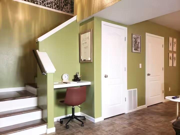 Welcome home to this beautifully remodeled 2-bedroom, 1.5-bath gem that perfectly blends charm and modern updates. As you enter, you’ll immediately appreciate the open-concept living, kitchen, and dining area — ideal for entertaining and everyday living. The kitchen has been refreshed with newly painted cabinets, updated lighting, and stylish hardware, creating a warm and inviting space. The main level also features a convenient half bath with a combined laundry area. Durable laminate flooring flows throughout the main floor, tying the space together with a clean, modern look. Upstairs, you’ll find two spacious bedrooms with matching laminate flooring and a beautifully updated full bathroom. Step outside through the back door to enjoy your private deck — perfect for grilling, relaxing, or hosting friends. The yard includes a cozy fire pit area, ready for your outdoor enjoyment year-round. This home offers comfort, style, and functionality — ready for you to move right in!