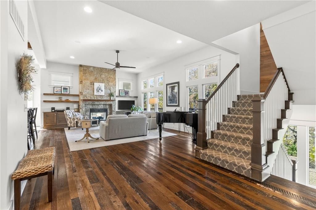 OMG!!! THIS NEVER HAPPENS!! A SECLUDED RETREAT ON 6 PLUS ACRES IN THE HEART OF PLATTE COUNTY OVERLOOKING THE NATIONAL - NO WAY!! A ONE OWNER SANCTUARY BUILT IN 2014 BY CUSTOM HOMEBUILDERS LOUIS & KYLE FREEMAN; THE HOME OFFERS RETREAT AURA WITH THE MODERN CONVENIENCES OF A NEWER HOME. DRIVING BACK TO THE HOME YOU TRANSPORT YOURSELF FROM THE HUSTLE BUSTLE OF CITY LIVING INTO THE SERENTY OF A HOME A WORLD AWAY IN JUST 60 SECONDS. THE CRAFTSMAN STYLE 2 STORY IS EQUIPPED WITH 3 DECKS ON THE BACK OVERLOOKING A HUGE YARD BUFFERED BY TREES. AN EXCAVATED GARAGE AND FRONT PORCH OFFERS A PLACE FOR A WORKSHOP, STORAGE AND SHELTER. INSIDE YOU WILL FIND SOARING CEILINGS IN THE GREAT ROOM WITH STONE MASONRY FIREPLACE, HARDWOOD FLOORS AND OPEN KITCHEN CONCEPT WITH EAT IN KITCHEN. RIGHT ADJACENT TO THE GREAT ROOM IS A PRIVATE ALL SEASON ROOM PERFECT FOR MORNING MEDITATION OR EVENING WIND DOWN. THERE IS A MAIN FLOOR OFFICE THAT COULD EASILY BE USED AS A MAIN FLOOR NON-CONFORMING BEDROOM OR CHILDREN'S PLAYROOM. HEAVILY TRIMMED THROUGHOUT, UPSTAIRS IS A HUGE MASTER BEDROOM WITH MASTER BATH SUITE EQUIPPED WITH TUB AND SHOWER AND NICE-SIZED WALK IN CLOSET. ALL BEDROOMS HAVE ACCESS TO BATHROOMS AS WELL AS BEDROOM LEVEL LAUNDRY. THE BASEMENT IS FINISHED WITH A WET BAR, BUTLER PANTRY, 3/4 BATH AND ANOTHER ROOM PERFECT FOR A HOBBY, OR EXERCISE ROOM, NON-CONFORMING BEDROOM OR A GREAT PLACE TO HOME SCHOOL. IF YOU ARE LOOKING FOR A ONE-OF-A KIND PROPERTY THIS COULD BE THE PLACE!