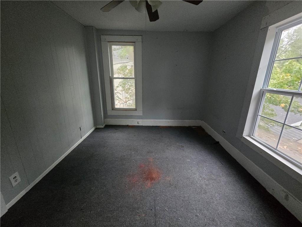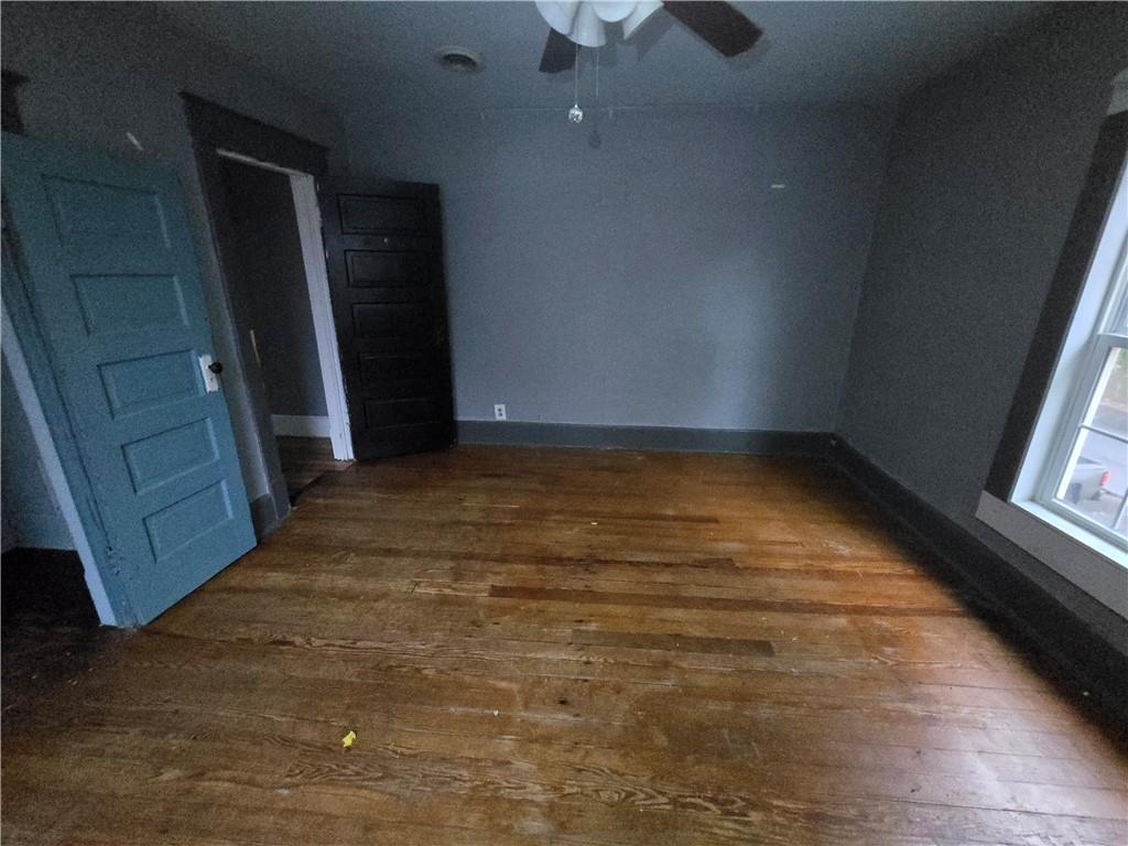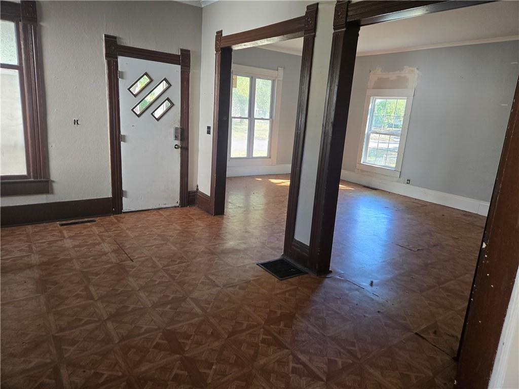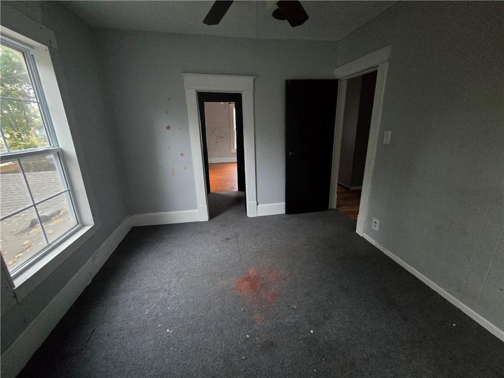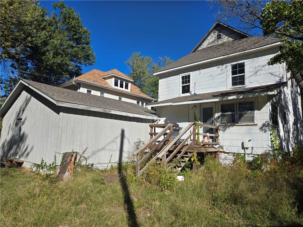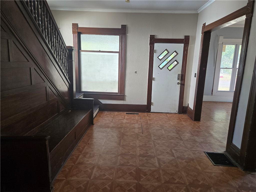 This 4 bedroom, 1½ bath home was used as a rental (cheaper than dorm rentals). Open foyer highlights beautiful stairway/woodwork and opens to formal dining and living room. There is original hardwood flooring underneath the linoleum and carpeting. The four bedrooms are all upstairs with a 4 square landing between the bedrooms and the full bath. The kitchen was remodeled a few years ago, black double sink and newer cabinets, a built-in gas downdraft cookstove and double electric oven, all appliances stay! Private driveway to a double car detached garage and a nice big backyard. This home is priced to sell, with all new windows so with some paint, flooring and a little TLC, what a great return on your investment with this being a college town, rentals are well sought after!