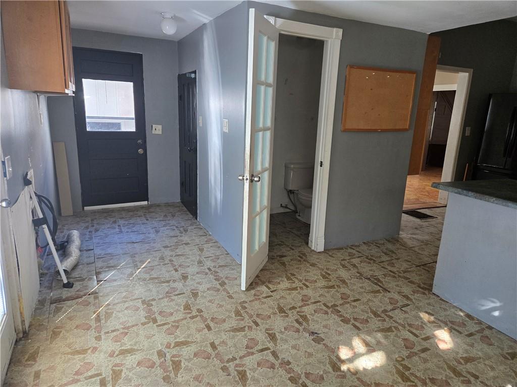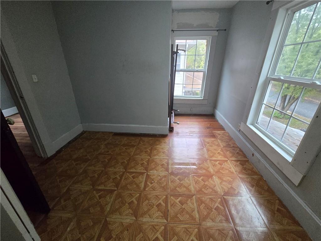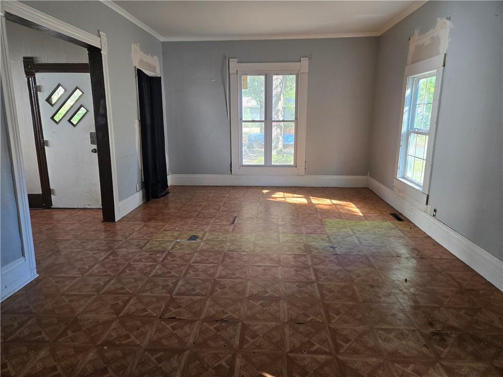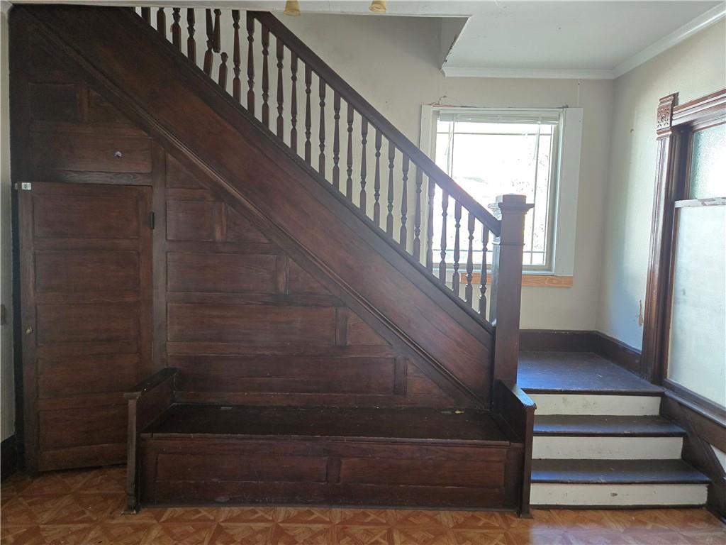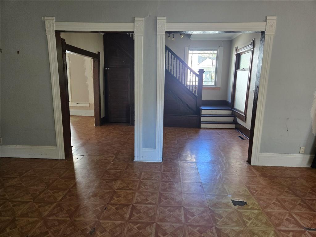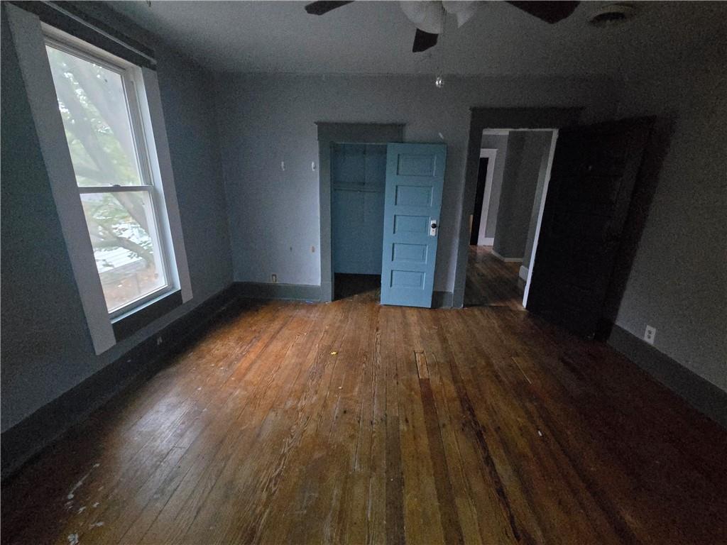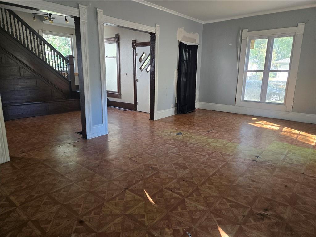 This 4 bedroom, 1½ bath home was used as a rental (cheaper than dorm rentals). Open foyer highlights beautiful stairway/woodwork and opens to formal dining and living room. There is original hardwood flooring underneath the linoleum and carpeting. The four bedrooms are all upstairs with a 4 square landing between the bedrooms and the full bath. The kitchen was remodeled a few years ago, black double sink and newer cabinets, a built-in gas downdraft cookstove and double electric oven, all appliances stay! Private driveway to a double car detached garage and a nice big backyard. This home is priced to sell, with all new windows so with some paint, flooring and a little TLC, what a great return on your investment with this being a college town, rentals are well sought after!