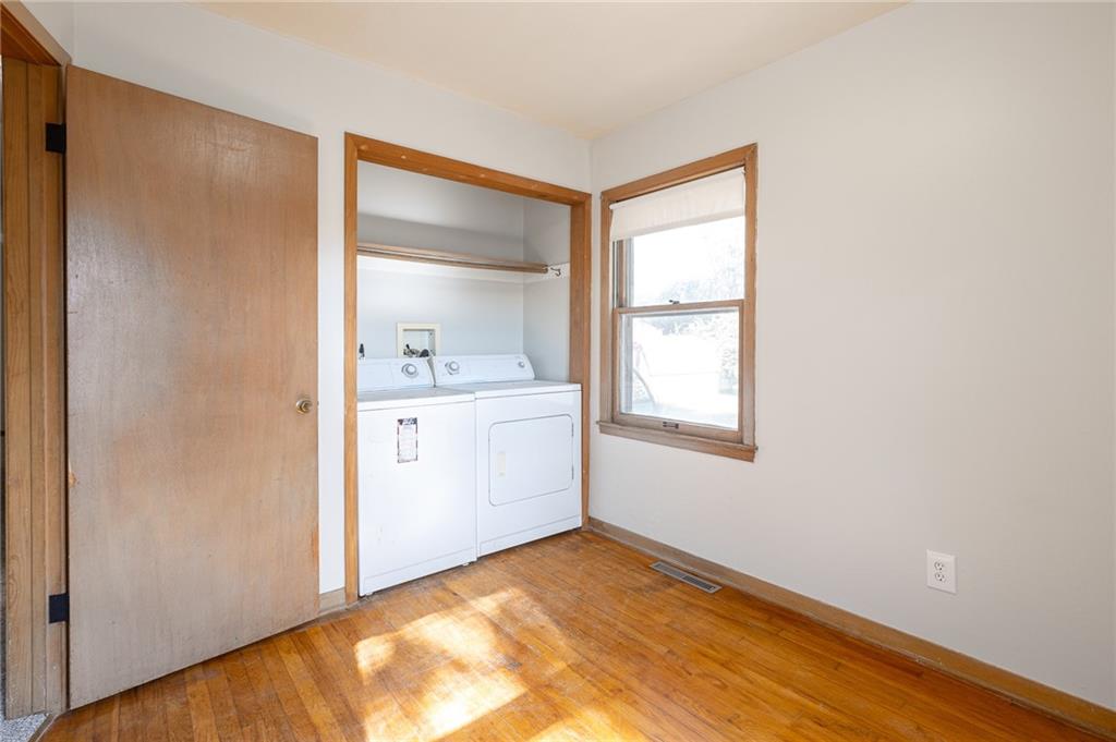 Welcome home to this vinyl siding ranch featuring 3 bedrooms with beautiful hardwood floors and new carpet (installed October 2025) in the hall and living room. The single-car garage is complemented by an attached carport with an electric gate, offering convenience and security. Enjoy main-level living with laundry conveniently located in a bedroom closet, plus an additional hookup available in the spacious 840 sq. ft. basement—ready to be finished for extra living space, a workshop, or storage. Step outside to your large covered deck, perfect for relaxing or entertaining, overlooking a fenced backyard with mature trees that provide shade and privacy. A deep extra driveway on the north side allows easy access to the back door, while the shed on a concrete pad offers the ideal space for a workshop or lawn equipment storage. With its low-maintenance exterior, flexible living spaces, and private outdoor setting, this home is move-in ready and full of potential—perfect for first-time buyers, downsizing, or anyone looking for comfortable one-level living!