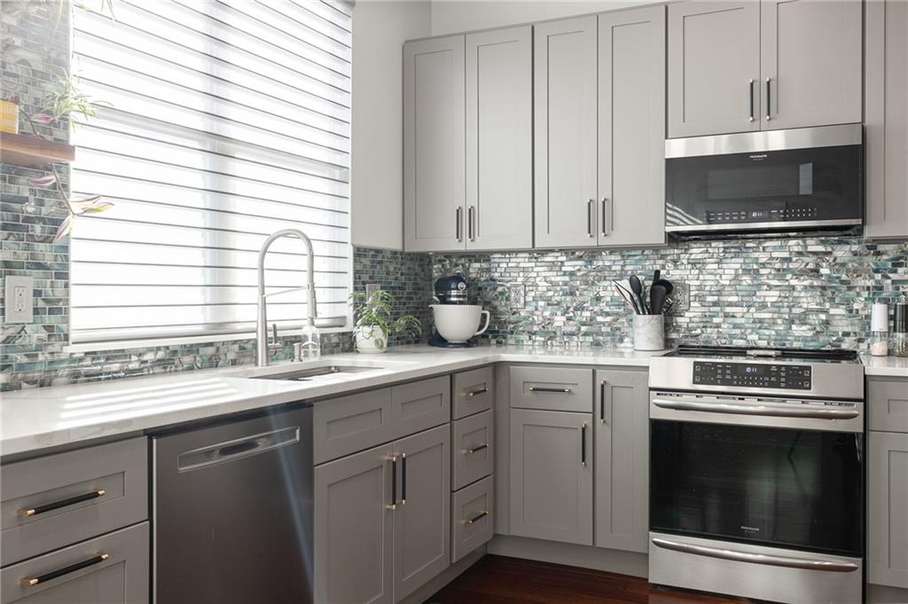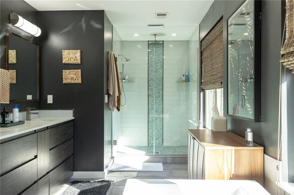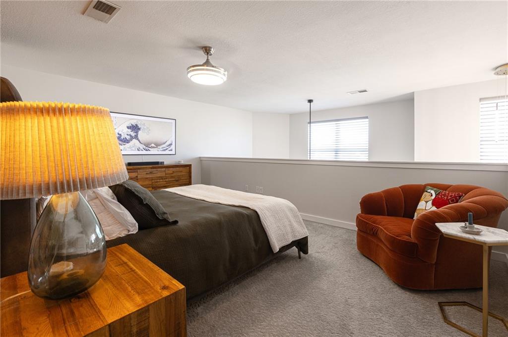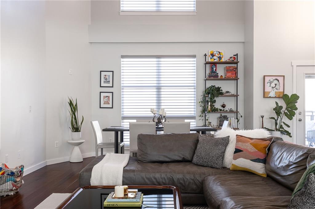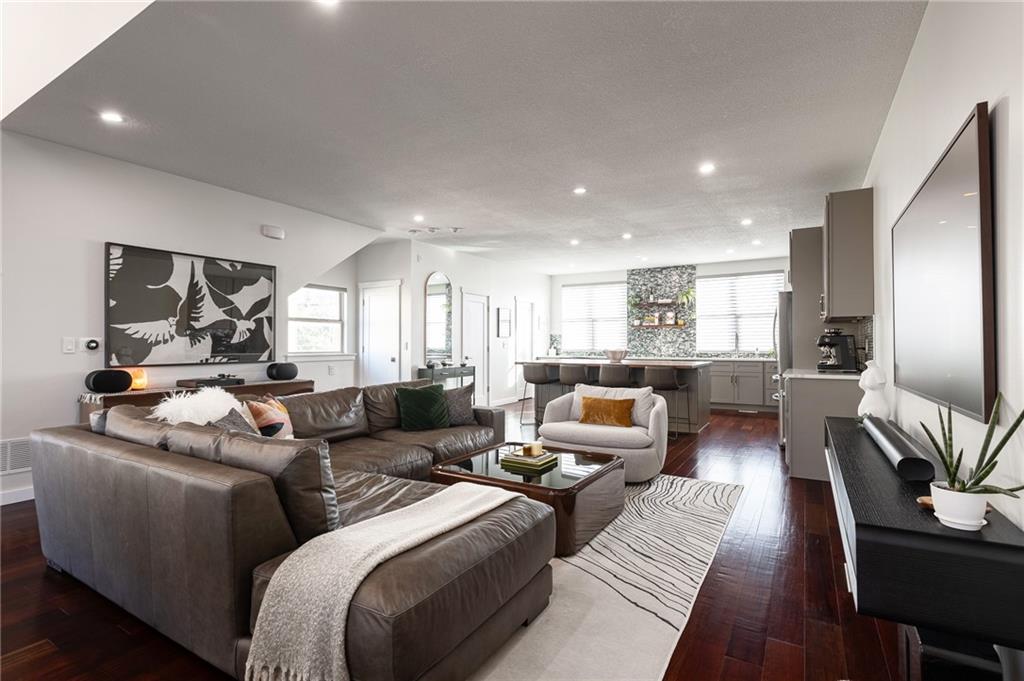 Beautifully updated 2 bedroom Contemporary Condo at the Madison. Located on the world famous Country Club Plaza, minutes to shops, restaurants, parks and so much more. Open floor plan with a stunning large teak island in the kitchen with pristine hard wood floors. Plenty of storage space in the kitchen and a dry bar, perfect for entertaining. Updated half bath and pantry off of the kitchen. Freshly painted throughout with a beautiful entry way chandelier. Vaulted ceilings with electric shades and ceiling fans in the kitchen and living room. Large loft bedroom with a walk in closet, washer and dryer is located in the hallway beside the primary bedroom. Beautiful bathroom with double vanities and lots of cabinet space. Bedroom on the lower level could also be a great office space with a full bathroom. This unit comes with a attached 2 car garage. Guest Parking available. This unit has been well maintained and is move in ready.