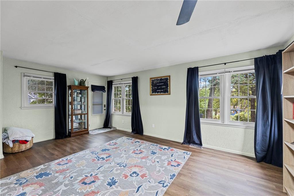 DON'T MISS OUT on this cozy, stylish, and move in ready home nestled in the Northland. As you arrive to the home, you will notice an extra long driveway providing tons of parking for family gatherings or football tailgates! Enter through the front door and you are greeted with beautifully refinished original hardwood floors, trendy wall colors, and a warm and inviting fireplace. In the kitchen you will find tasteful and modern updates such as: painted cabinets, new tile flooring, backsplash, countertops, fixtures, and a mobile island (which stays with the home!) providing additional counterspace for all of your cooking needs. The main bathroom features new tile floor, new sink, toilet, mirror, and fixtures. Continue to the oversized master bedroom, featuring a walk in closet, tons of natural light, and a door to the exterior. The backyard is massive, treed, and serene. Close to highways, shopping, trails and parks. A MUST SEE!