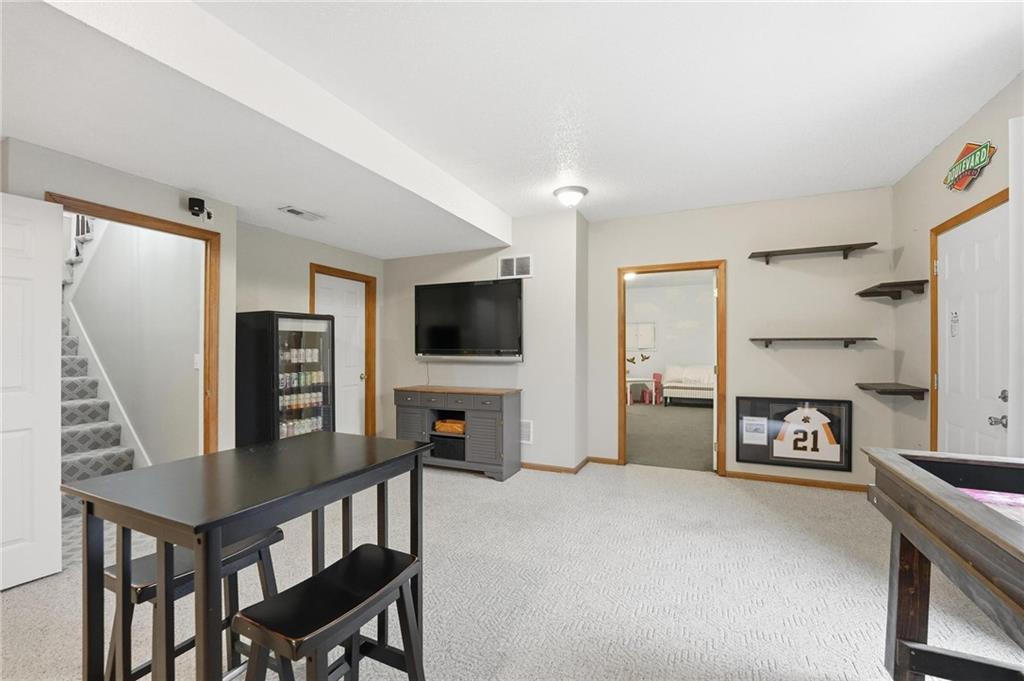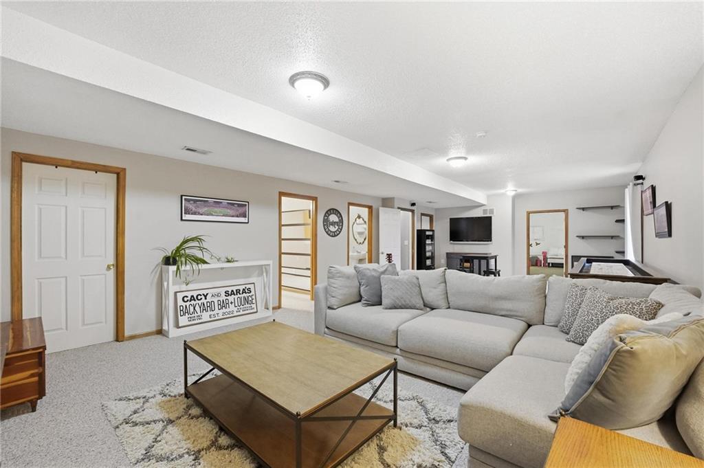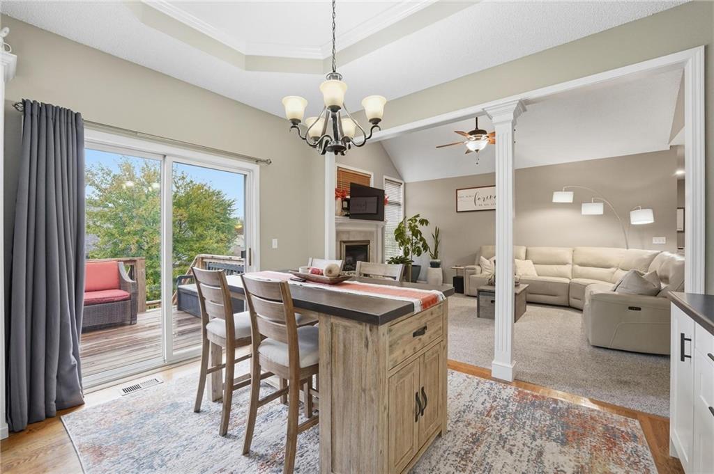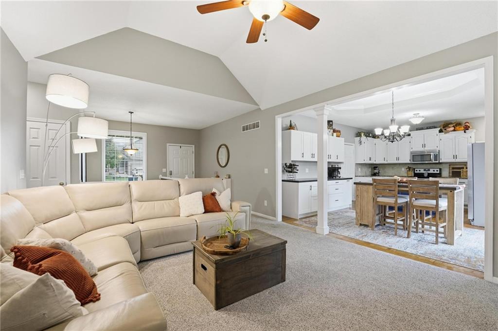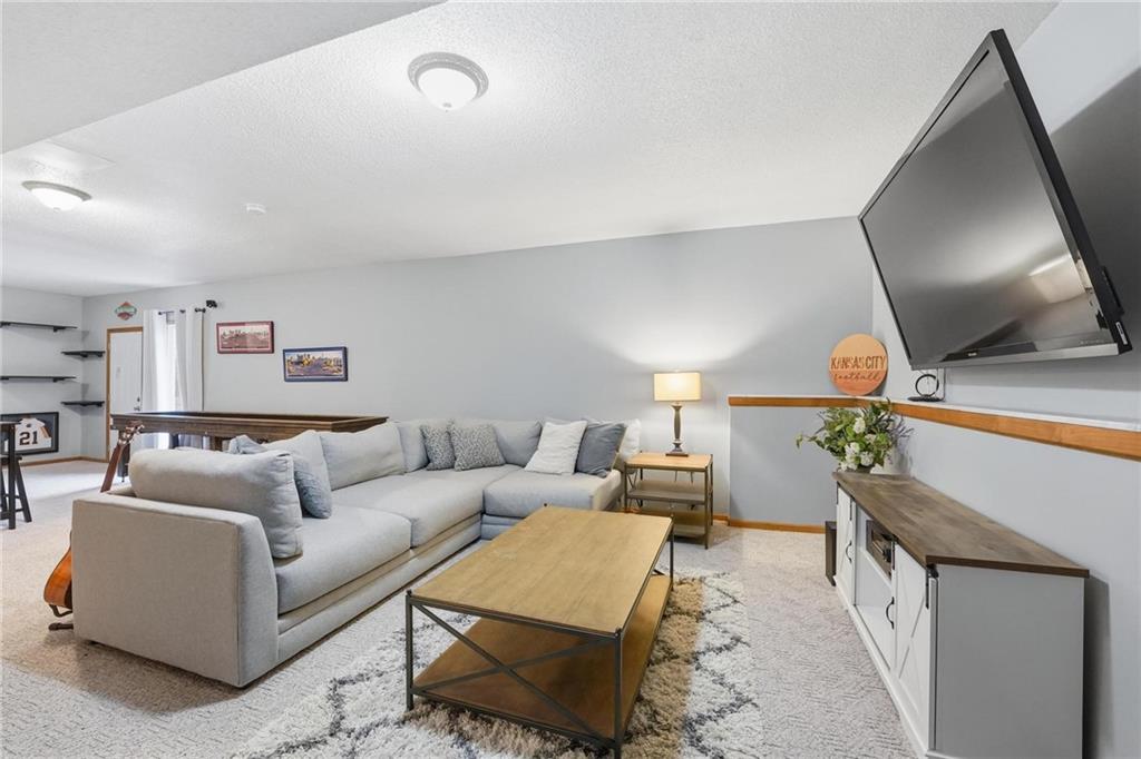 Stylish Ranch Living in Willow Woods Estates, Kansas City Welcome home to effortless elegance and single-level comfort in this updated ranch-style residence, located in the heart of Willow Woods Estates—one of North Kansas City's most desirable communities. Zoned in the award-winning Staley High School, this home blends timeless design with modern convenience, perfect for families, professionals, or anyone seeking refined one-level living. Interior Highlights: • Inviting foyer with soft gray walls, crisp white trim, and warm hardwoods • Open-concept layout with seamless flow between living, dining, and kitchen spaces • Staircase feature leading to a finished lower level—ideal for guests, hobbies, children or extra storage • Designer touches throughout, including designer carpet, pendant lighting, and trending décor • Natural light pours in through oversized windows, creating a bright and welcoming atmosphere Smart Ranch Layout: • All main living areas and bedrooms conveniently located on one level, Additionally, the lower level offers a family room, work out room, playroom, cedar closet and storage. Walk out to the patio that features string lighting for nighttime ambience.
