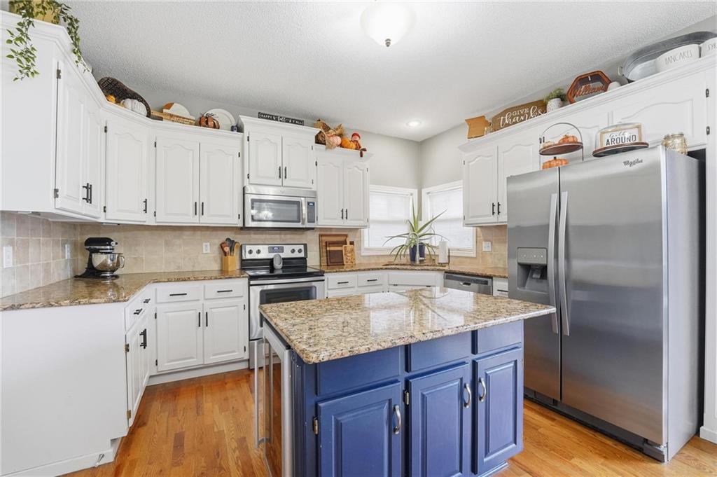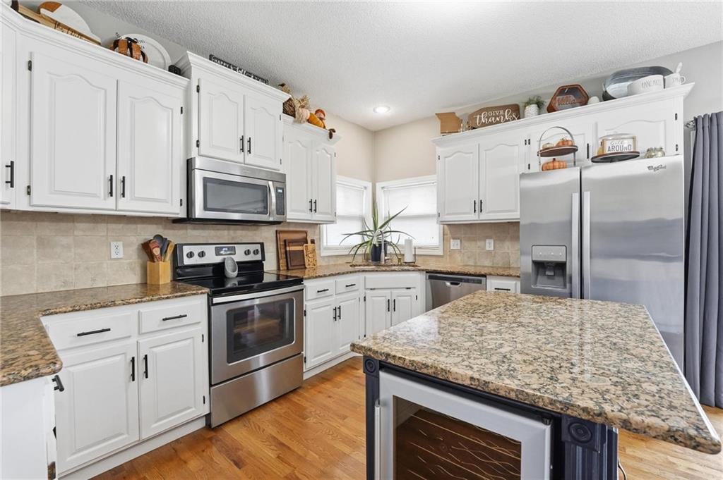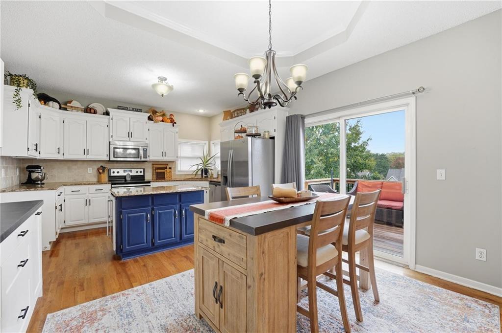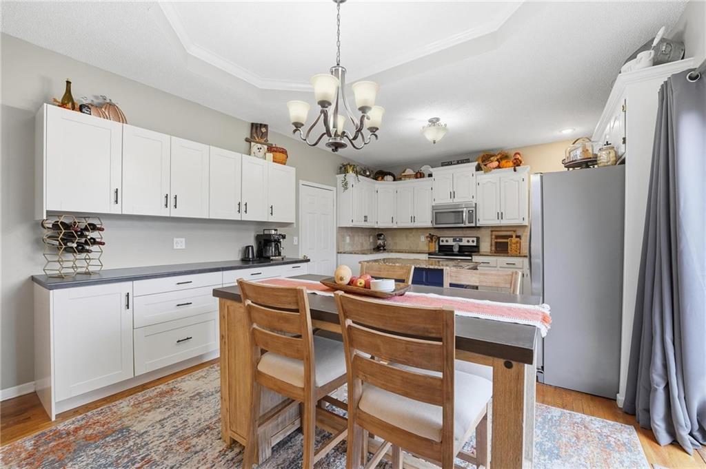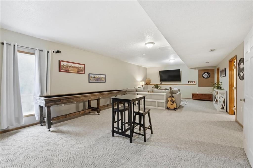 Stylish Ranch Living in Willow Woods Estates, Kansas City Welcome home to effortless elegance and single-level comfort in this updated ranch-style residence, located in the heart of Willow Woods Estates—one of North Kansas City's most desirable communities. Zoned in the award-winning Staley High School, this home blends timeless design with modern convenience, perfect for families, professionals, or anyone seeking refined one-level living. Interior Highlights: • Inviting foyer with soft gray walls, crisp white trim, and warm hardwoods • Open-concept layout with seamless flow between living, dining, and kitchen spaces • Staircase feature leading to a finished lower level—ideal for guests, hobbies, children or extra storage • Designer touches throughout, including designer carpet, pendant lighting, and trending décor • Natural light pours in through oversized windows, creating a bright and welcoming atmosphere Smart Ranch Layout: • All main living areas and bedrooms conveniently located on one level, Additionally, the lower level offers a family room, work out room, playroom, cedar closet and storage. Walk out to the patio that features string lighting for nighttime ambience.