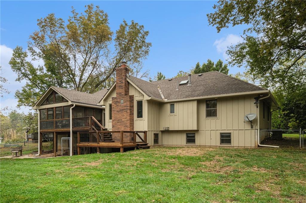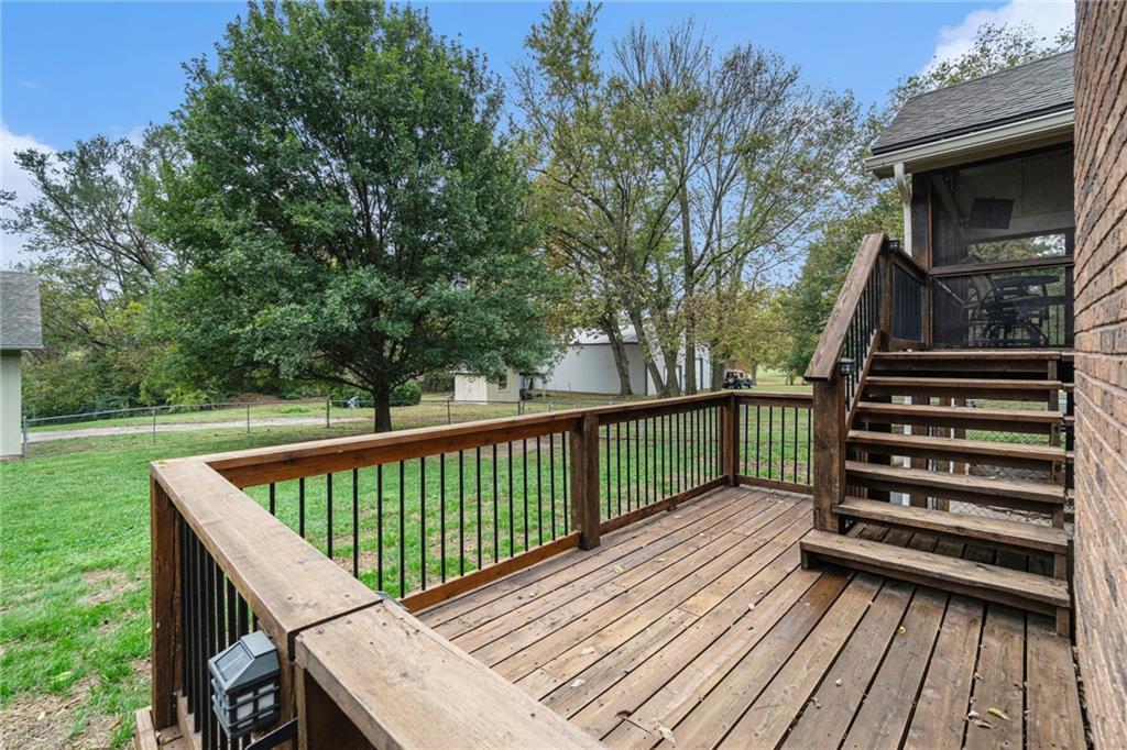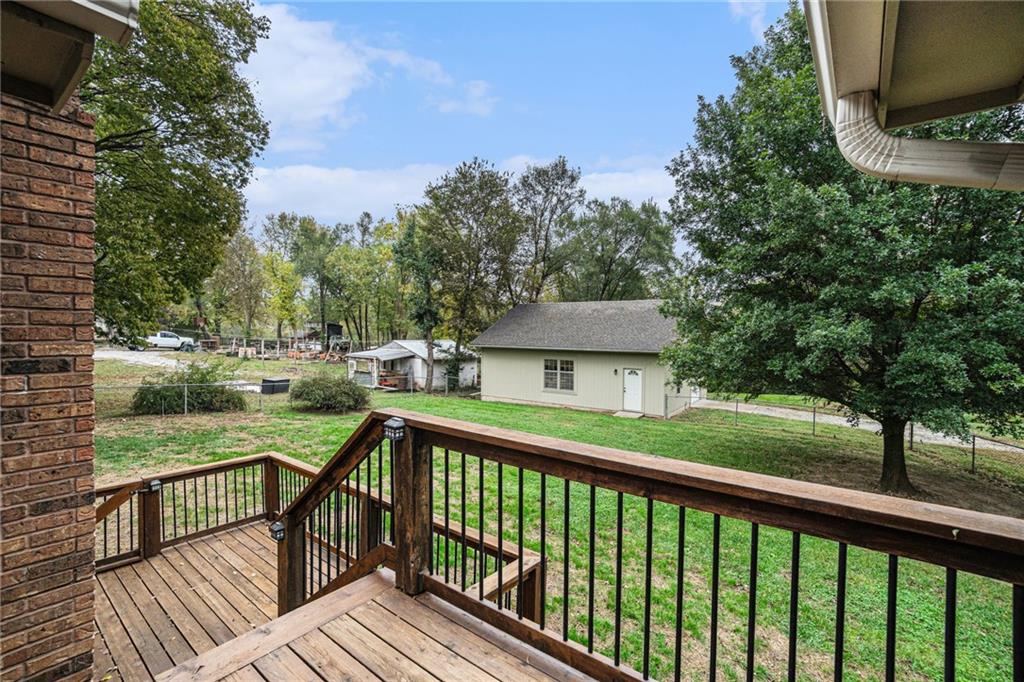 Country living within Liberty city limits! A beautifully updated and revered ranch floorplan, this property has all the space you’re looking for with 5+ picturesque acres, a hobbyist’s dream workshop, finished walkout basement with three separate storage areas, a screened-in deck and updates you’ll love. A family room with a brick fireplace on both the main floor and in the basement, formal dining room, and basement rec area provide plenty of opportunity for entertaining. Your new favorite place to relax and unwind–the screened-in deck provides protection from the elements so you can do just that. Aesthetically pleasing, cathedral-beam ceiling, stainless steel quad-door refrigerator and new tile laid throughout each bathroom. The primary ensuite bath features a second closet with built-ins to keep you organized. Shared hall bathroom with double sinks and an oversized walk-in shower in the final bath. The 30x35 outbuilding offers endless possibilities for woodworking, crafting, or car projects. Outfitted with excellent lighting, multiple ceiling fans, an air filtration system, and HVAC, it’s designed for year round comfort. The space features built-in shelving and storage, durable concrete floors, and plenty of room for tools, equipment, or machinery. Garage door provides easy access, while dedicated workbenches and organization systems make it ready for immediate use. Whether you’re a weekend DIYer or a serious craftsman, this setup has everything you need to create, build, and tinker to your heart’s content. Relish in the tranquility of your sprawling property while being only minutes from all the amenities and charm that historical Liberty has to offer!