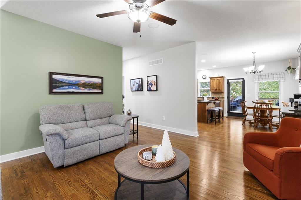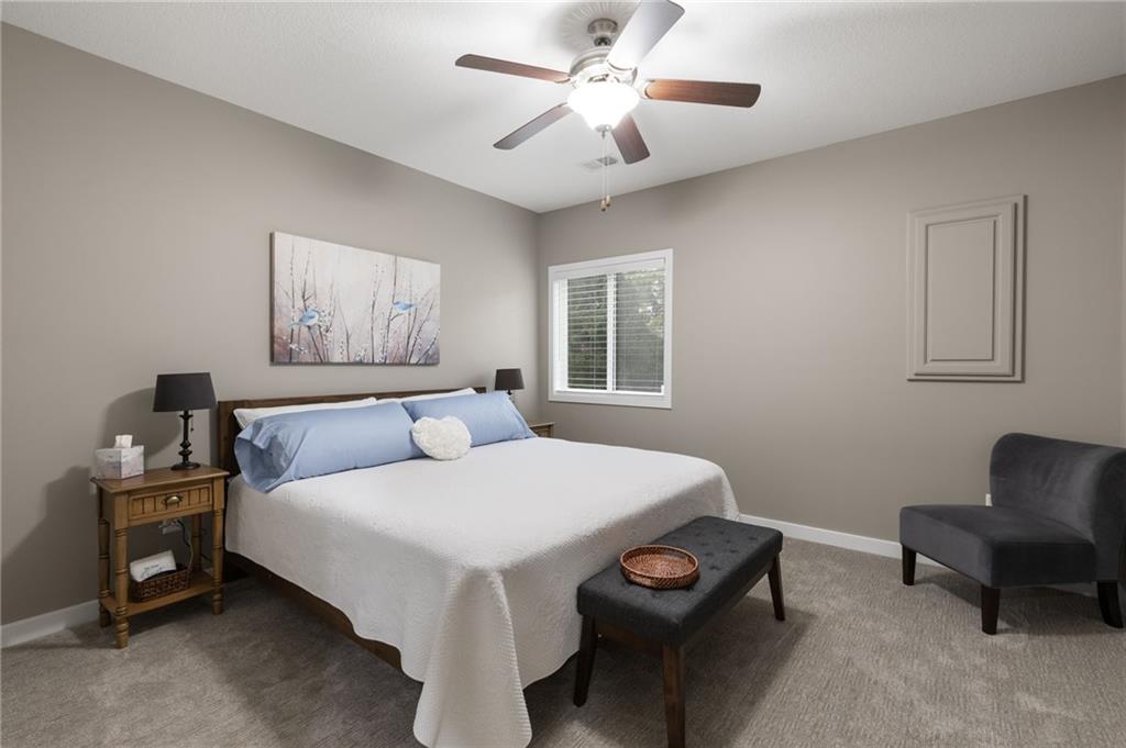 Welcome to peaceful, maintenance-provided living in the heart of South Overland Park. This well-cared-for reverse 1.5-story villa in Holly Ridge offers 3 bedrooms, 2.5 baths, and a relaxed lifestyle in one of the area’s most desirable communities. Inside, you’ll find an inviting open layout with beautiful hardwood floors throughout the main level, fresh paint, and thoughtful updates. The main floor features a cozy living area, a spacious kitchen, and a comfortable primary suite with carpet, tile flooring in the bathroom and laundry, and convenient main-floor access. This home is equipped with a top-of-the-line whole-house Sonos sound system, perfect for filling your space with music and creating the ideal atmosphere for entertaining or unwinding at home. Downstairs, the walk-out basement adds even more flexibility with a family room featuring newer LVP flooring—perfect for movie nights, guests, or hobbies—and opens to a peaceful patio surrounded by mature landscaping. Enjoy quiet mornings or evenings on the covered deck, and appreciate recent updates, including a new AC and furnace. The HOA takes care of all exterior maintenance, giving you more time to relax and enjoy the community pool and nearby parks. Located in the award-winning Blue Valley School District and just minutes from BluHawk shopping, dining, and entertainment, this home combines the best of convenience, comfort, and easy living in South Overland Park.